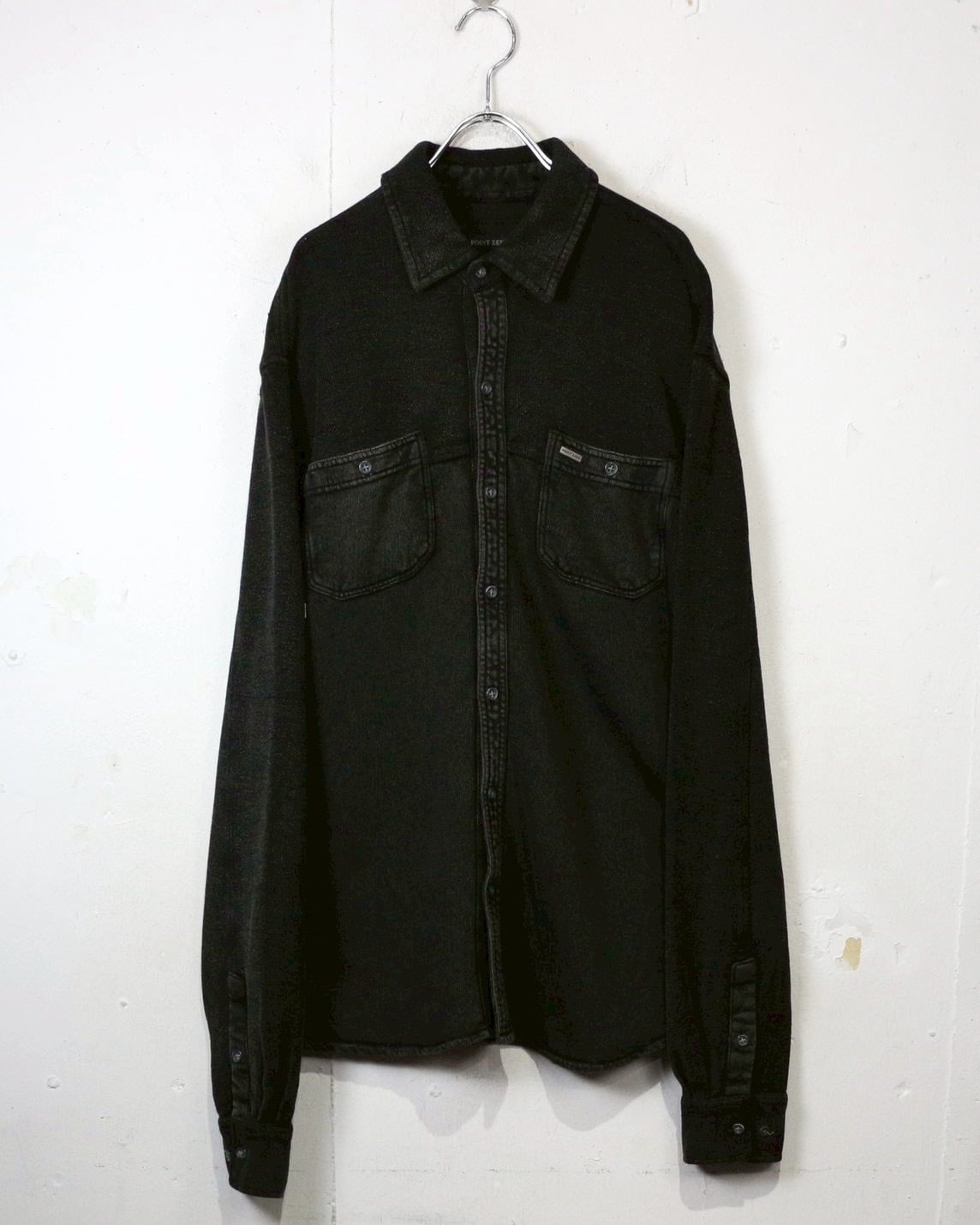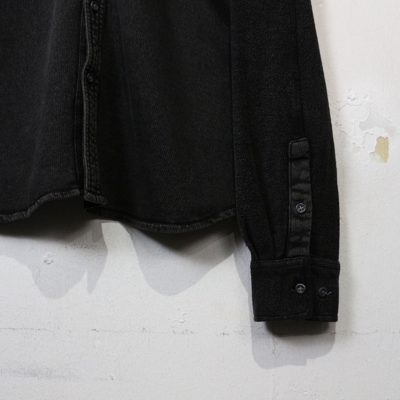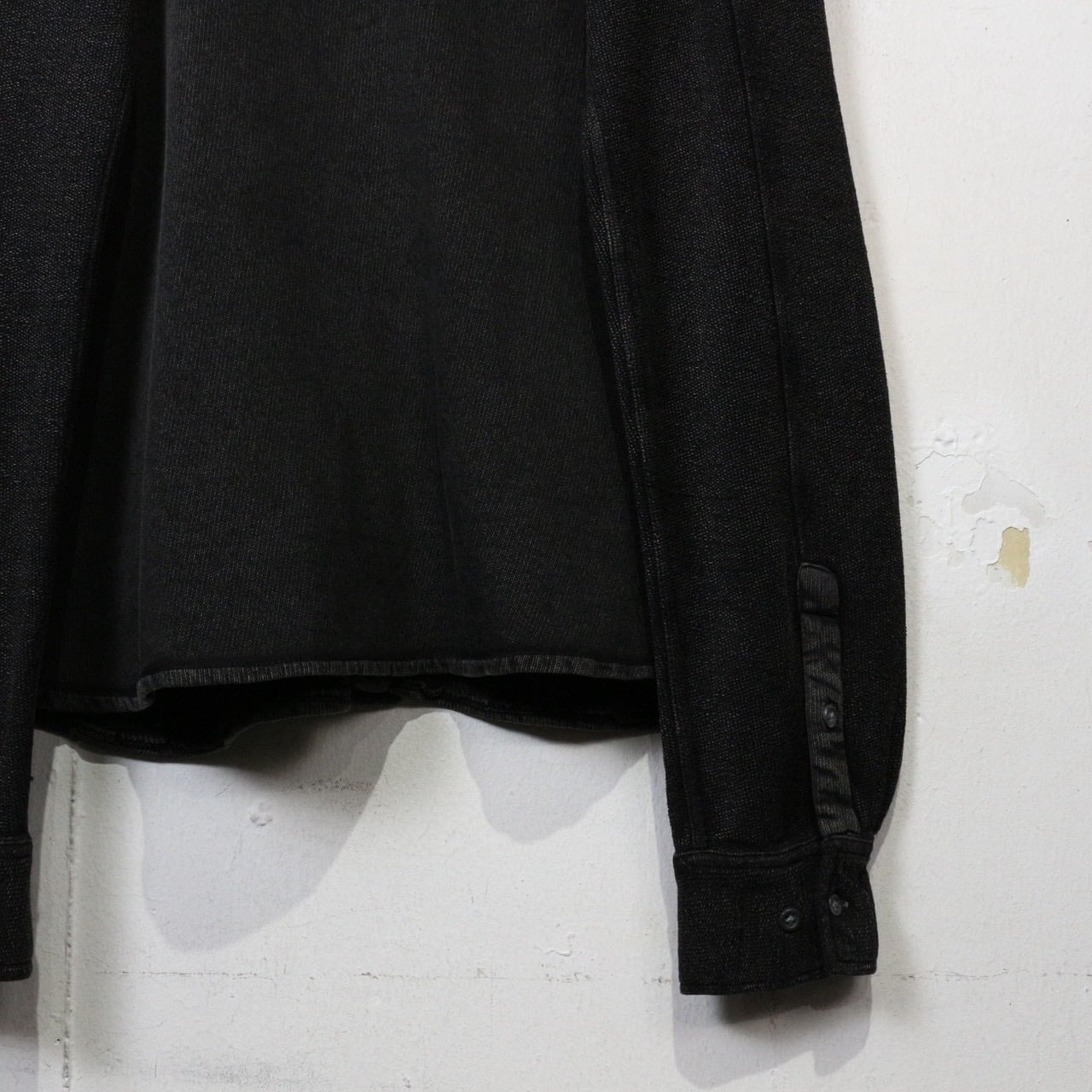 シャツをベースとしたカチッと感と、スウェットのラフさが掛け合わさったデザインバランスが素晴らしいですね。両胸のパッチポケットもデザインのアクセントに。