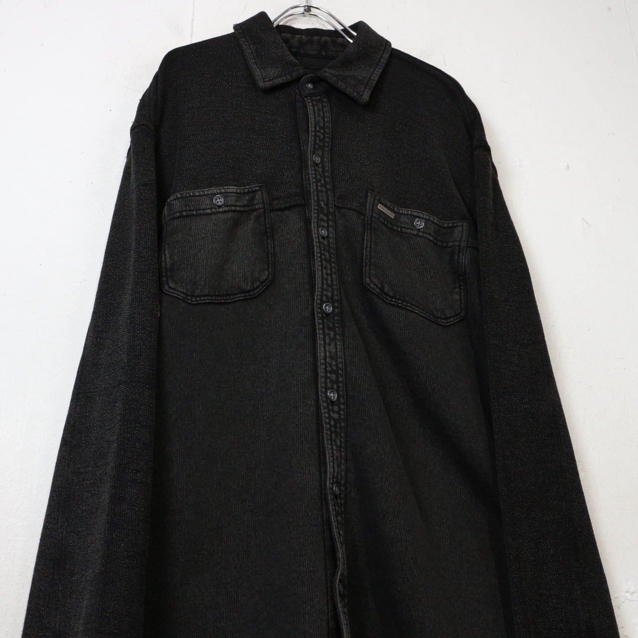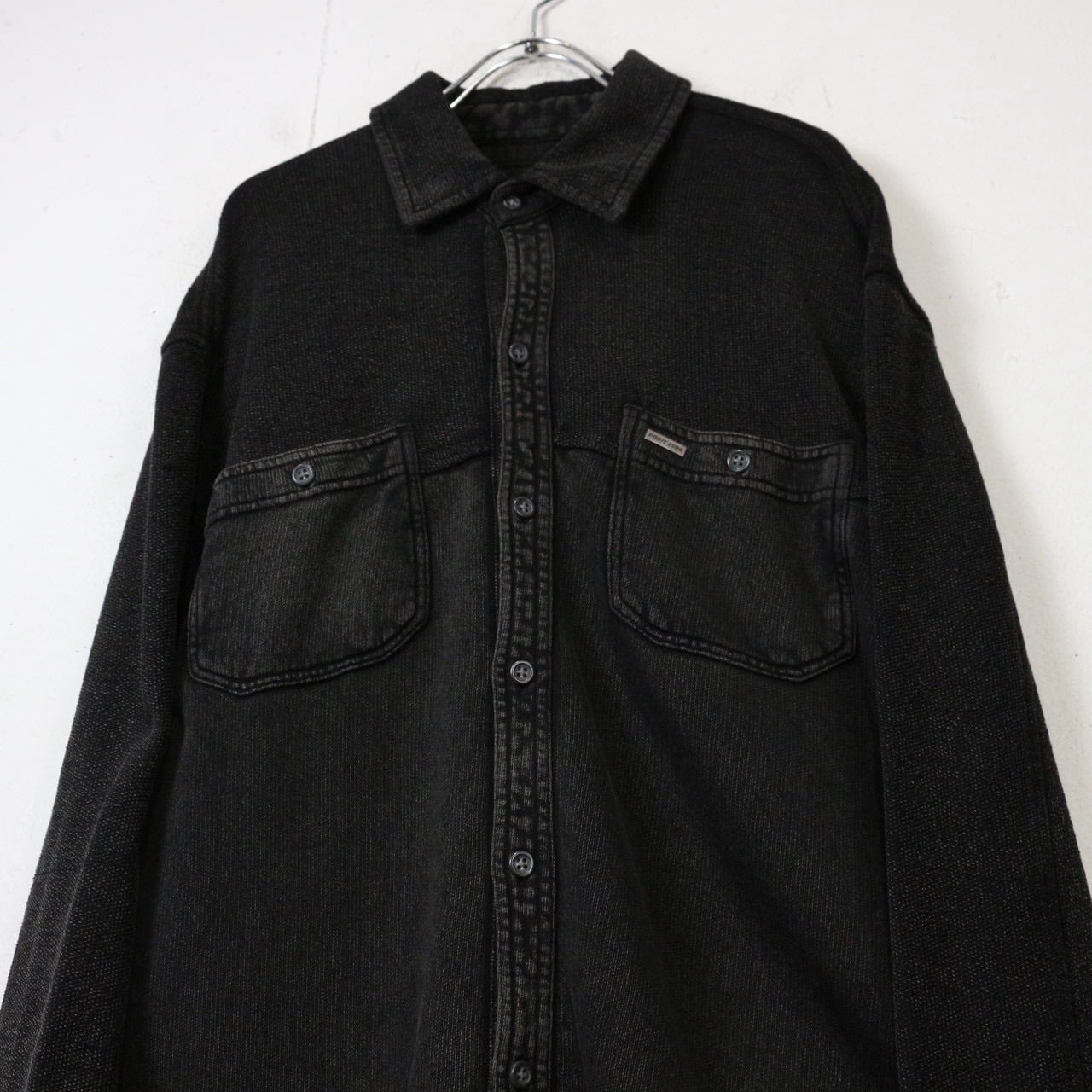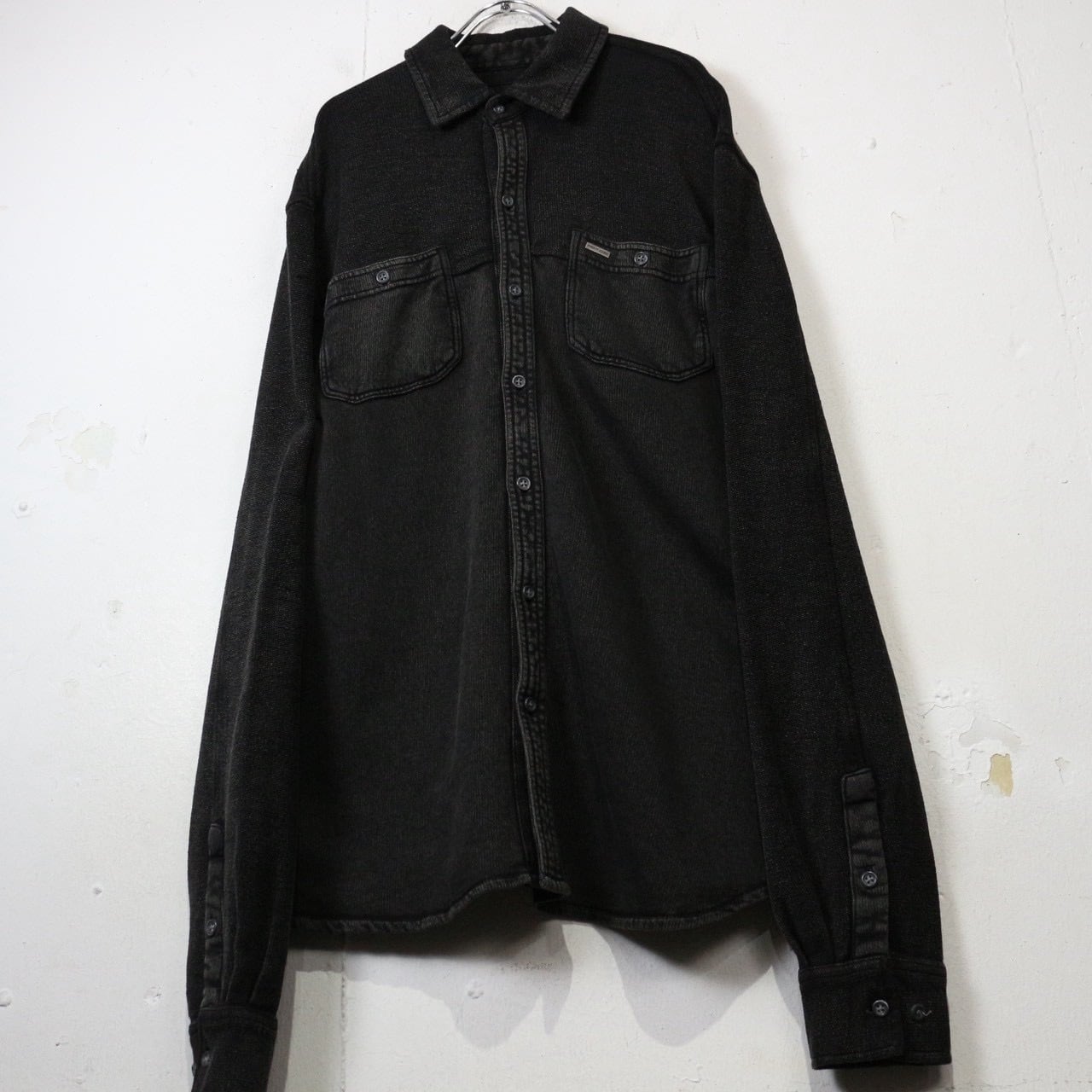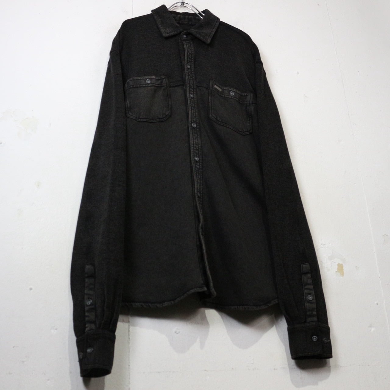 シャツをベースとしたカチッと感と、スウェットのラフさが掛け合わさったデザインバランスが素晴らしいですね。両胸のパッチポケットもデザインのアクセントに。