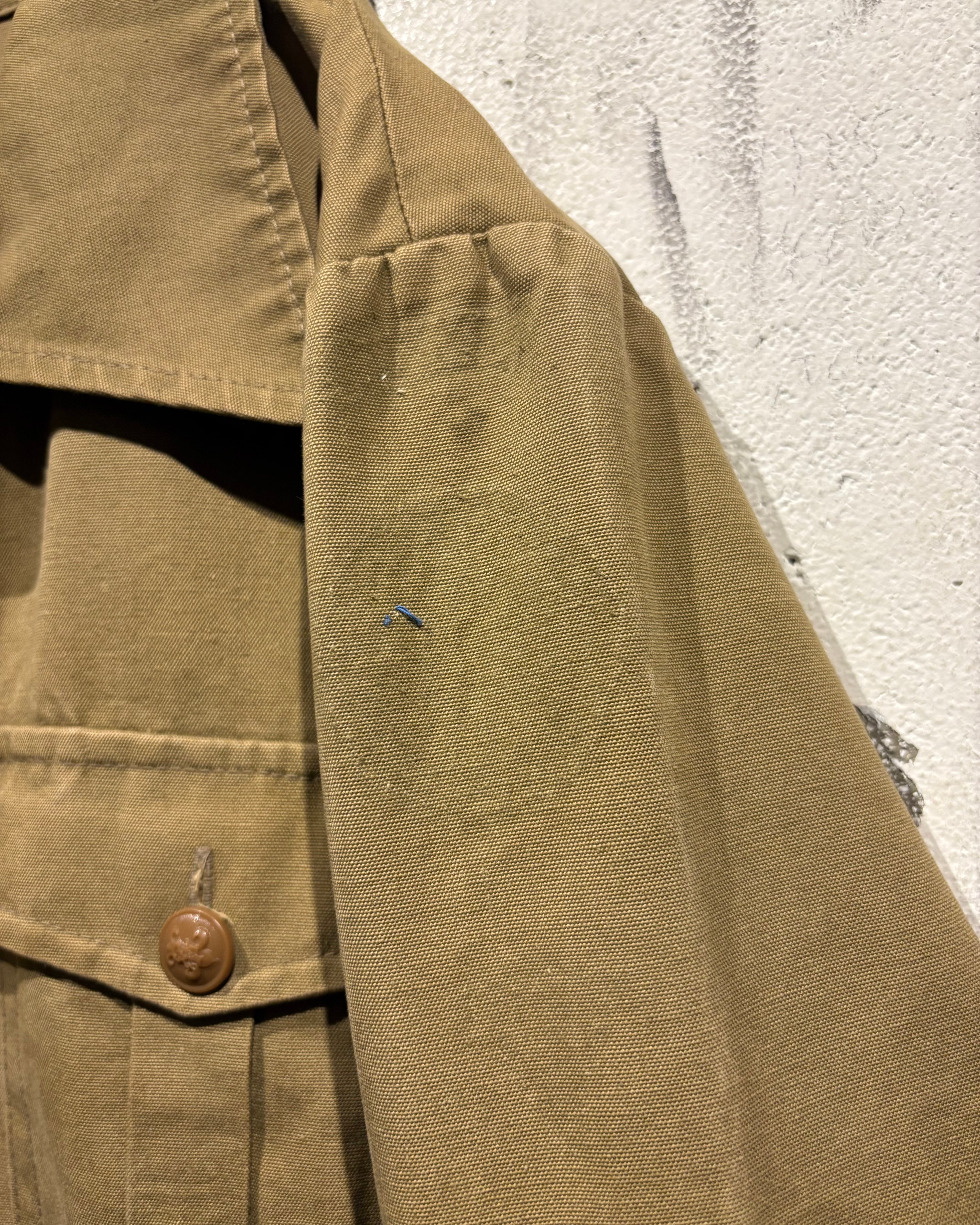オリーブがかったブラウンのボディに、タフなコットンファブリックを採用。しっかりとした生地感と無骨な風合いが魅力で、経年によるアタリやフェードも楽しめるのが◎