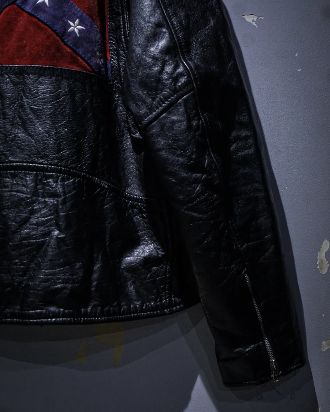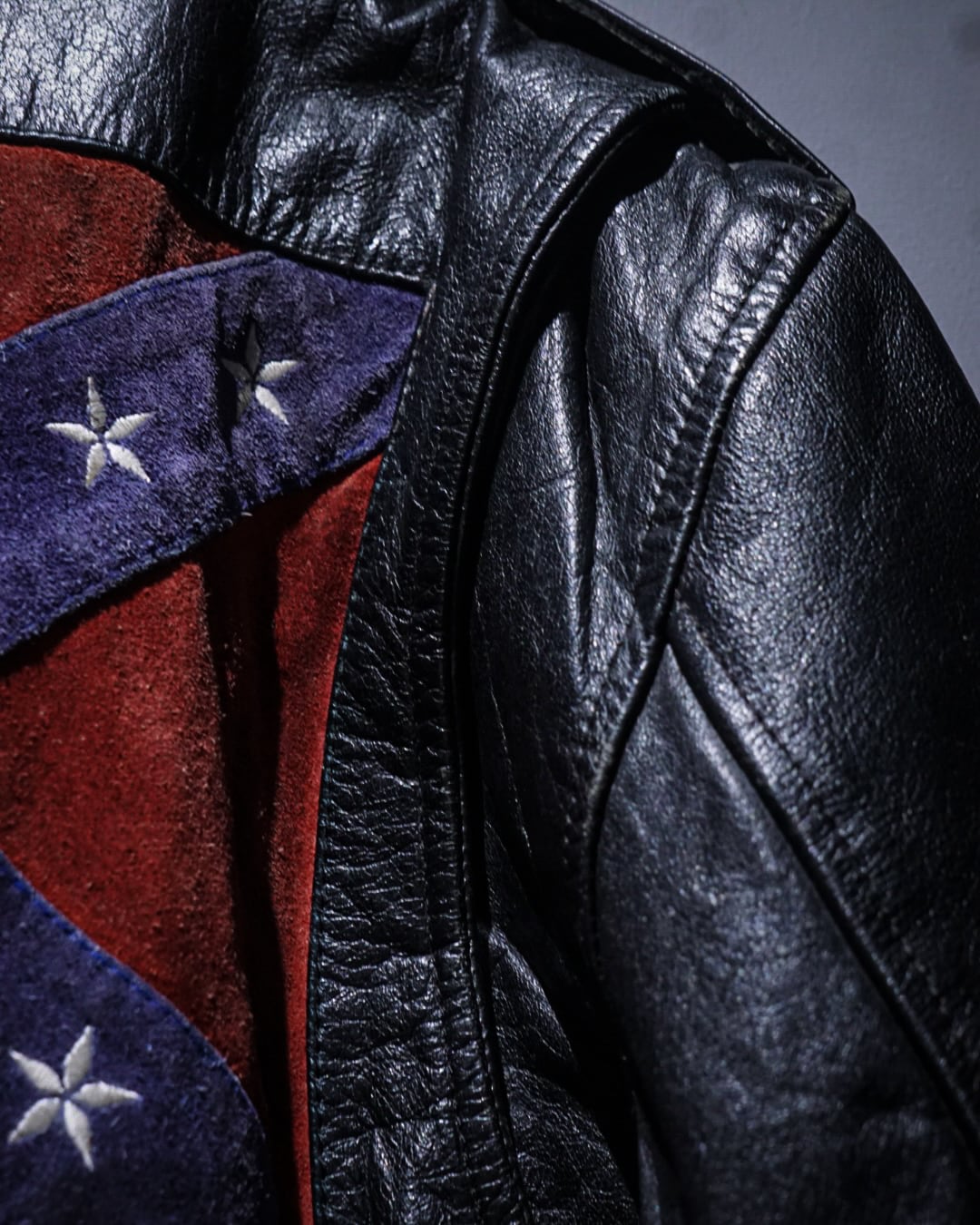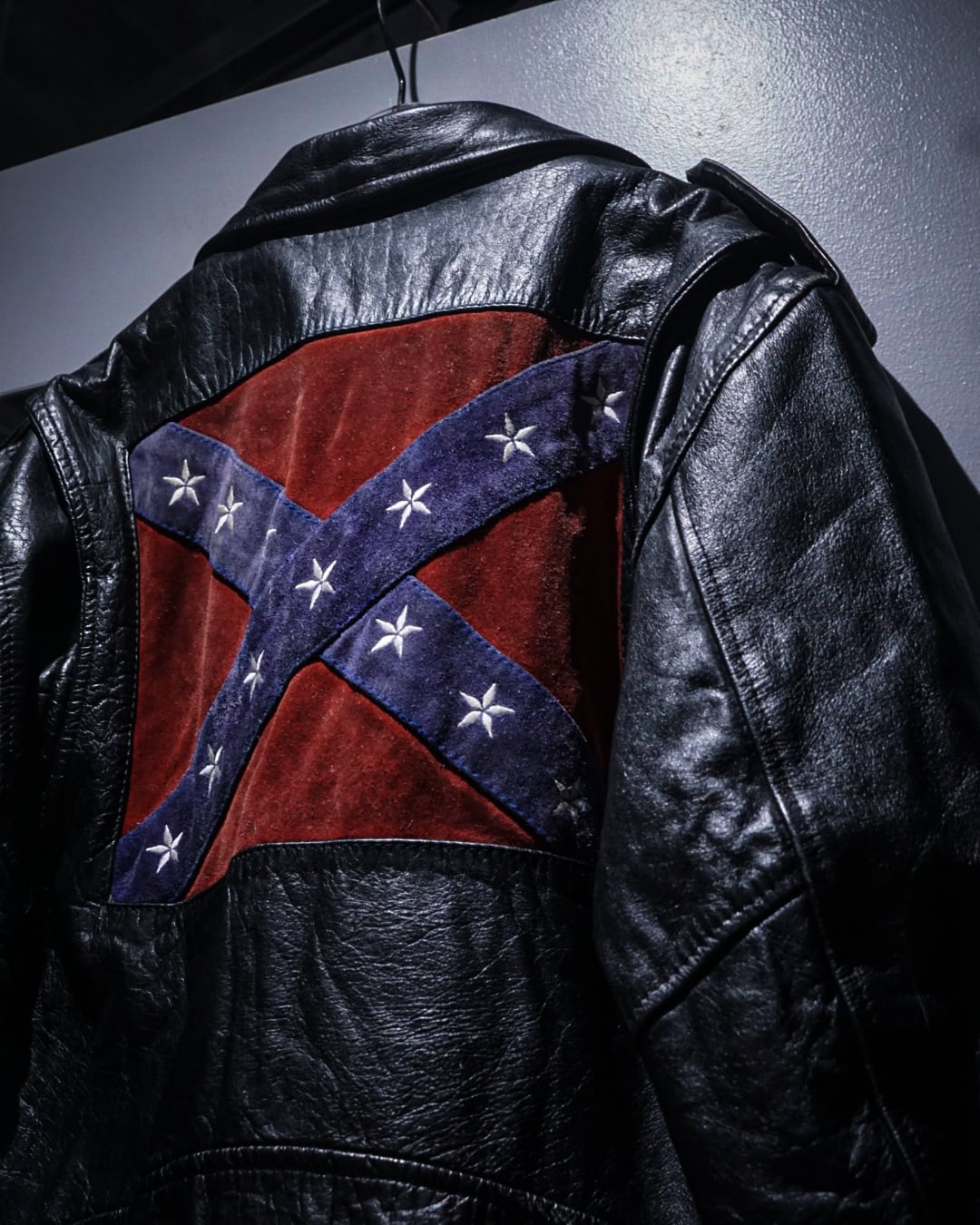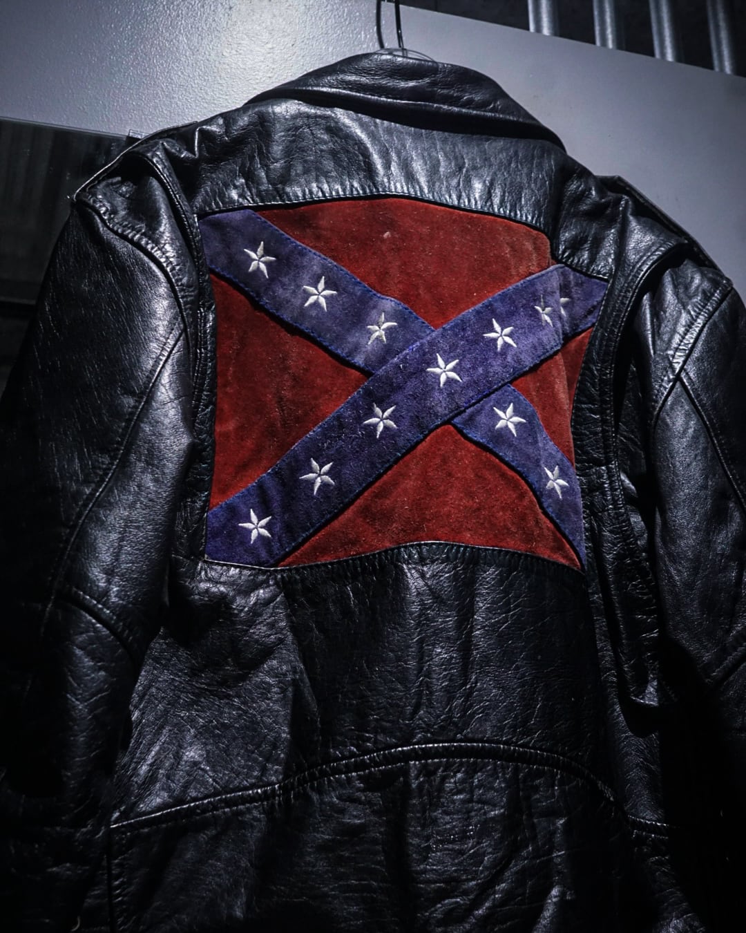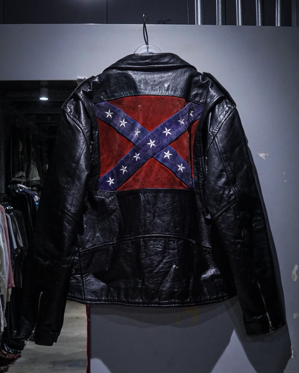 最大の特徴は背面。スエード調の切り替えによって、コンフェデレートフラッグを表現した1着。