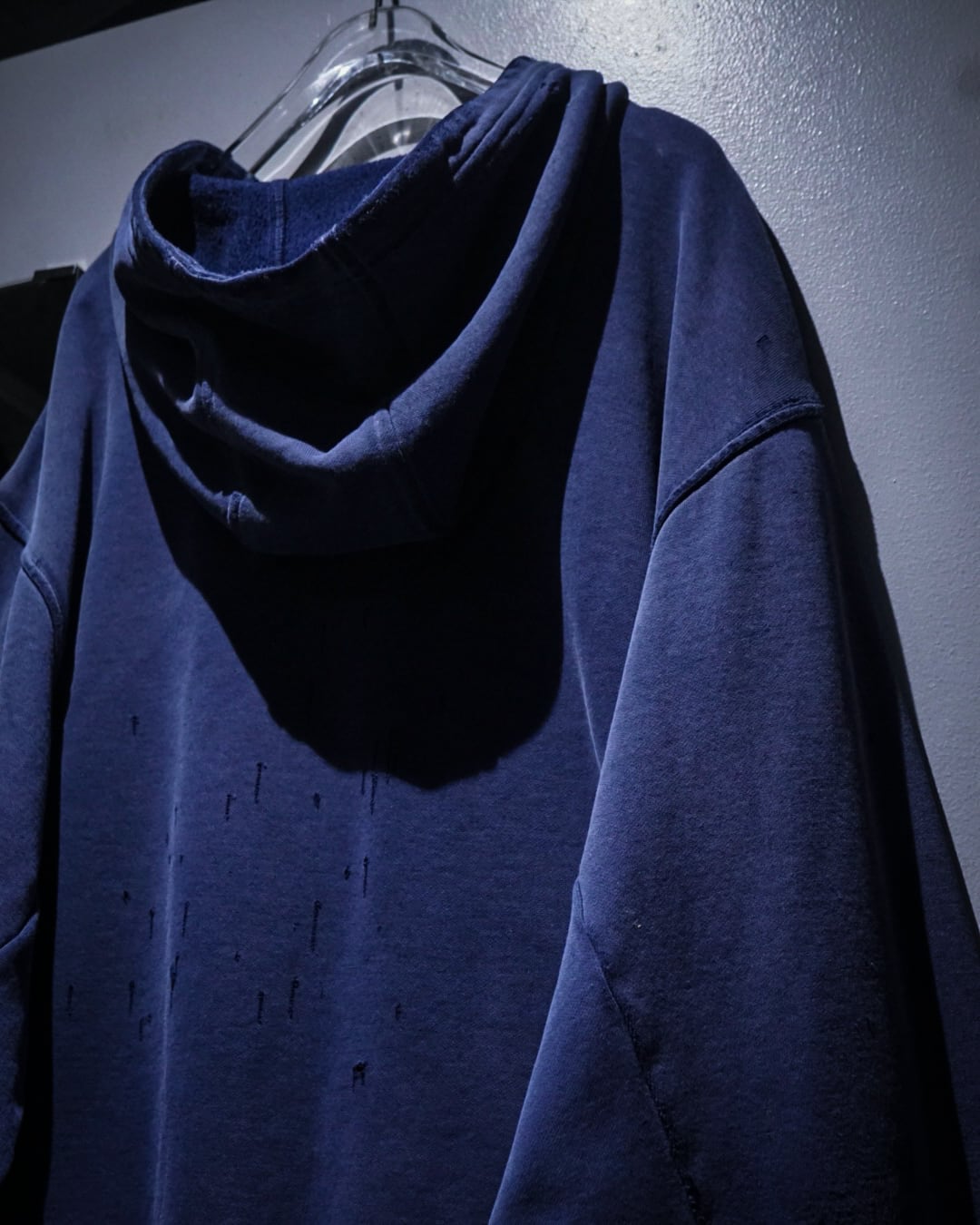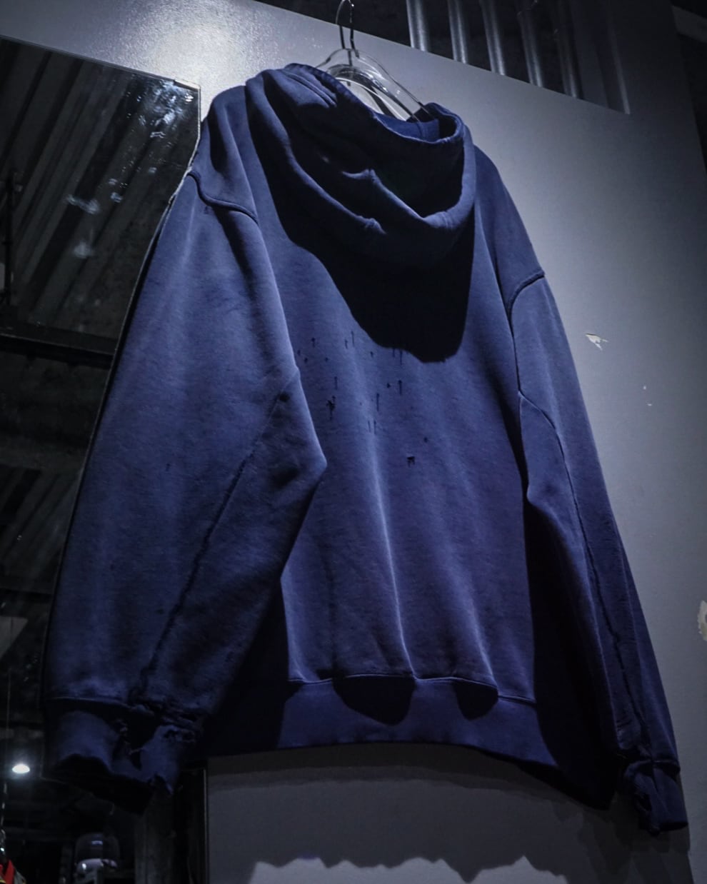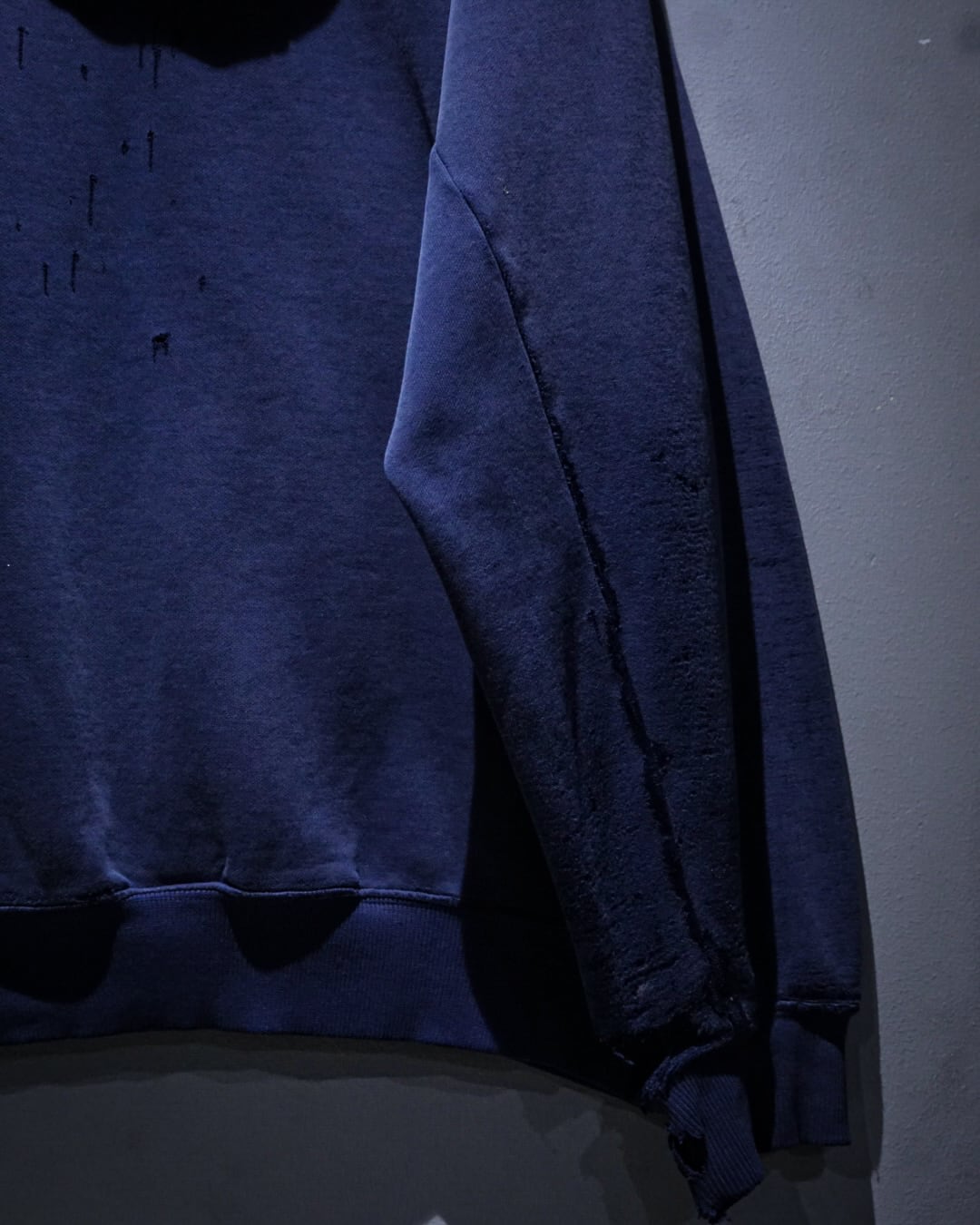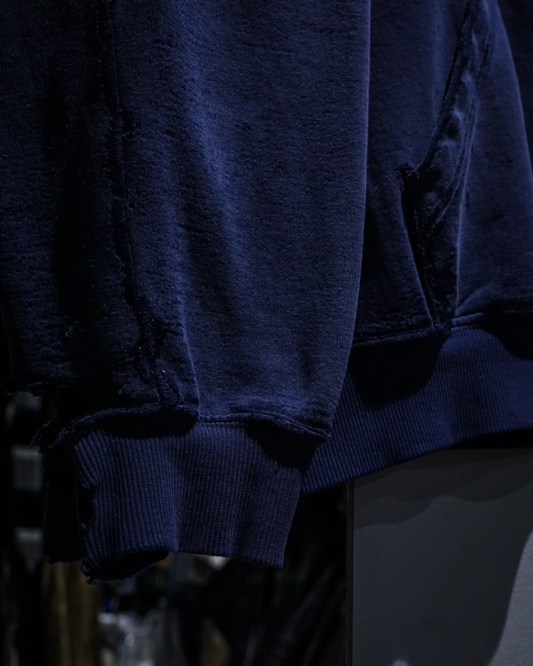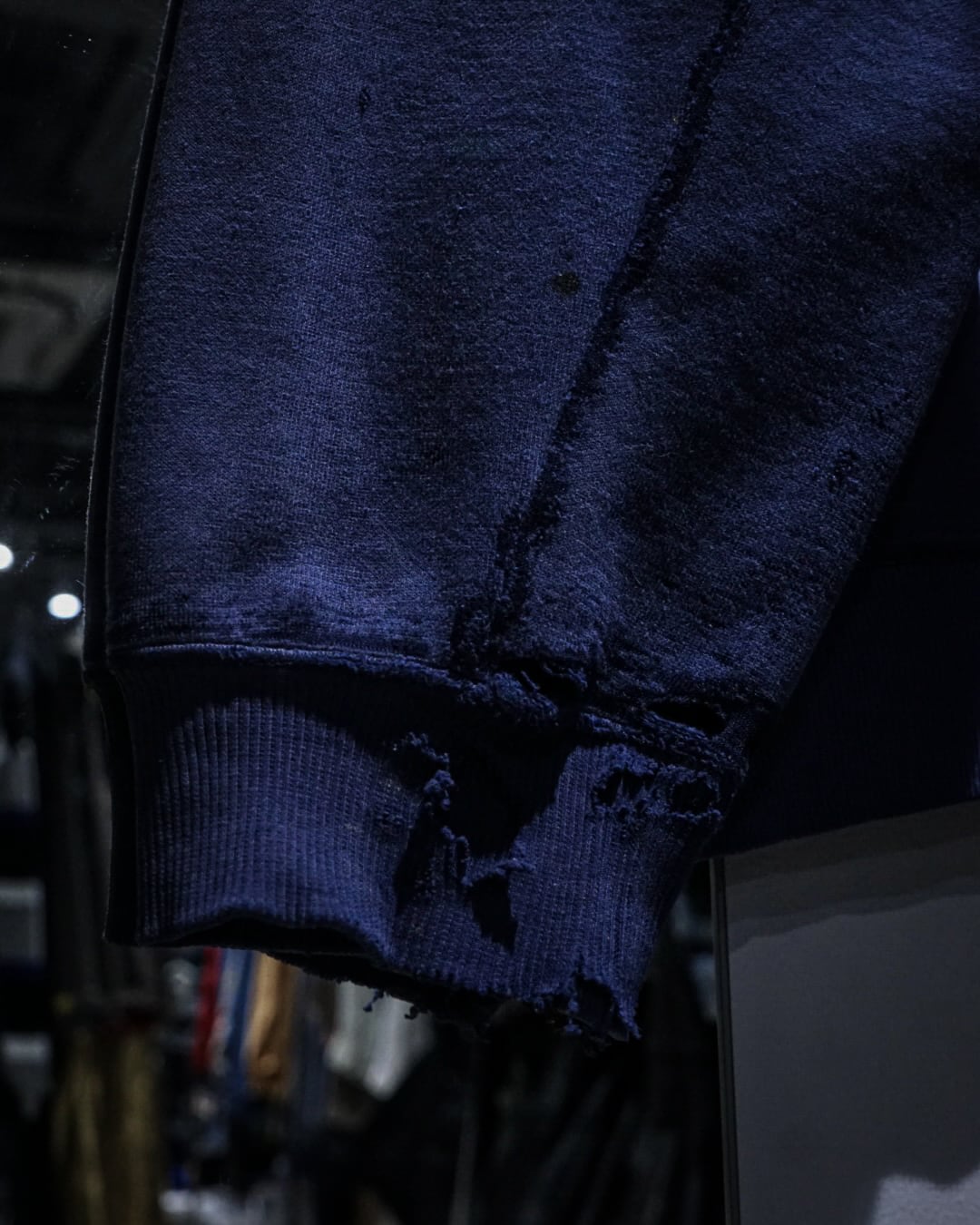 程よくフェードしたブルーボディに、全体へ走るダメージや色褪せが重なり合うことで、リアルなボロの表情を形成。狙っては出せない経年変化が、唯一無二の空気感を演出しています。