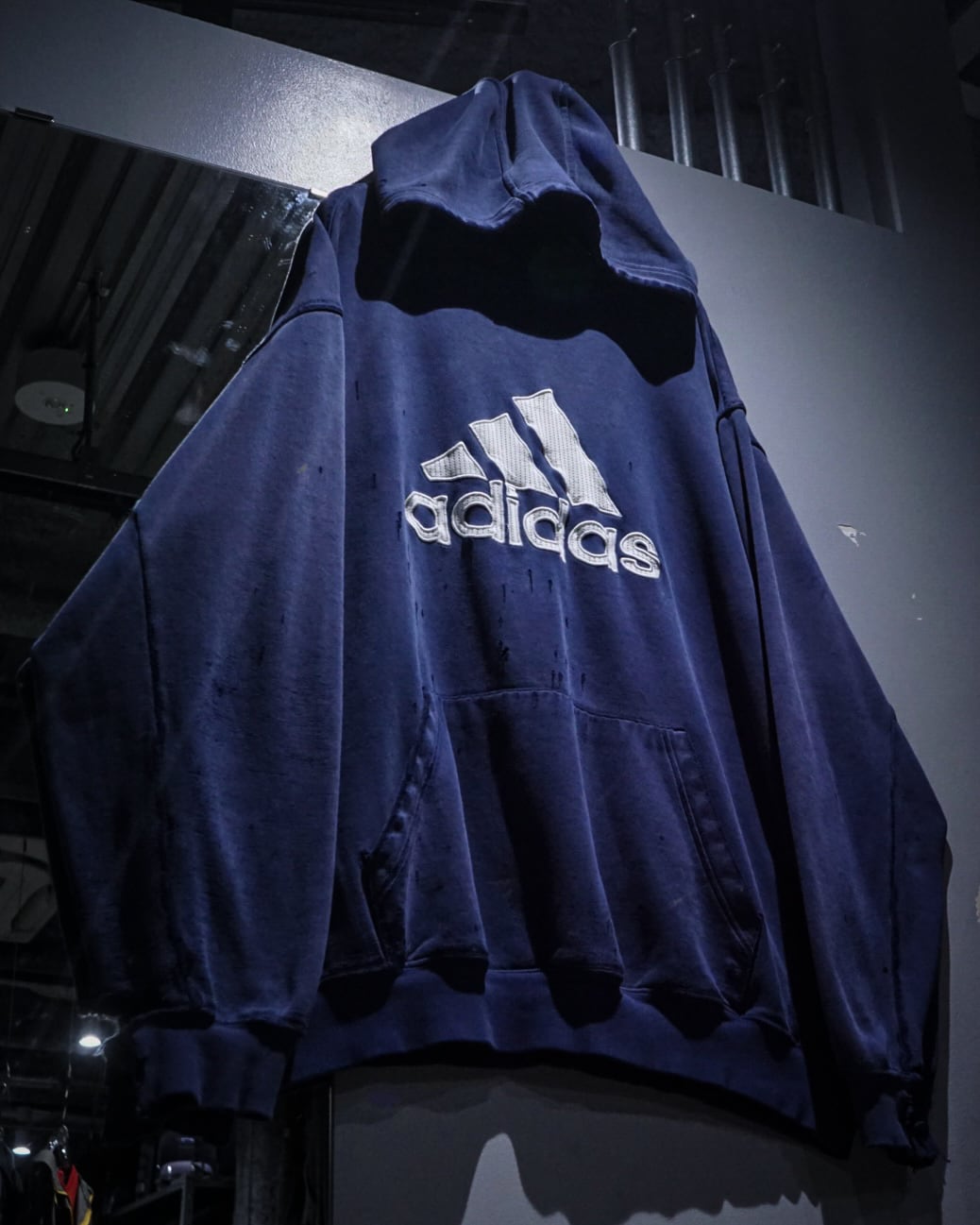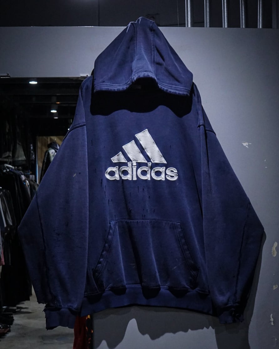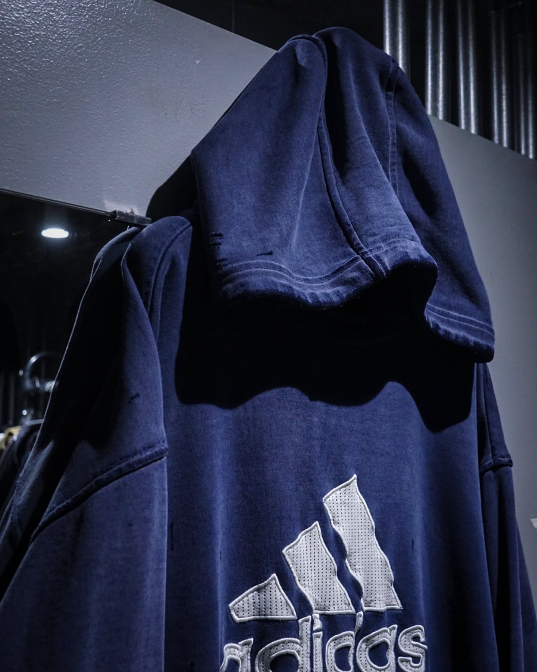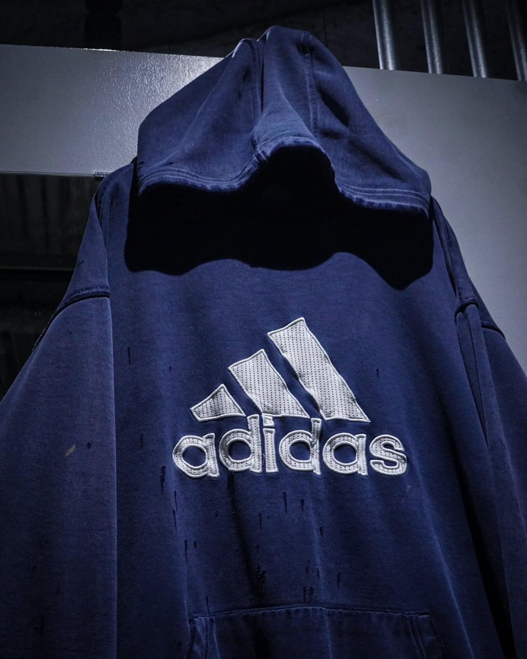 コンディションすらデザインとして昇華された、USEDならではの“adidas”のフーディです。