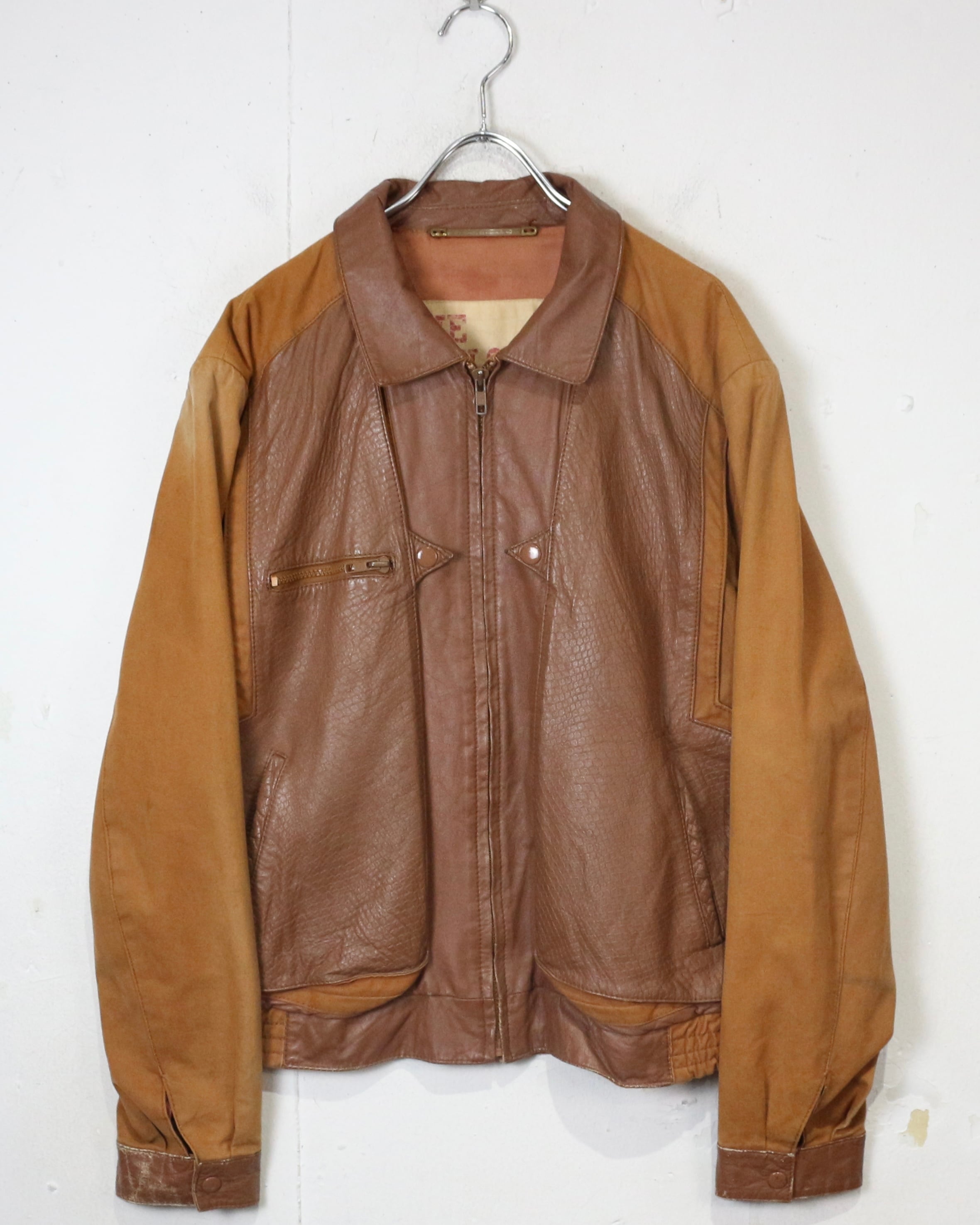 コシのあるコットン地を用いたボディに、クロコダイル柄をエンボスで載せたレザーを切り替えたスペシャルなジャケット。