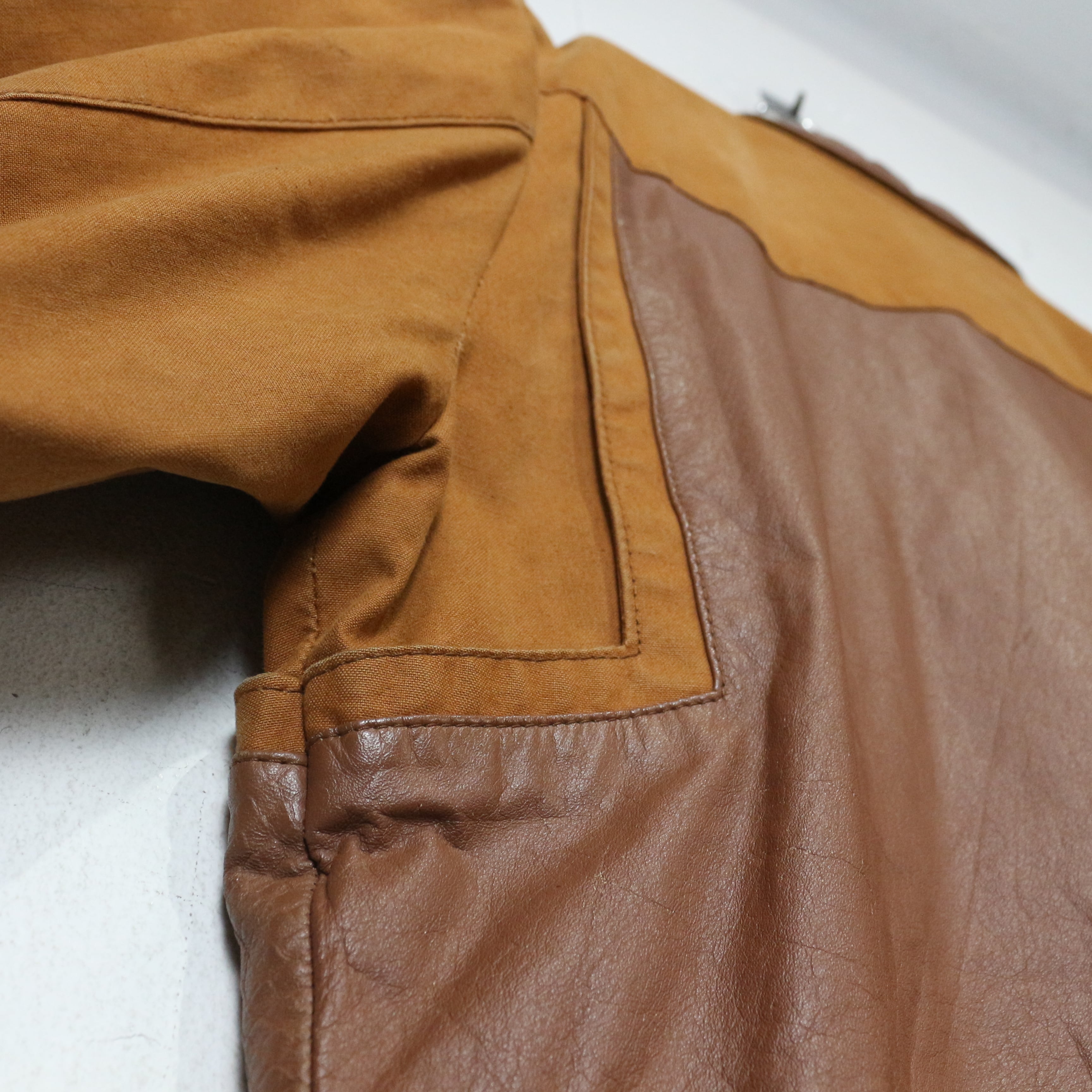 コットンのタフさにレザーのラグジュアルな表情が入り混じったデザインバランスが素晴らしい、、、フロントにはスムースとクロコダイル柄の2種類のレザーが用いられており、スナップボタンのギミックの細やかな作り込みも◎