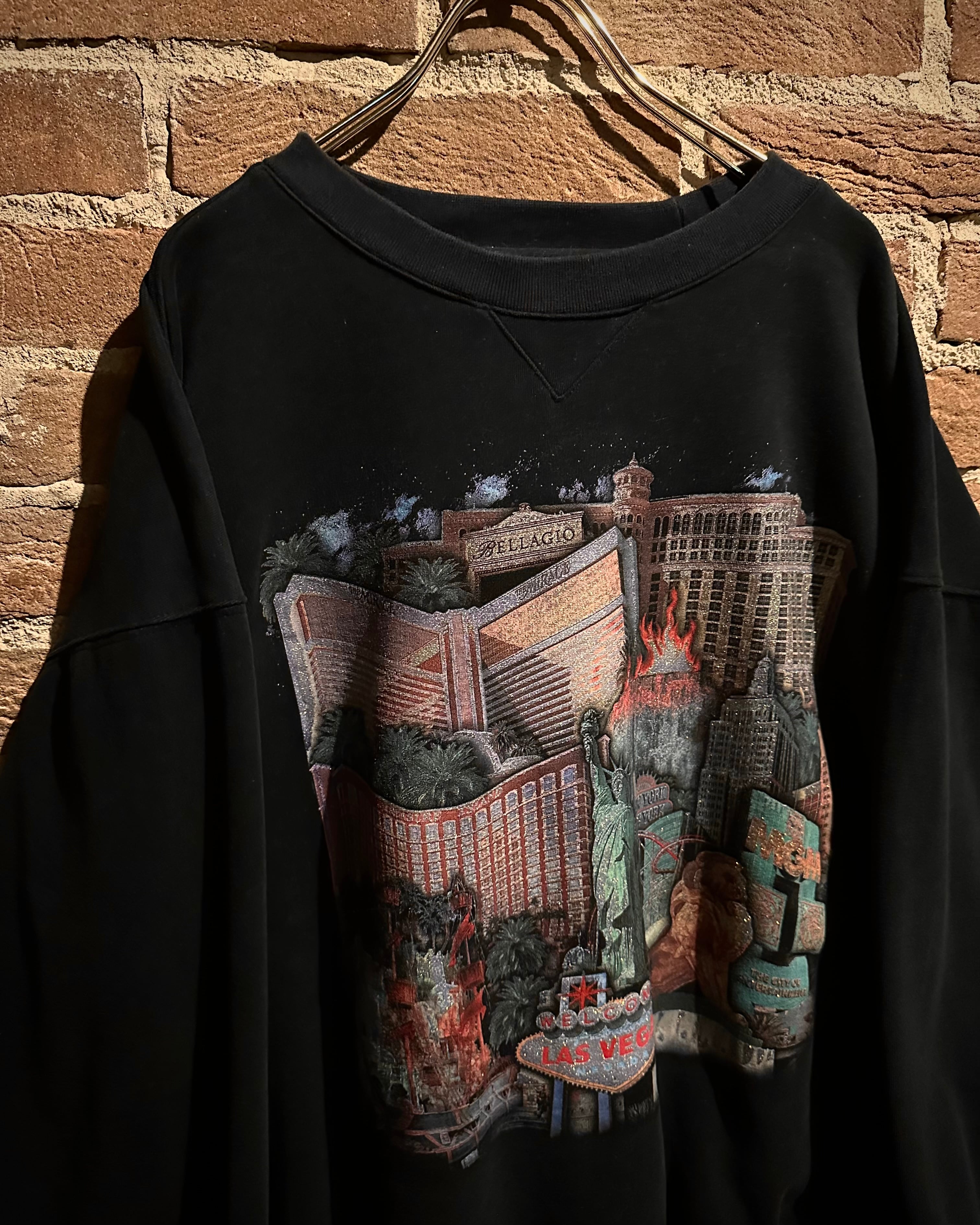 肉厚なブラックボディをベースに、カジノの聖地“LAS VEGAS”の街並みを大胆に落とし込んだスウェット。
