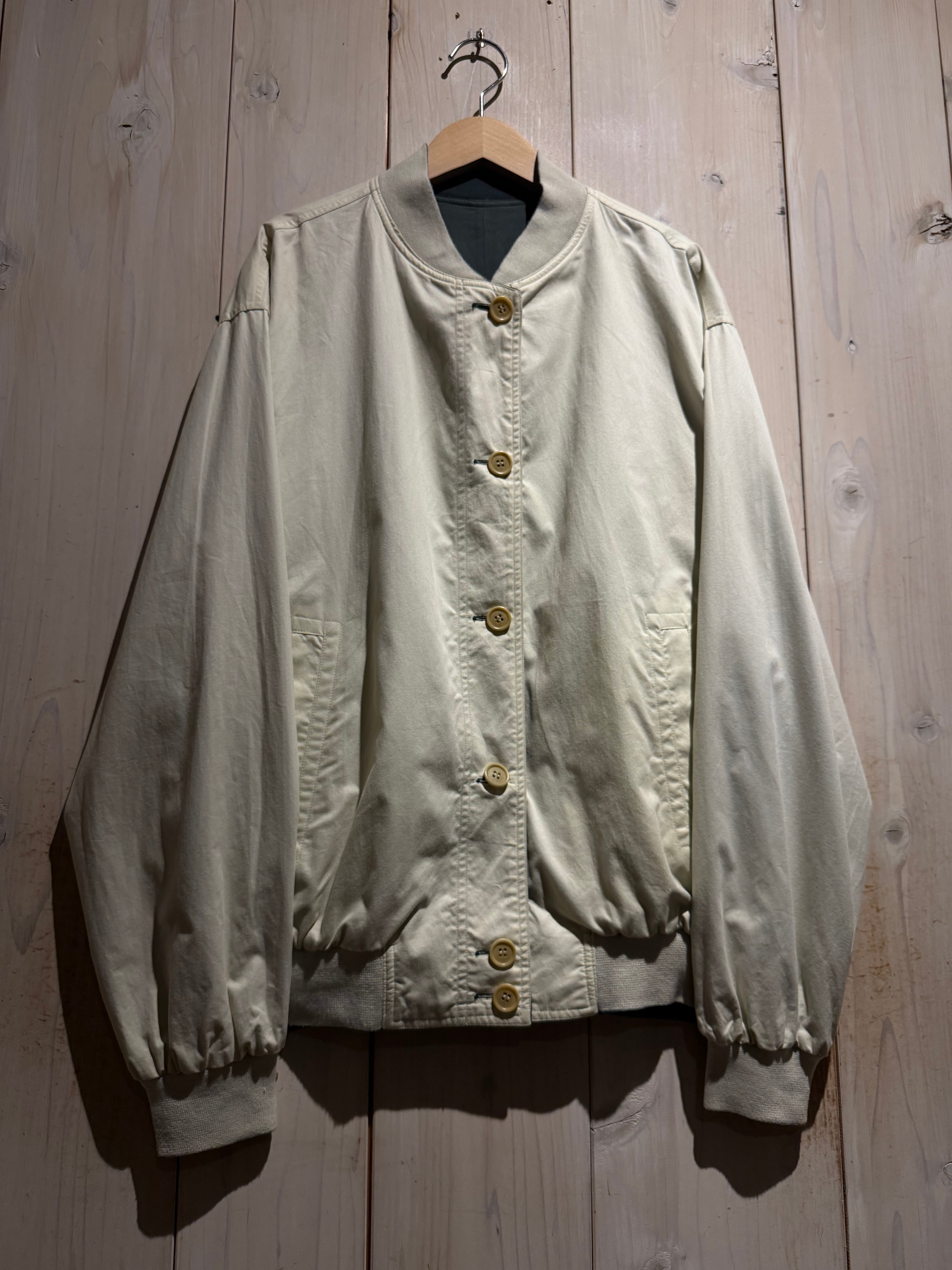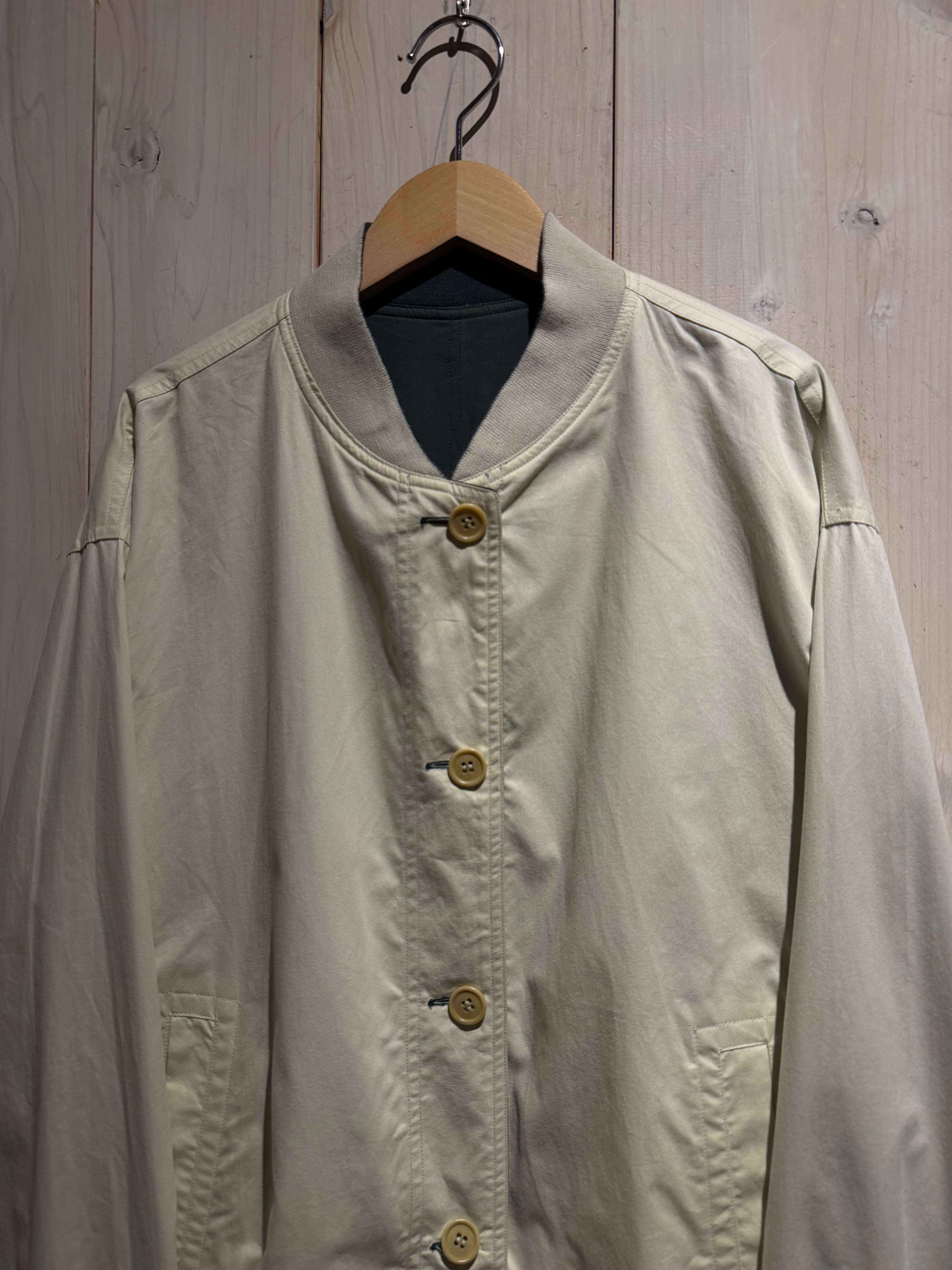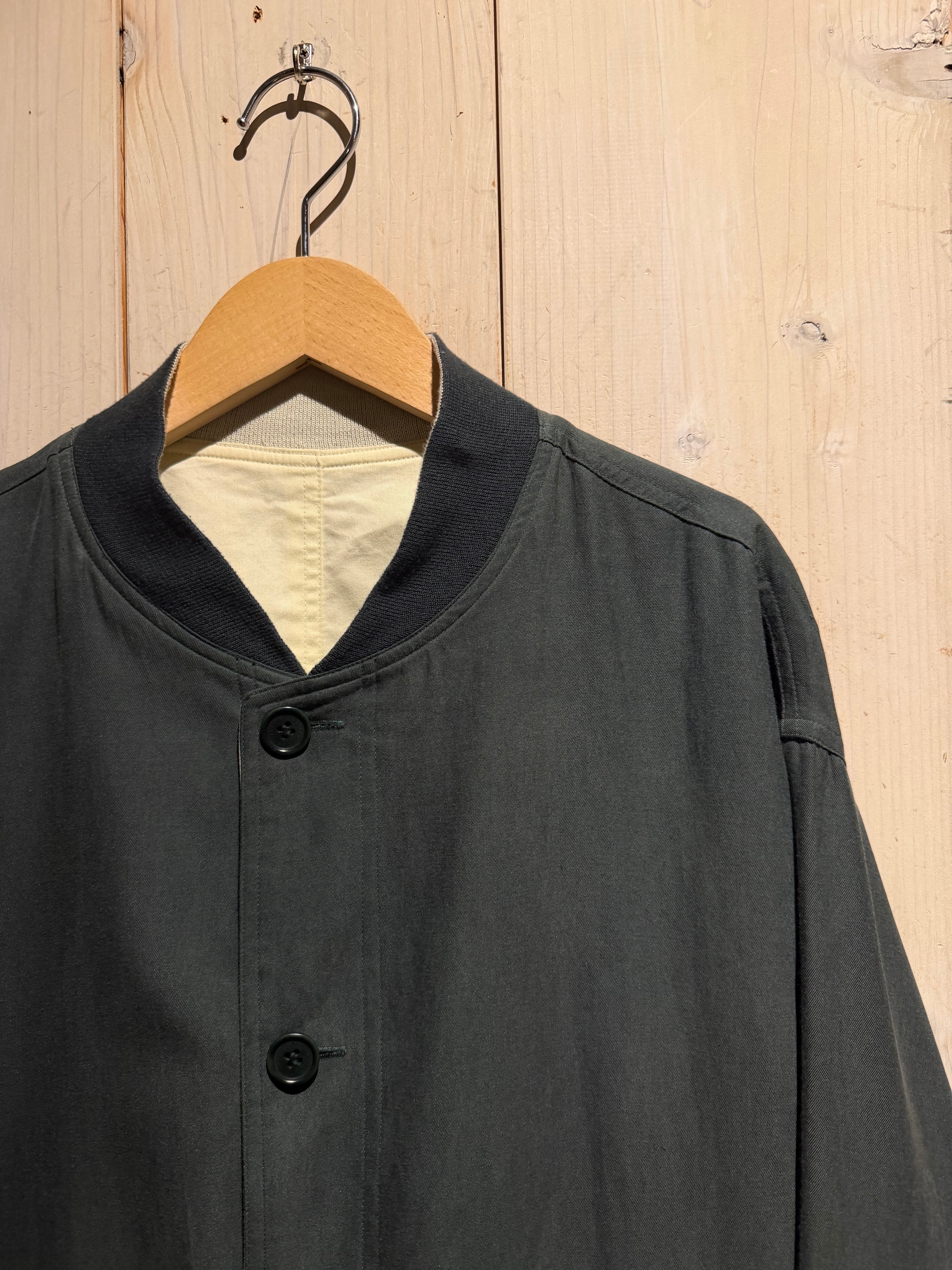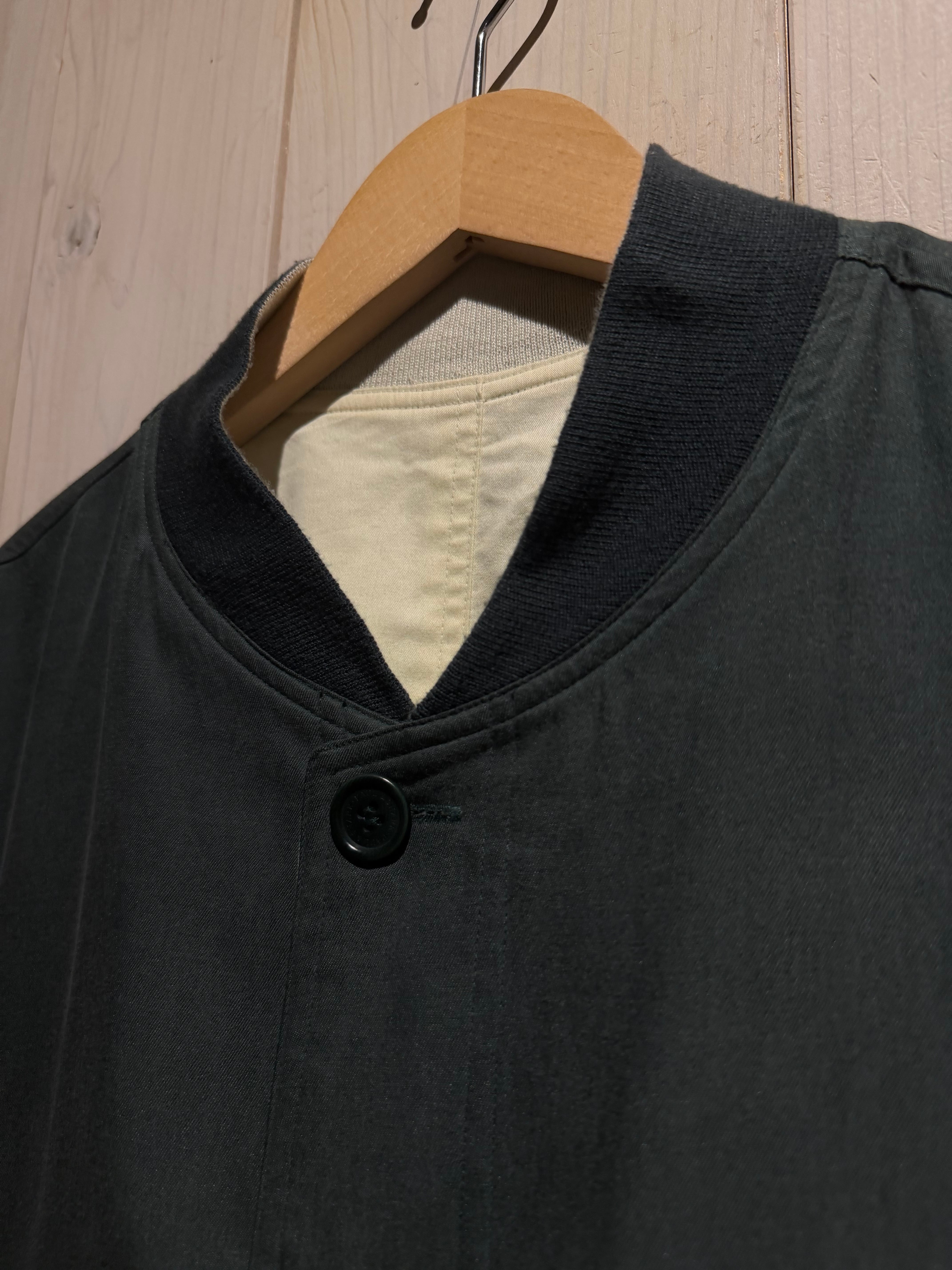 ボディには滑らかで軽やかなファブリックを採用し、グリーンとアイボリーナチュラルな2色で仕立てたリバーシブル仕様の1着。