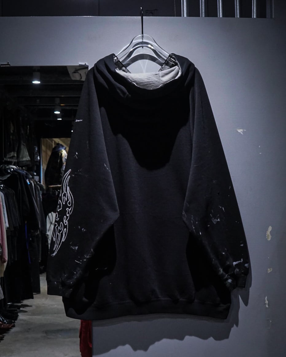 退廃的なムードとストリートカルチャーが混ざり合った、圧倒的存在感を放つプルオーバーフーディをご紹介いたします。