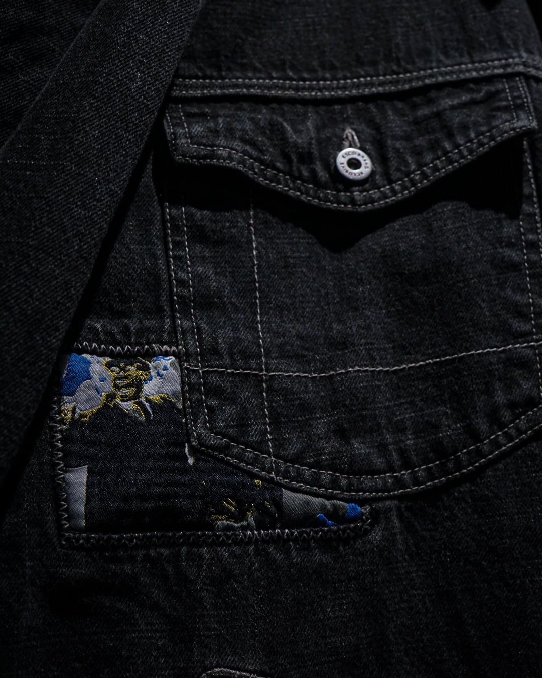フロントにはフラップポケットを配置した王道のデニムジャケットスタイルを採用しつつ、随所に施されたパッチや刺繍デザインが唯一無二のアクセントに。