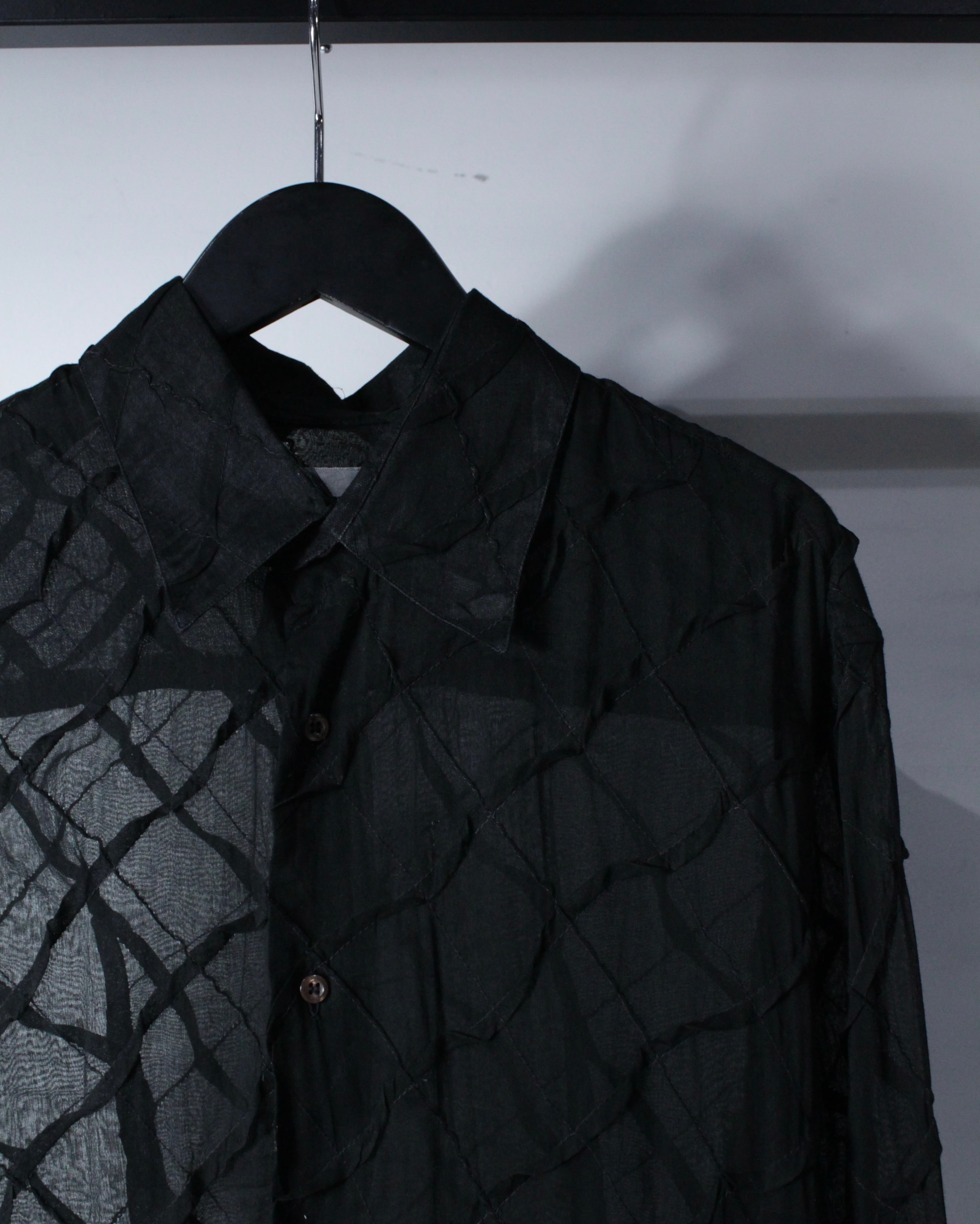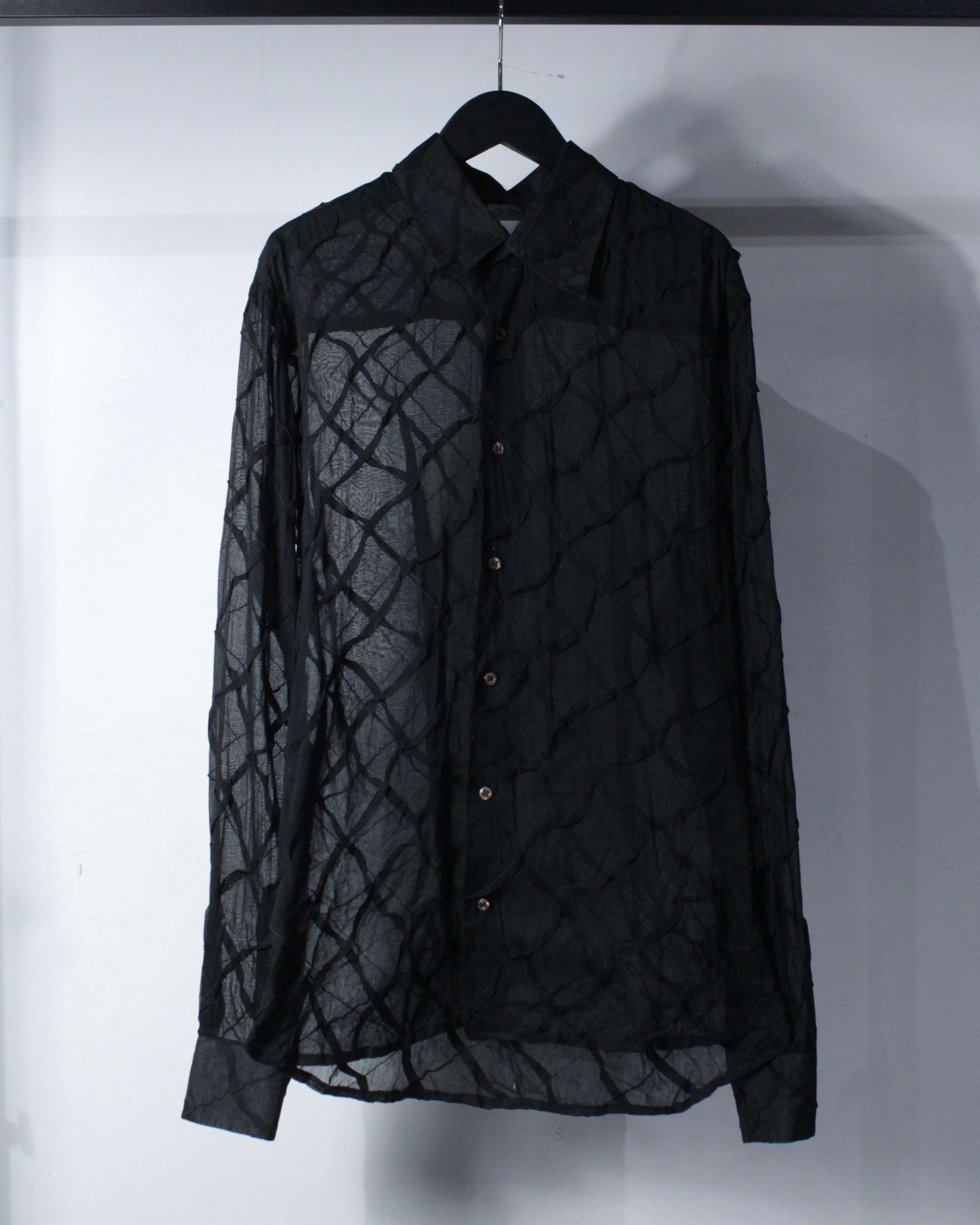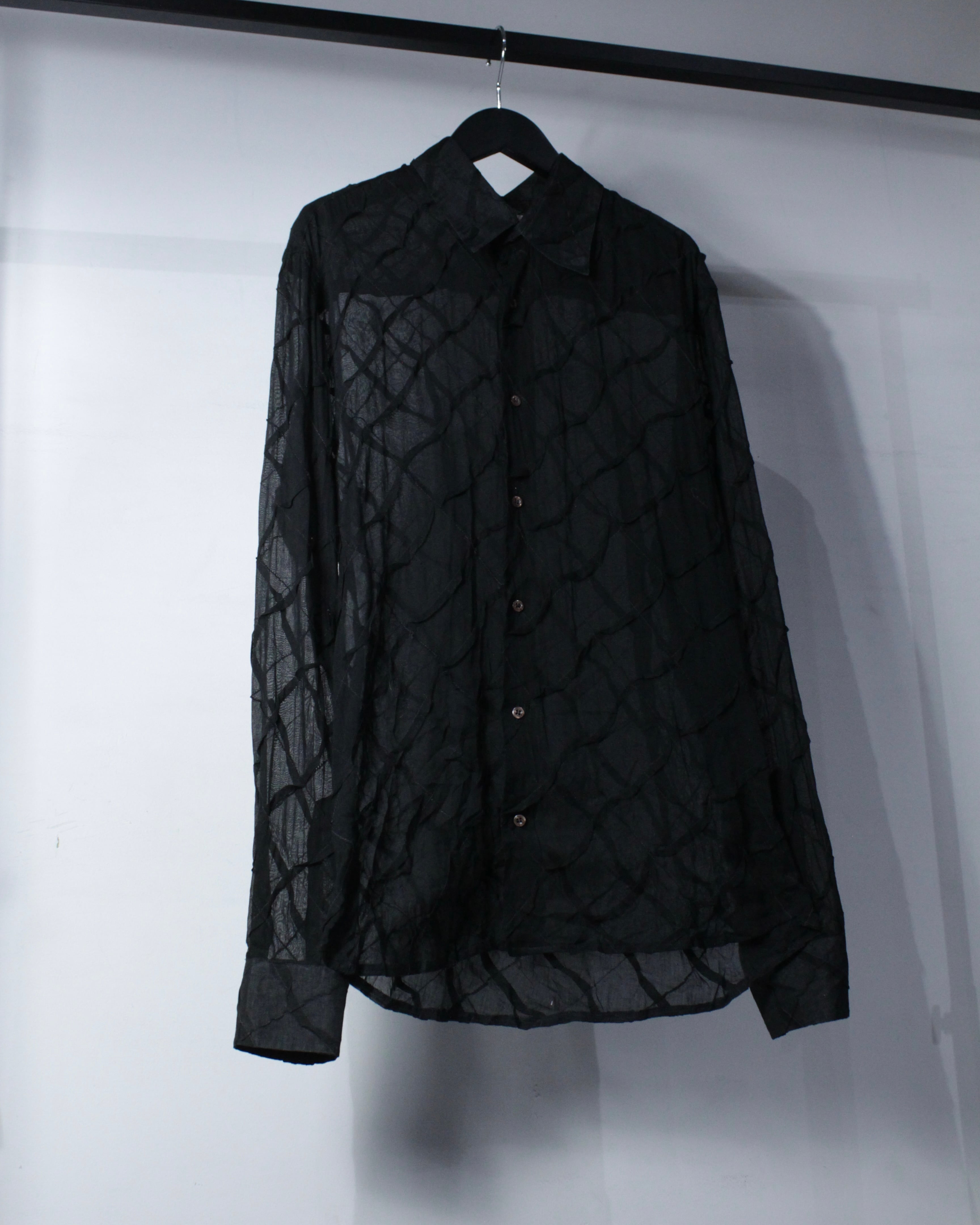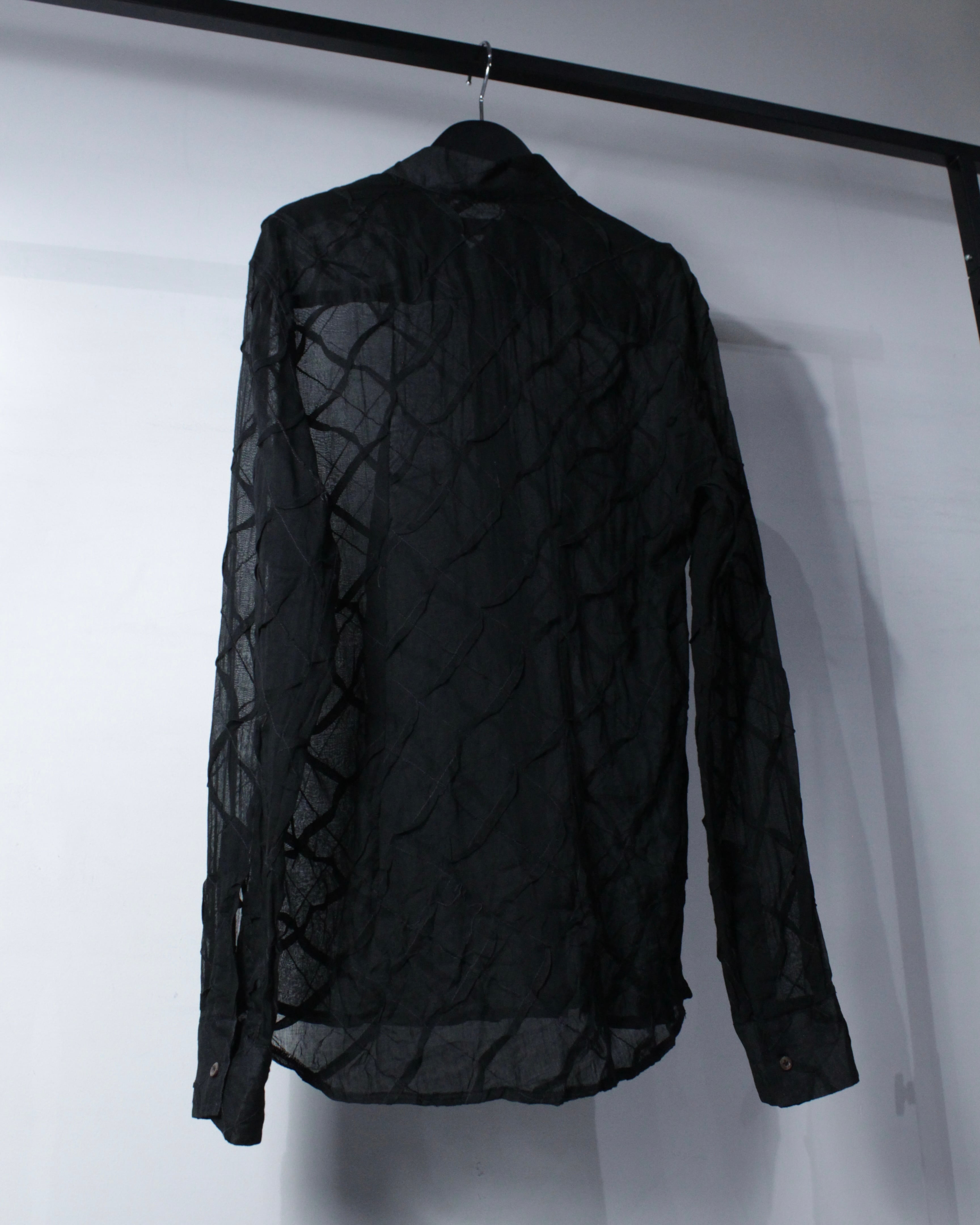 モードな空気感を纏いながら、素材使いで強烈な存在感を放つシアーシャツをご紹介いたします。