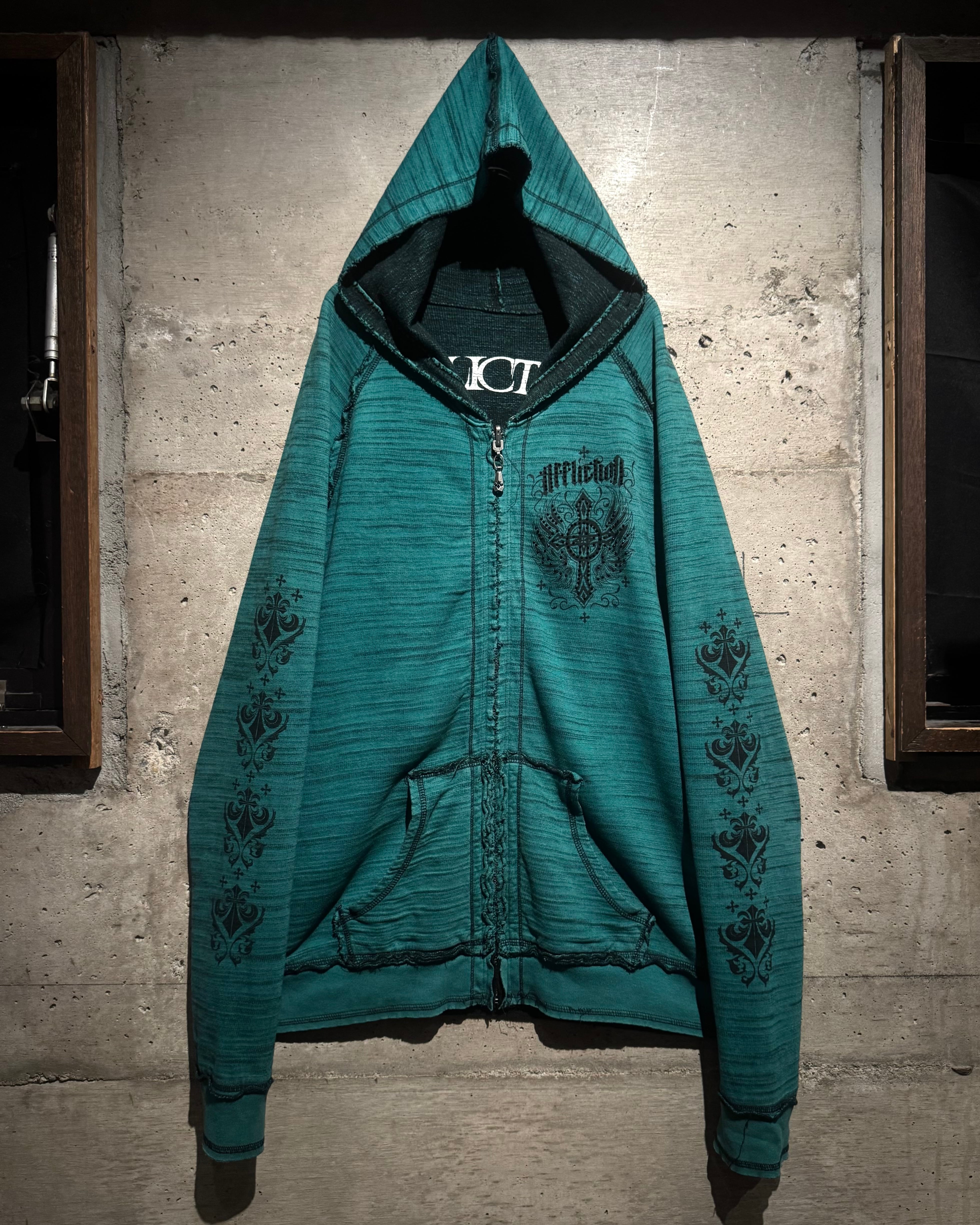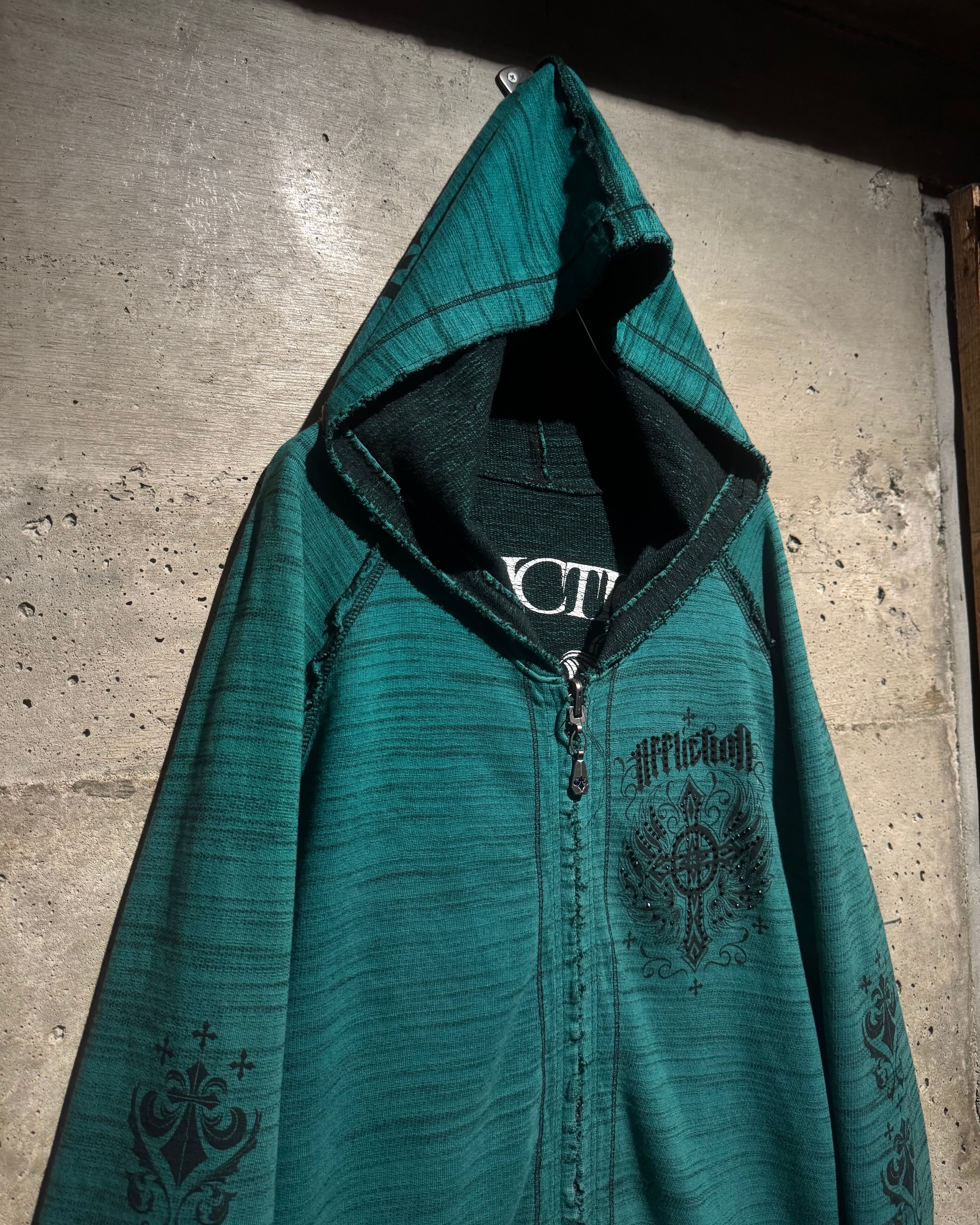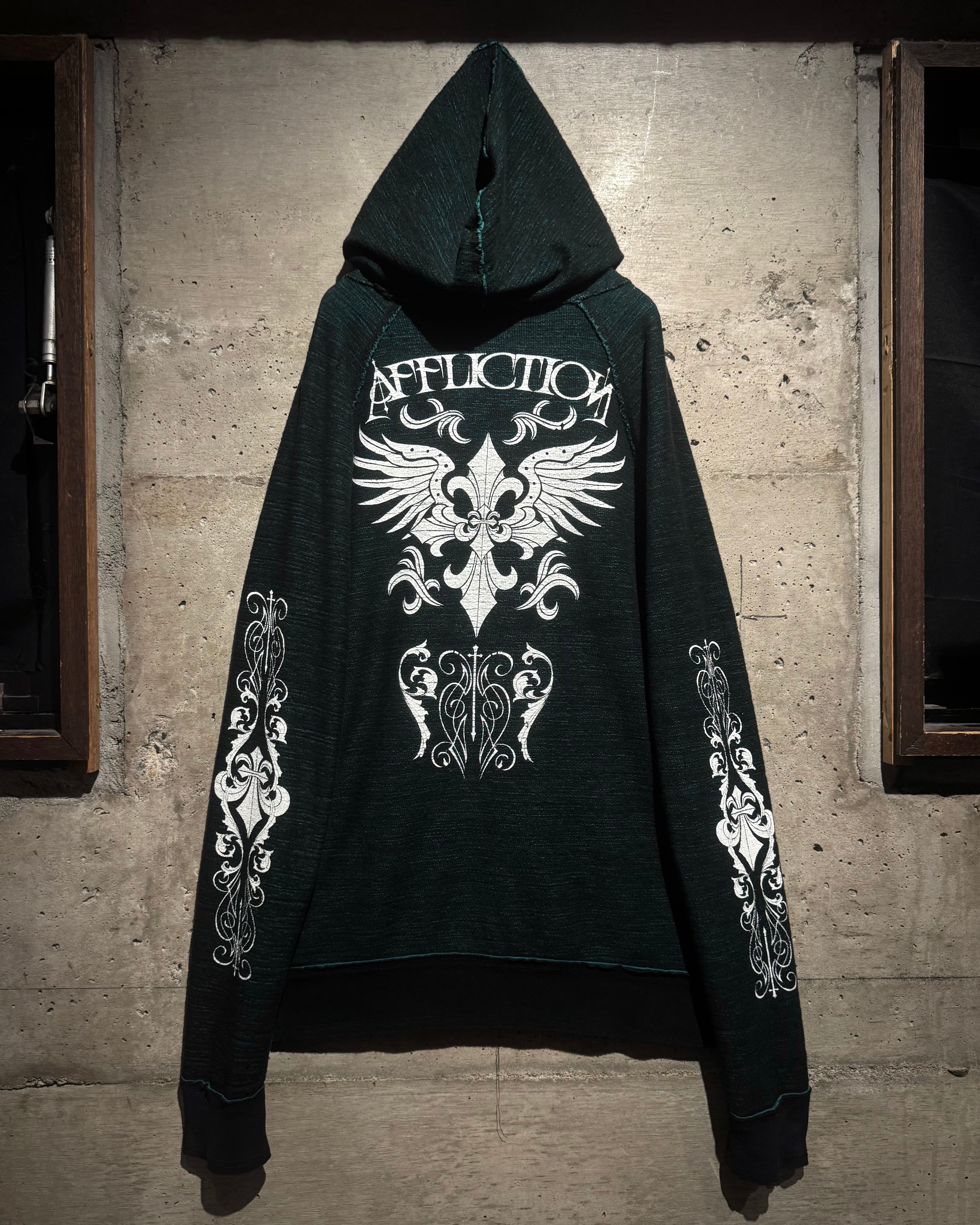 “Affliction”らしい退廃美とラグジュアリー感を存分に味わえるスペシャルなリバーシブルのフーディです。