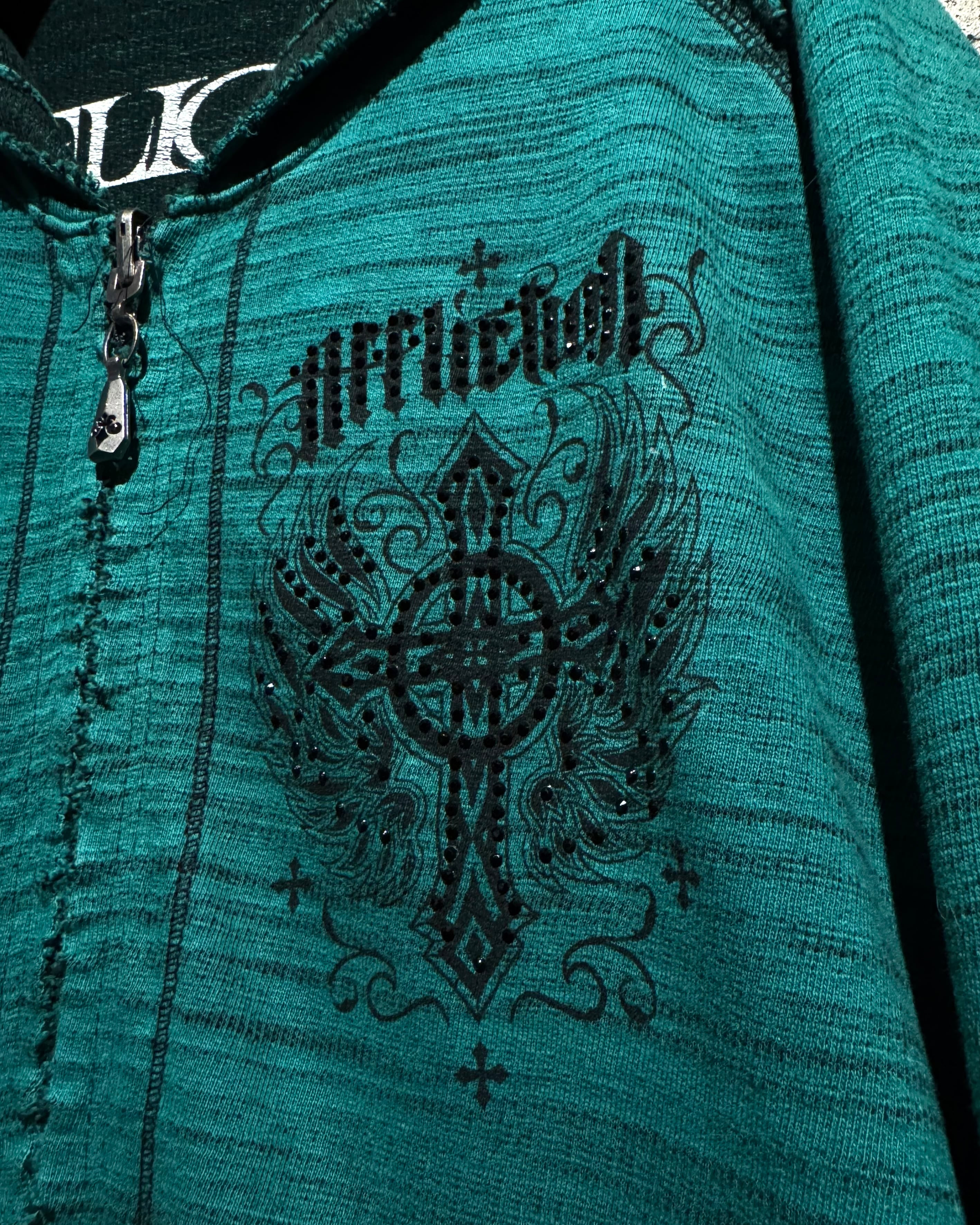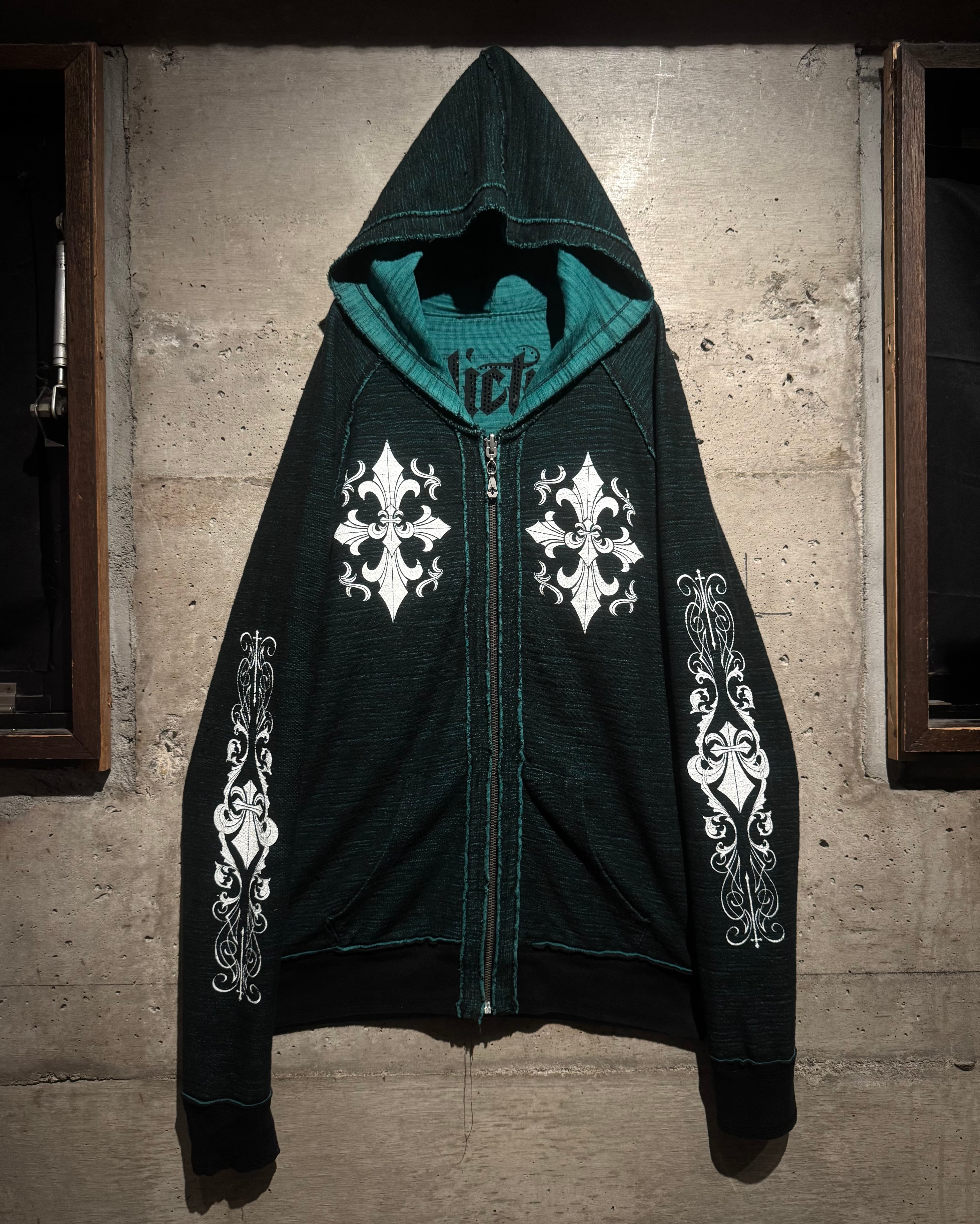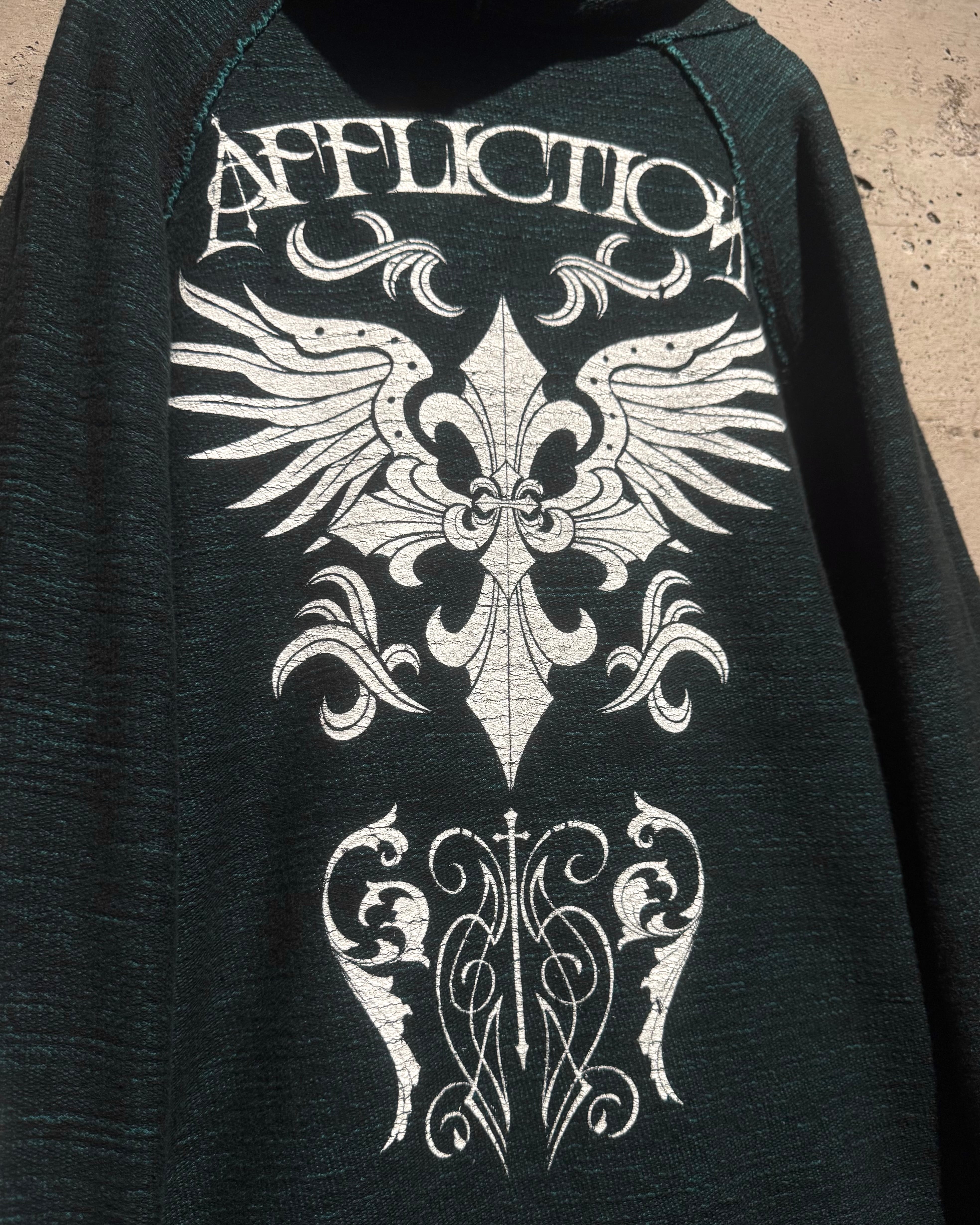 “Affliction”らしい退廃美とラグジュアリー感を存分に味わえるスペシャルなリバーシブルのフーディです。