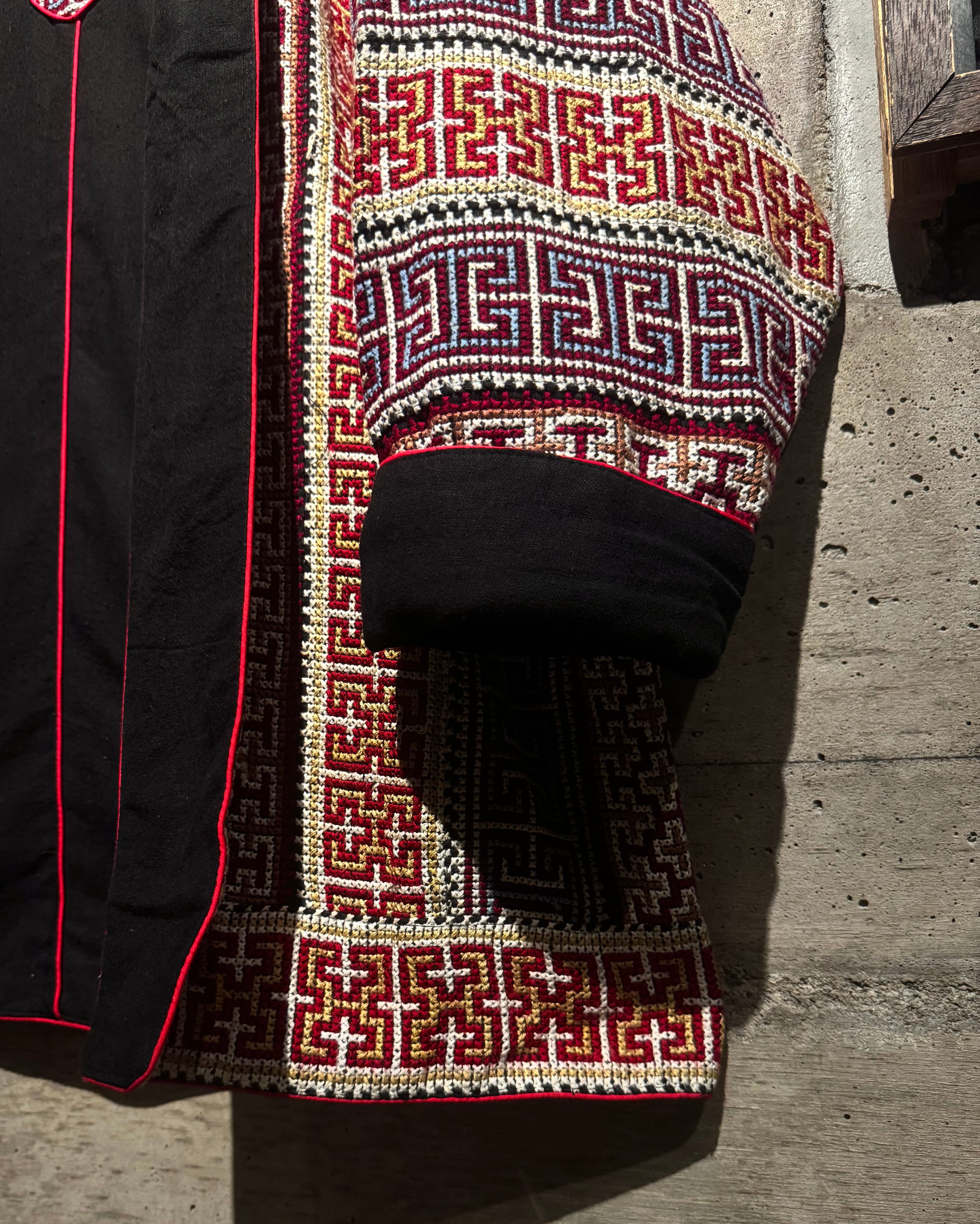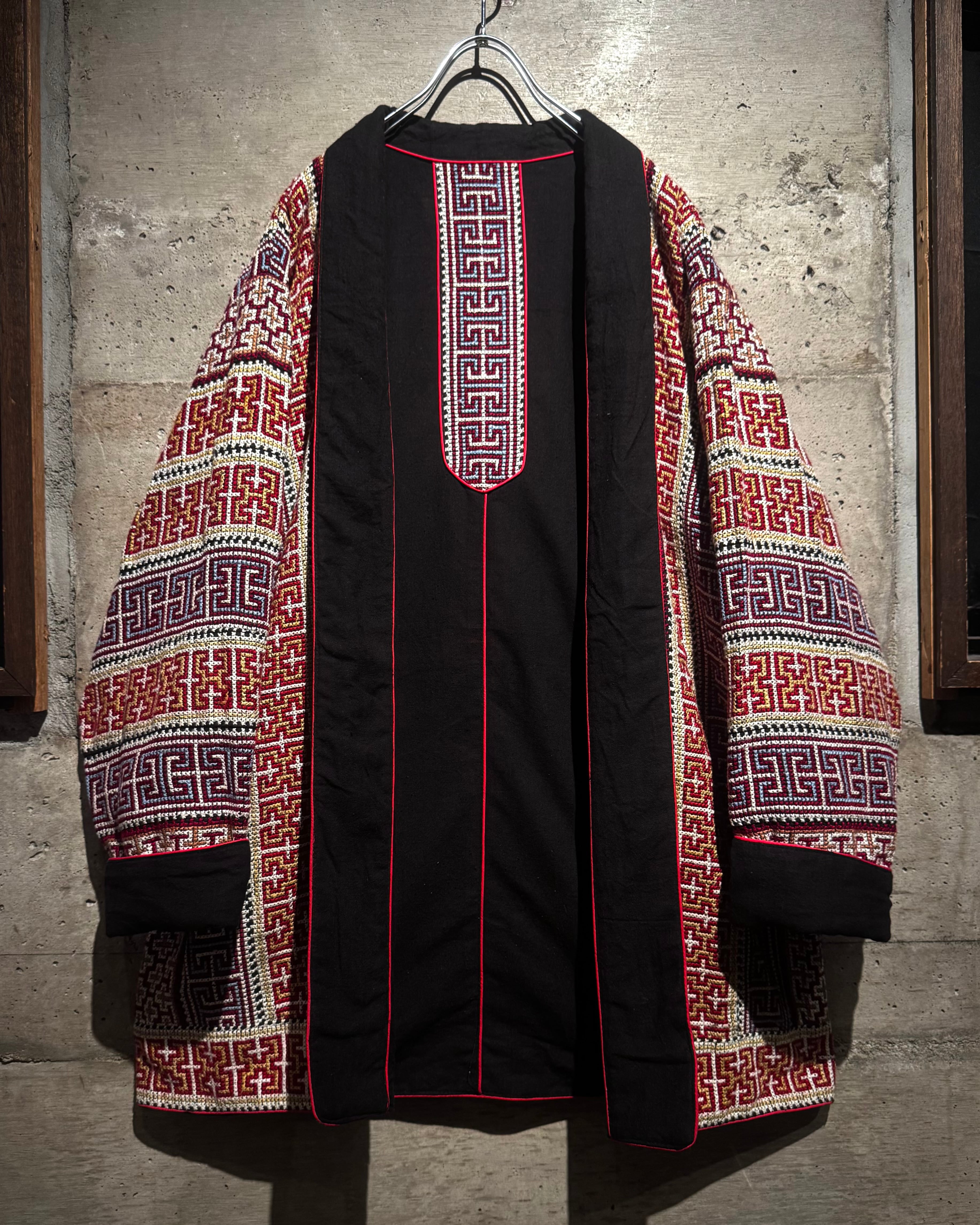 東南アジアの山岳民族“モン族”による、圧巻の刺繍ワークが施されたリバーシブルガウンをご紹介いたします。