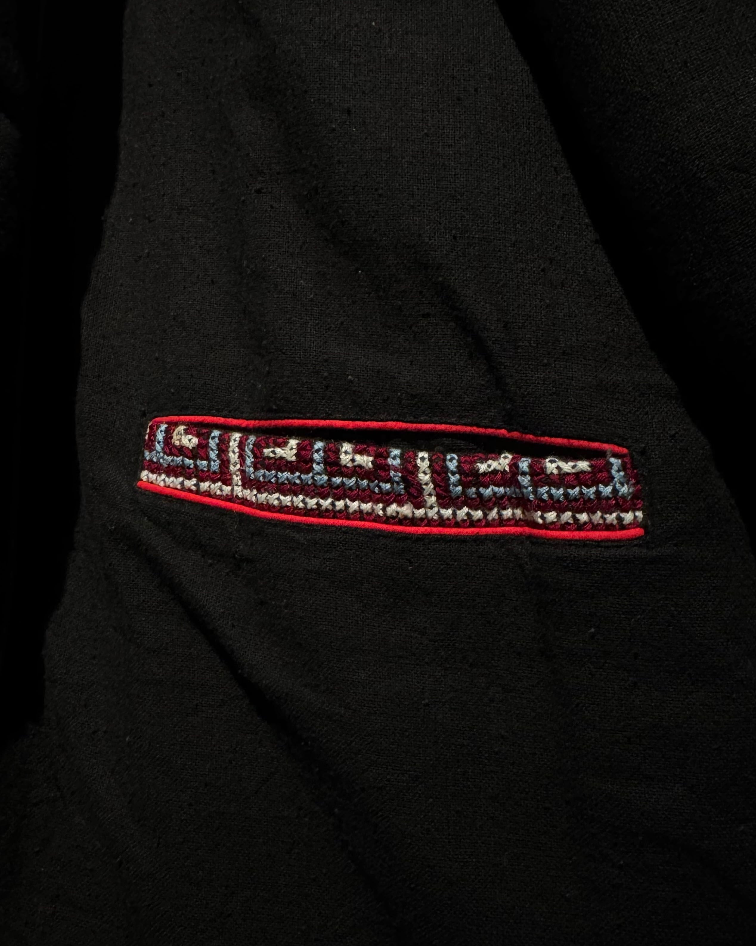 一転して裏面は、ガシッとしたブラックのファブリックをベースに、背面やポケット部分へピンポイントで刺繍を配置することで、シンプルながらもしっかりと民族的ムードを感じさせる仕上がりに。