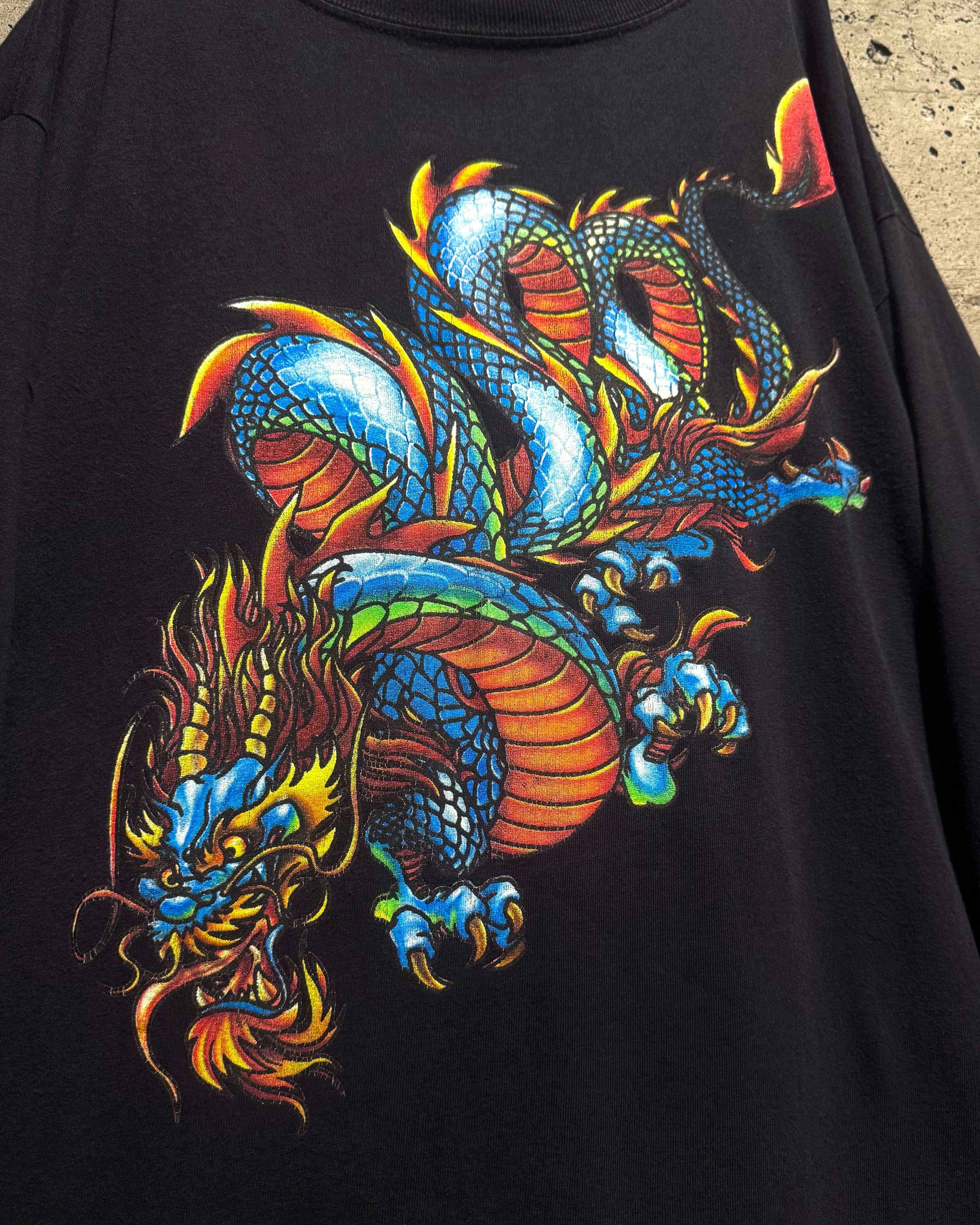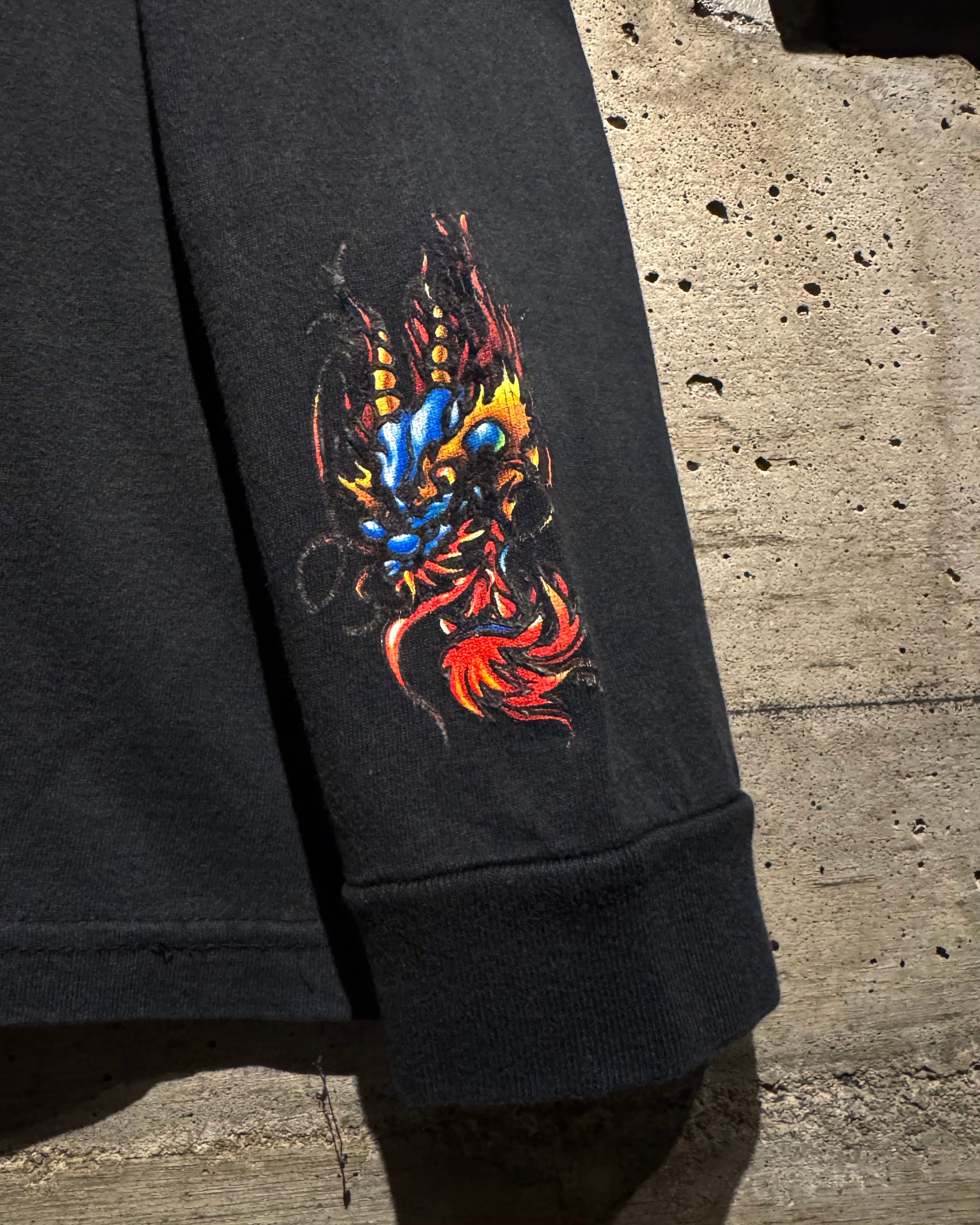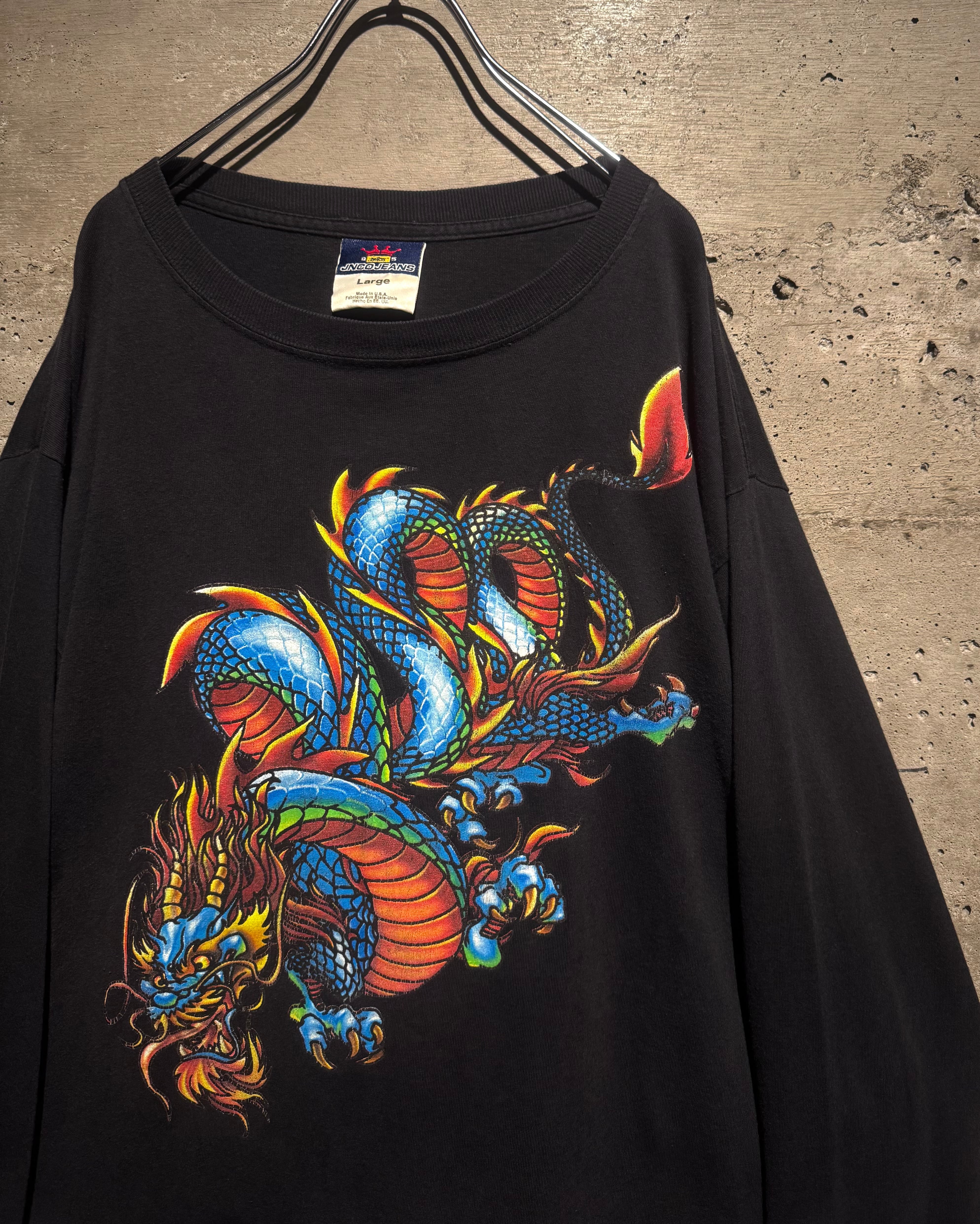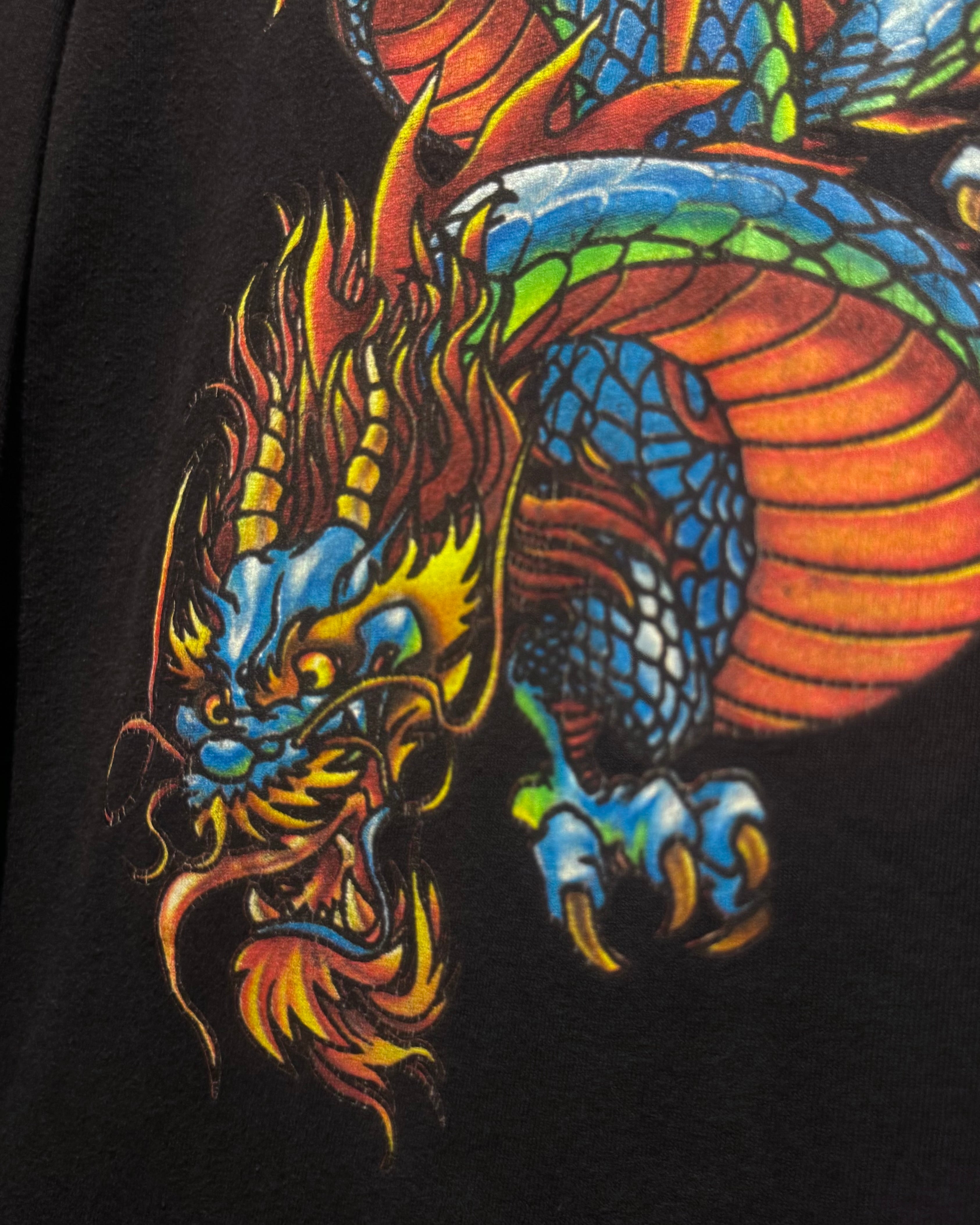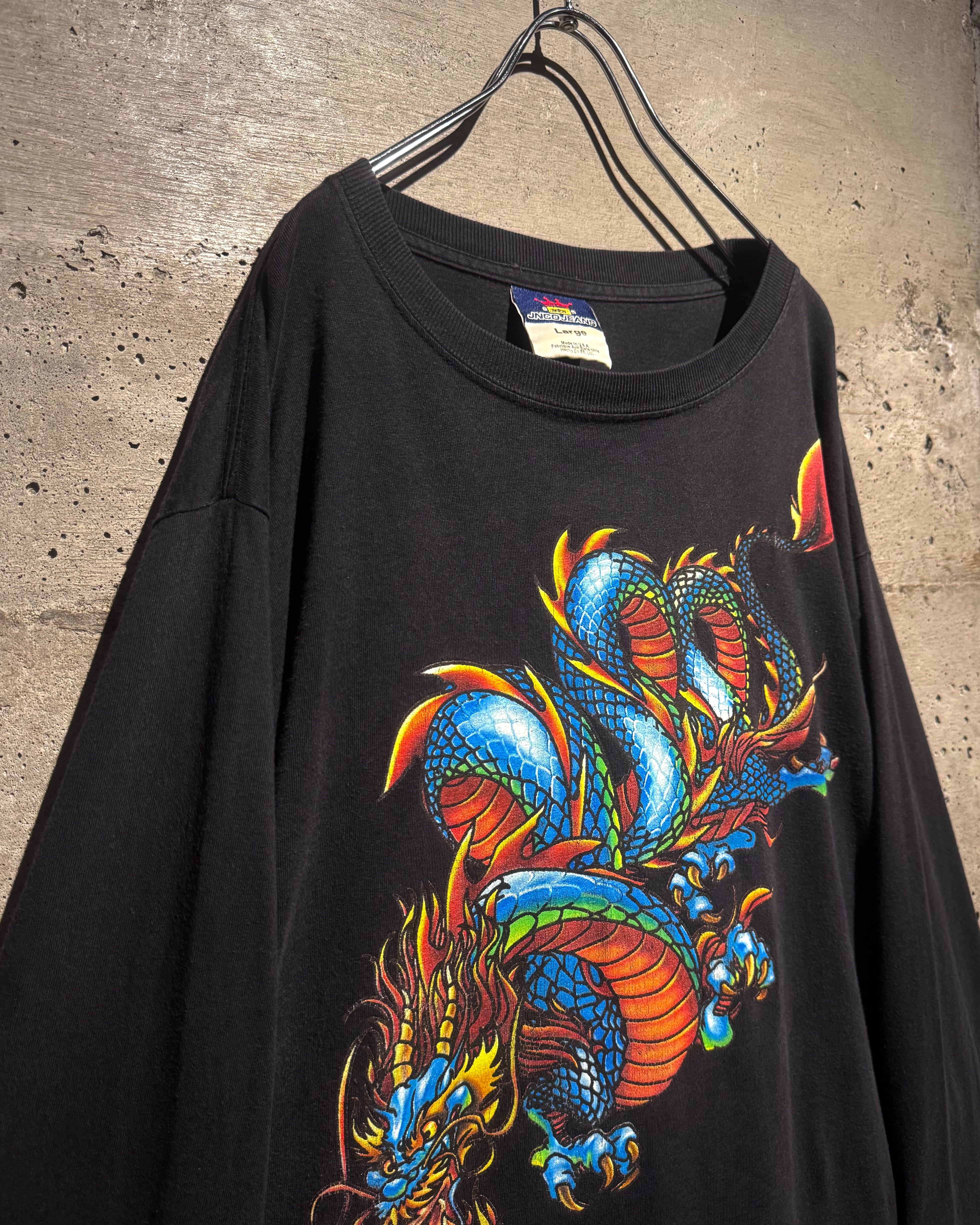 程よくフェードしたブラックのボディをベースに、迫力のあるドラゴンをフロントに載せたUSA製の1着。