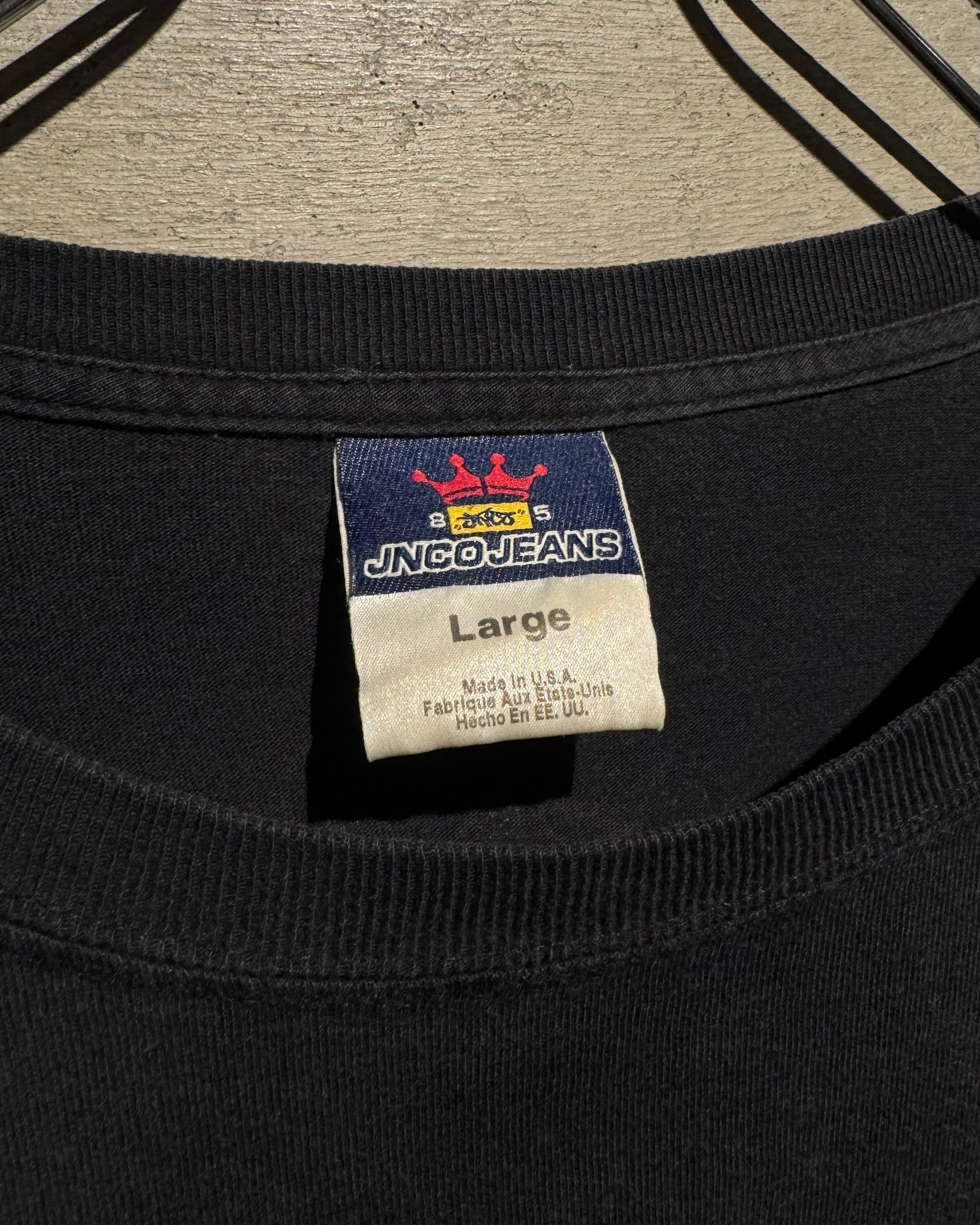 1985年に2人のフランス人が設立し、1990年代ストリートブランドの一角として名を馳せていた“JNCO”より、ストリートブランドらしい高いデザイン性を誇るロンTをご紹介いたします。