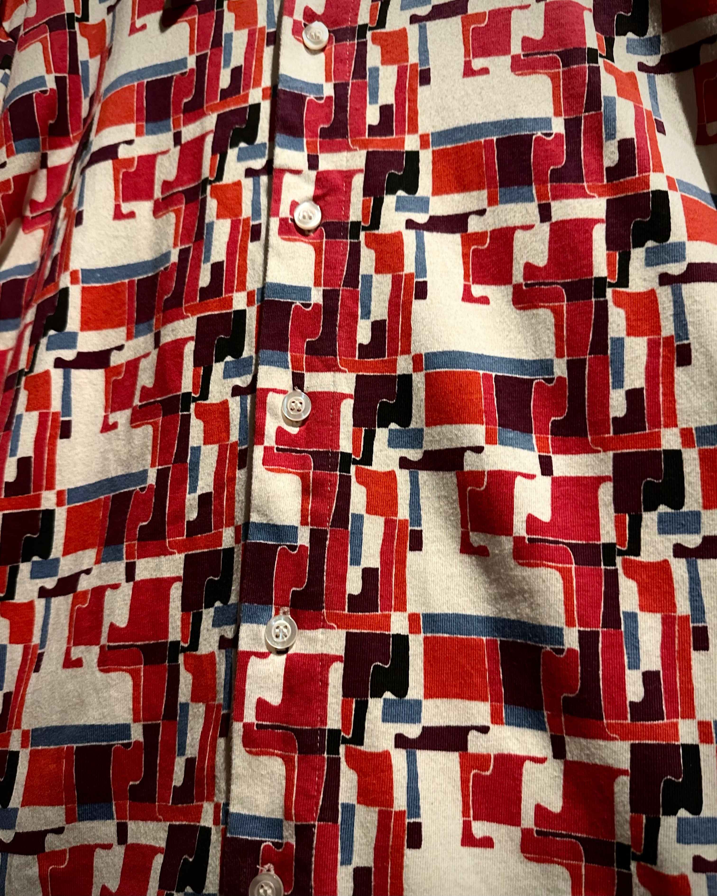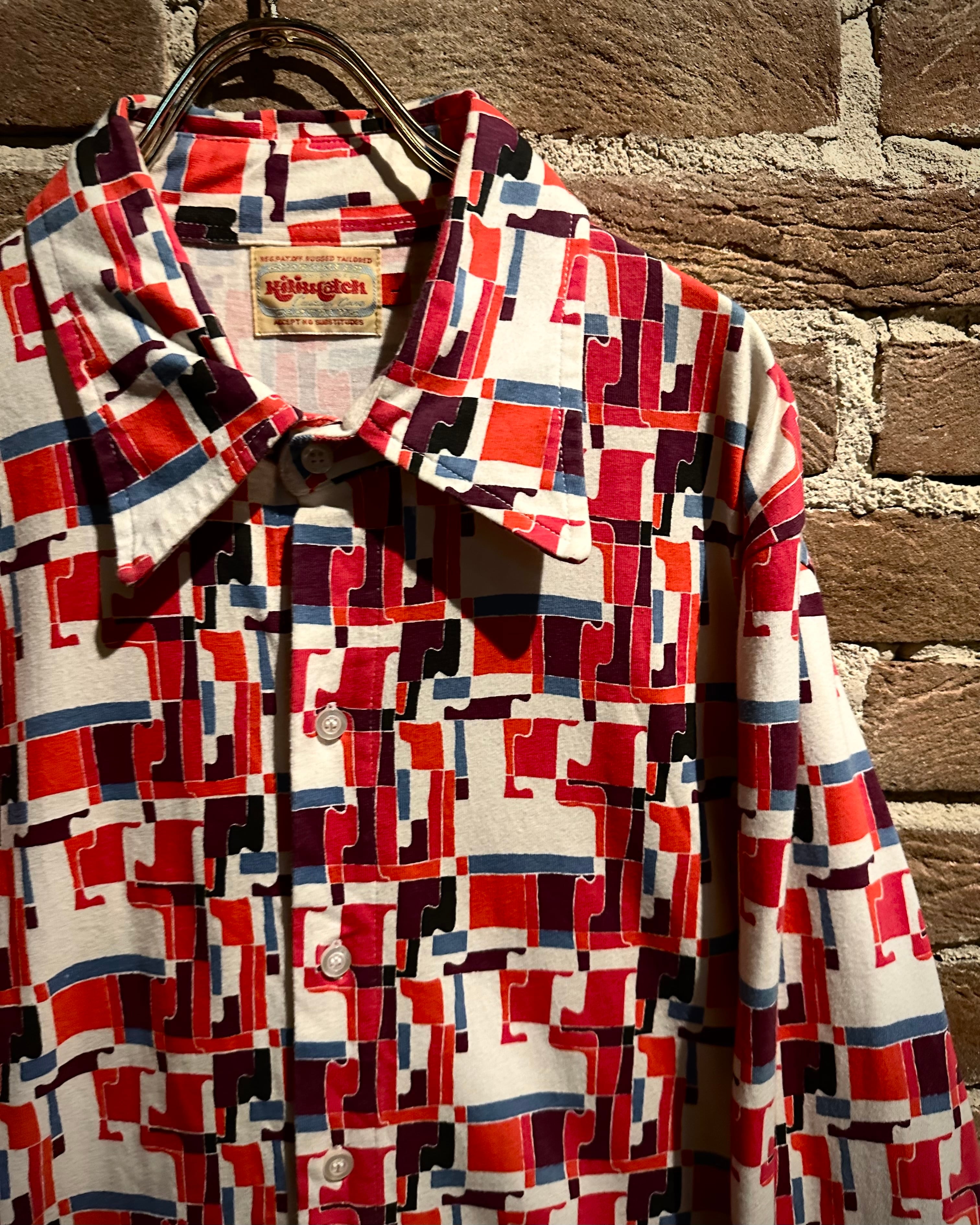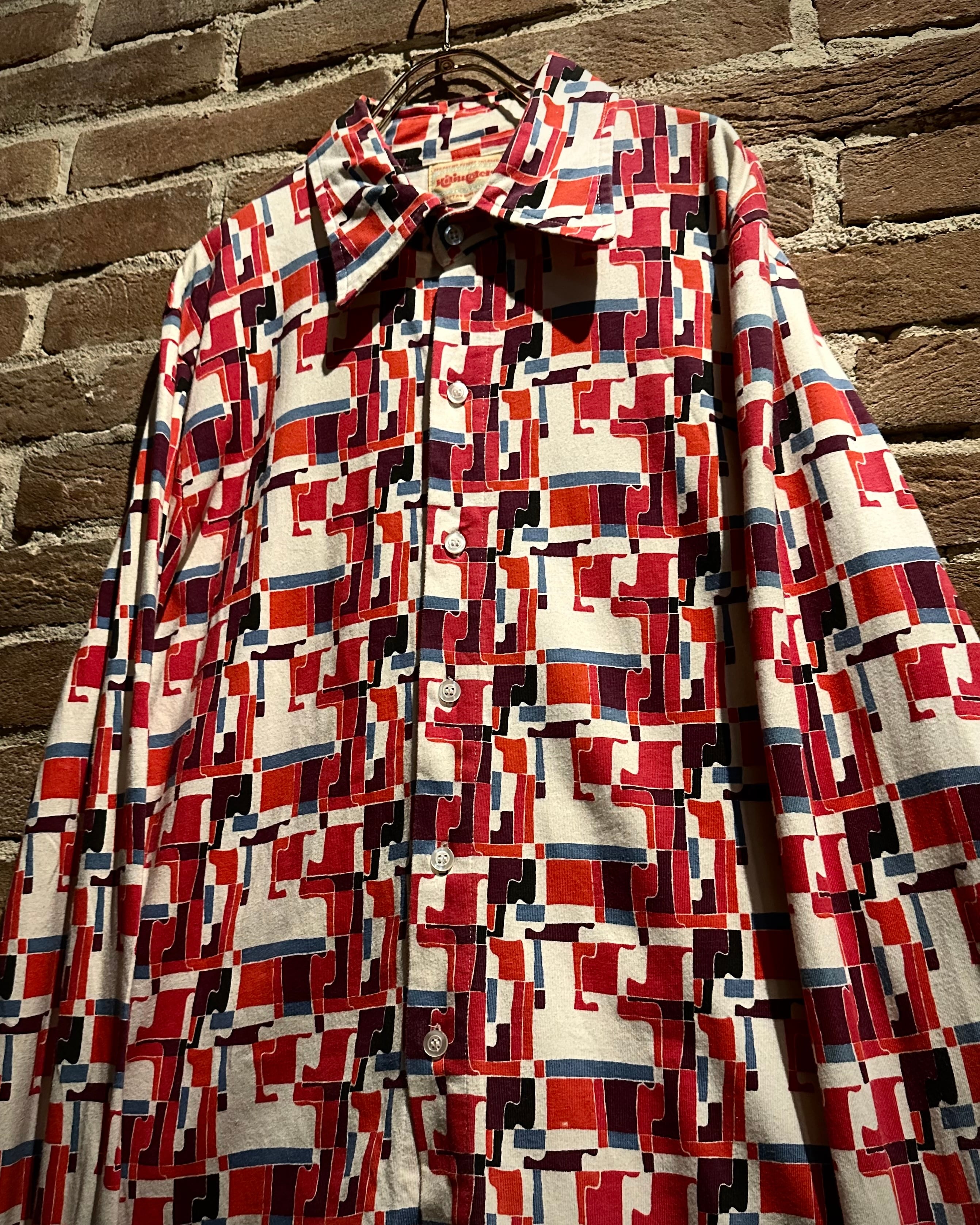 70年代らしいサイケデリックな空気感を纏った、総柄の長袖シャツをご紹介いたします。
