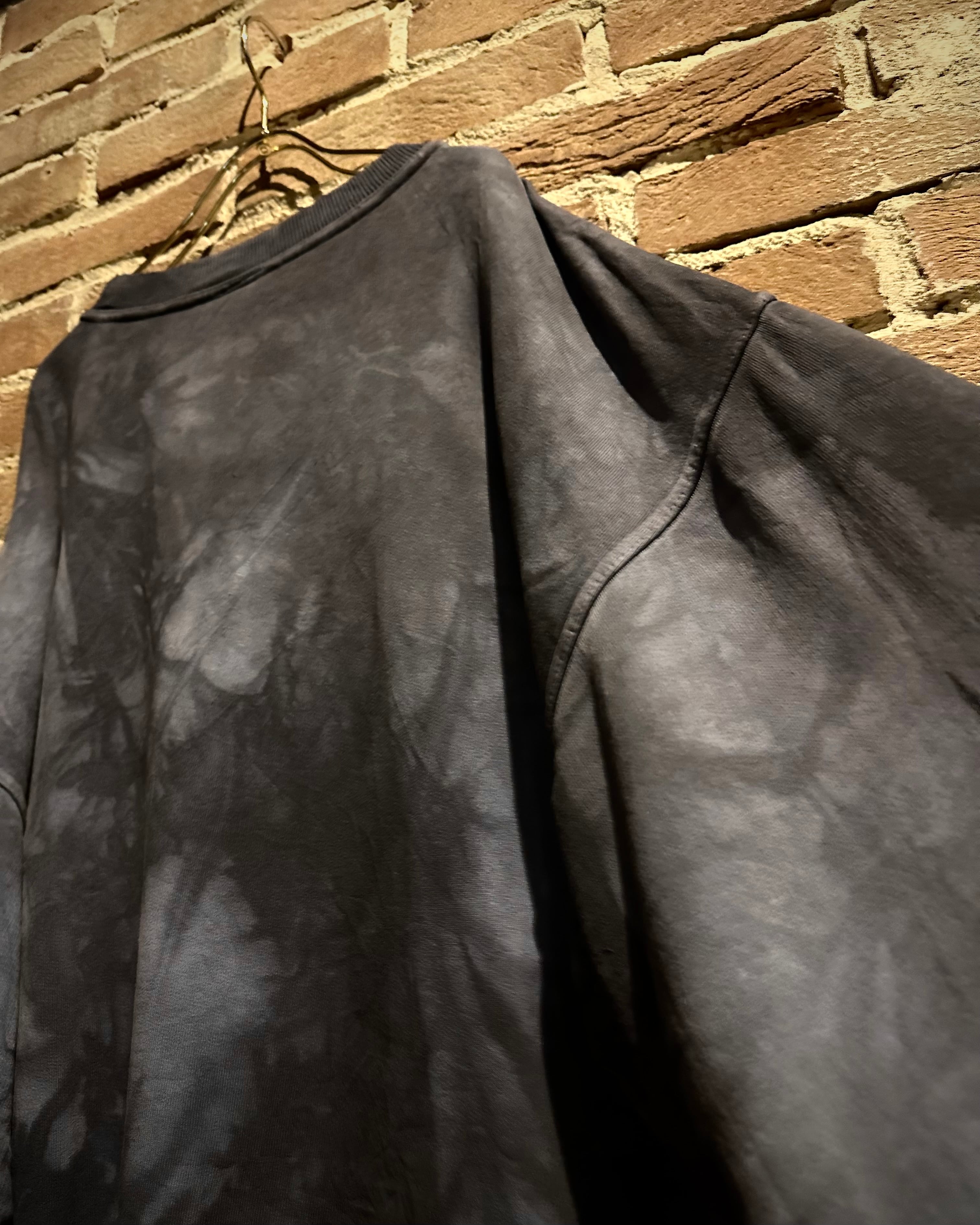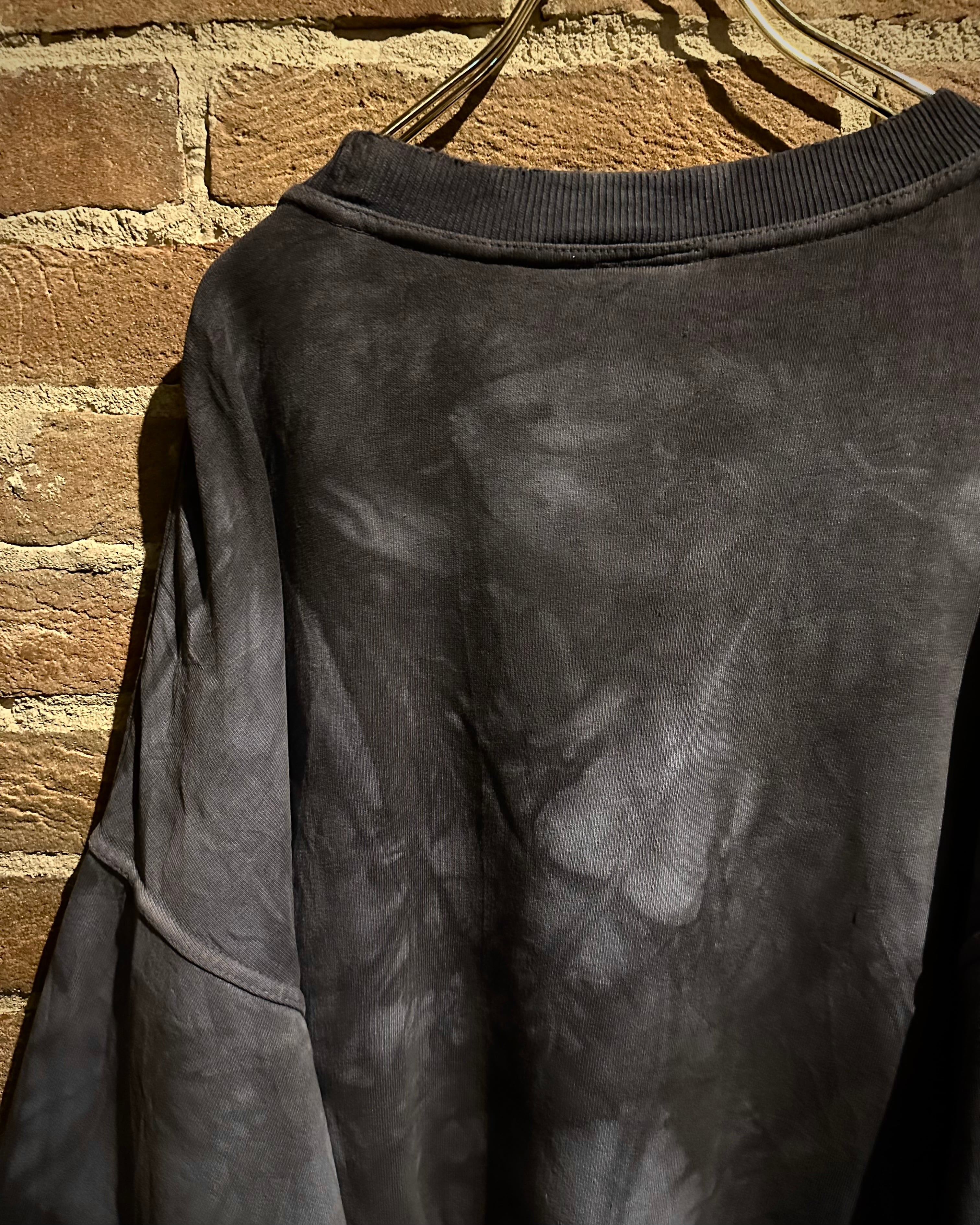 全体にタイダイ染めを施し、場所によって異なるムラ感によって奥行きのある表情に仕上がった1着。