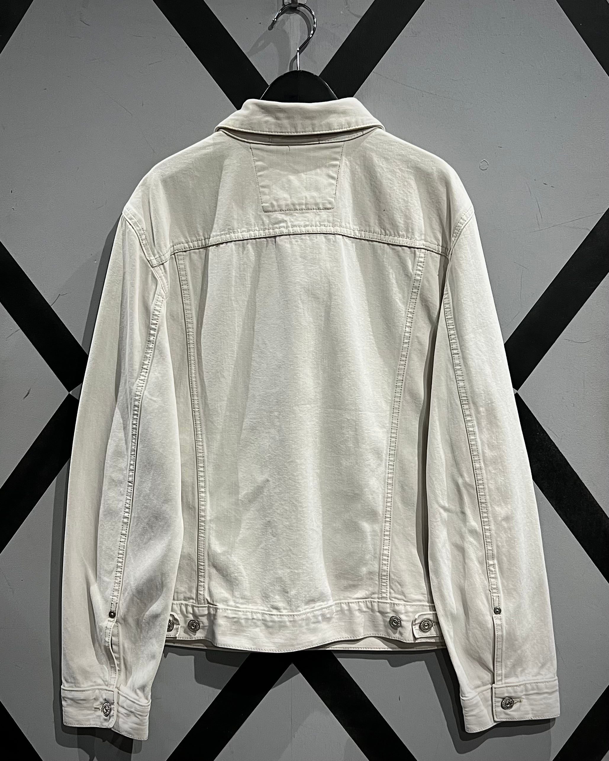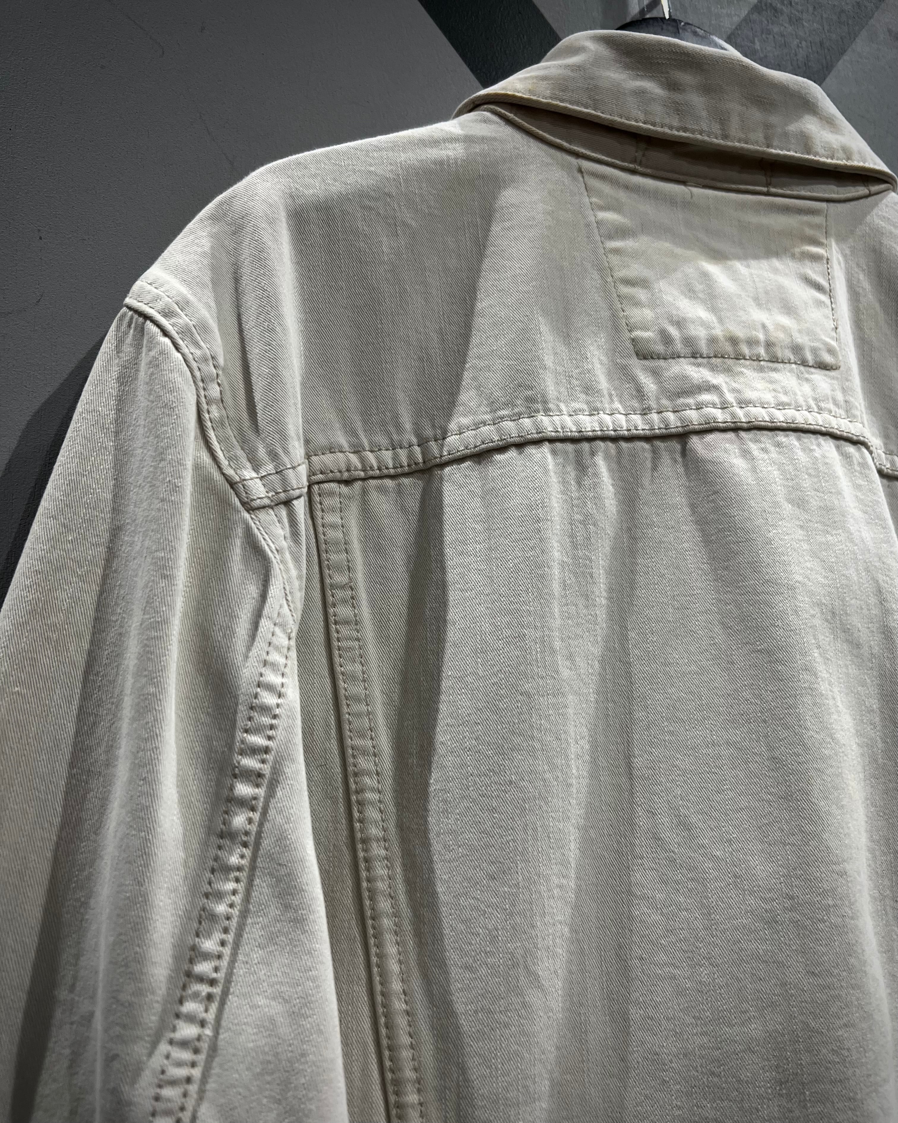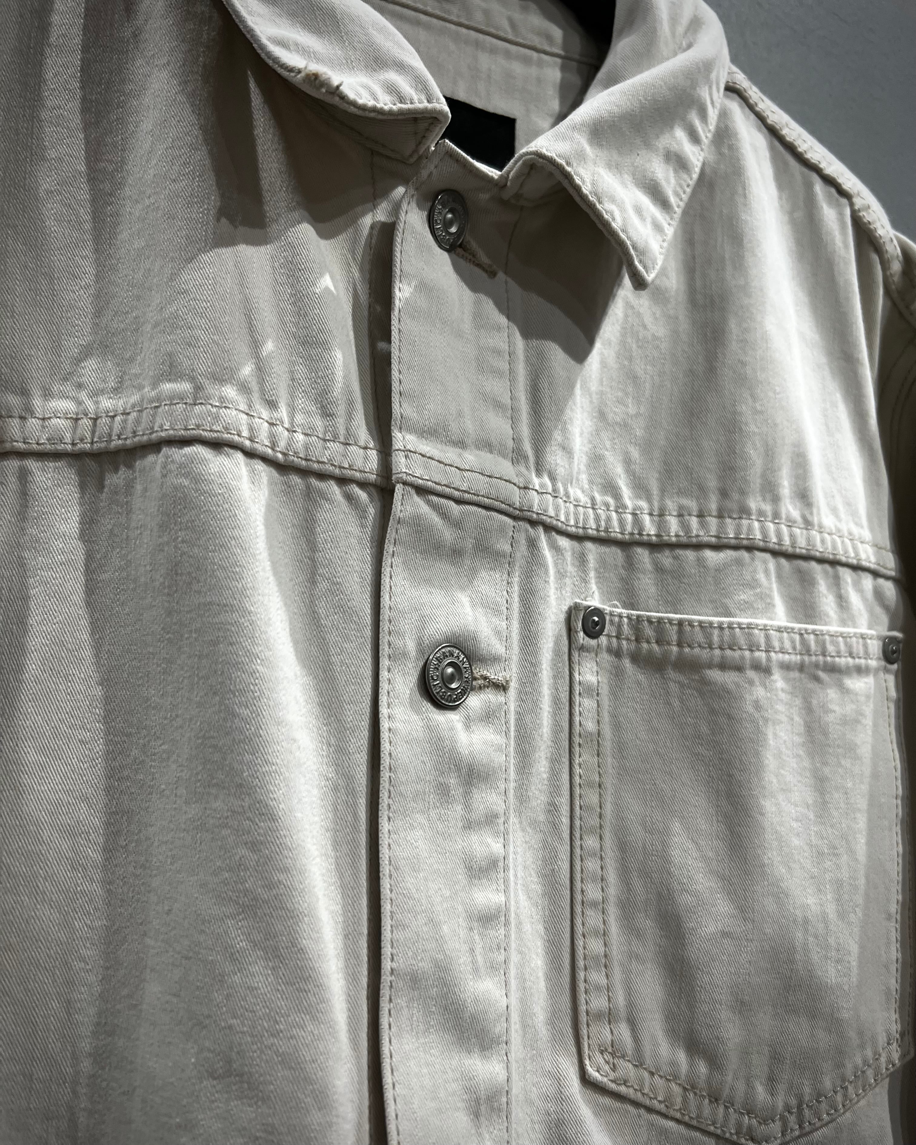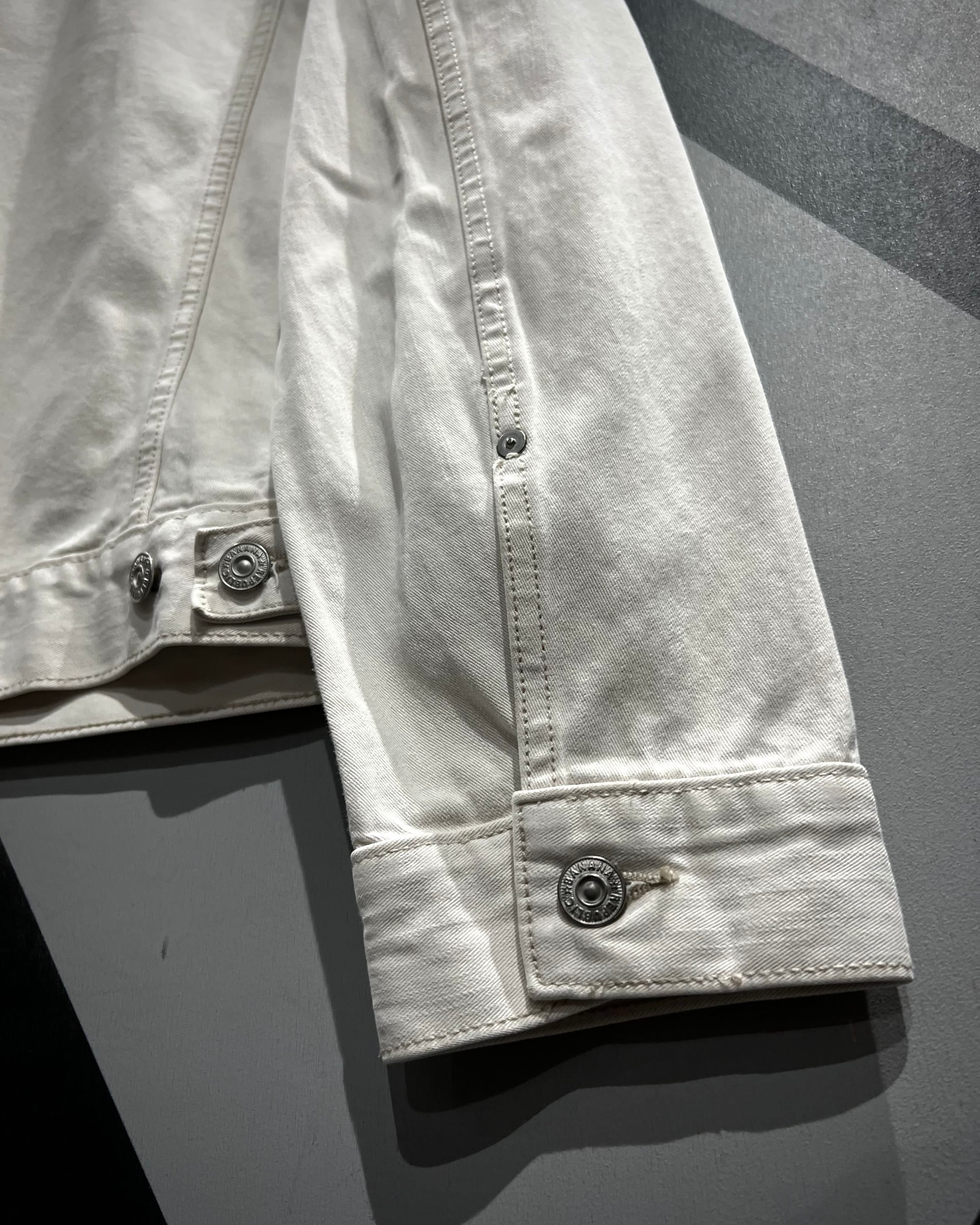 柔らかく上品なホワイトカラーで仕上げられたデニムボディが印象的な1着。ヴィンテージや古着市場において、白物でここまで綺麗なコンディションを保った個体は非常に珍しく、クリーンで都会的なムードを感じさせてくれます。