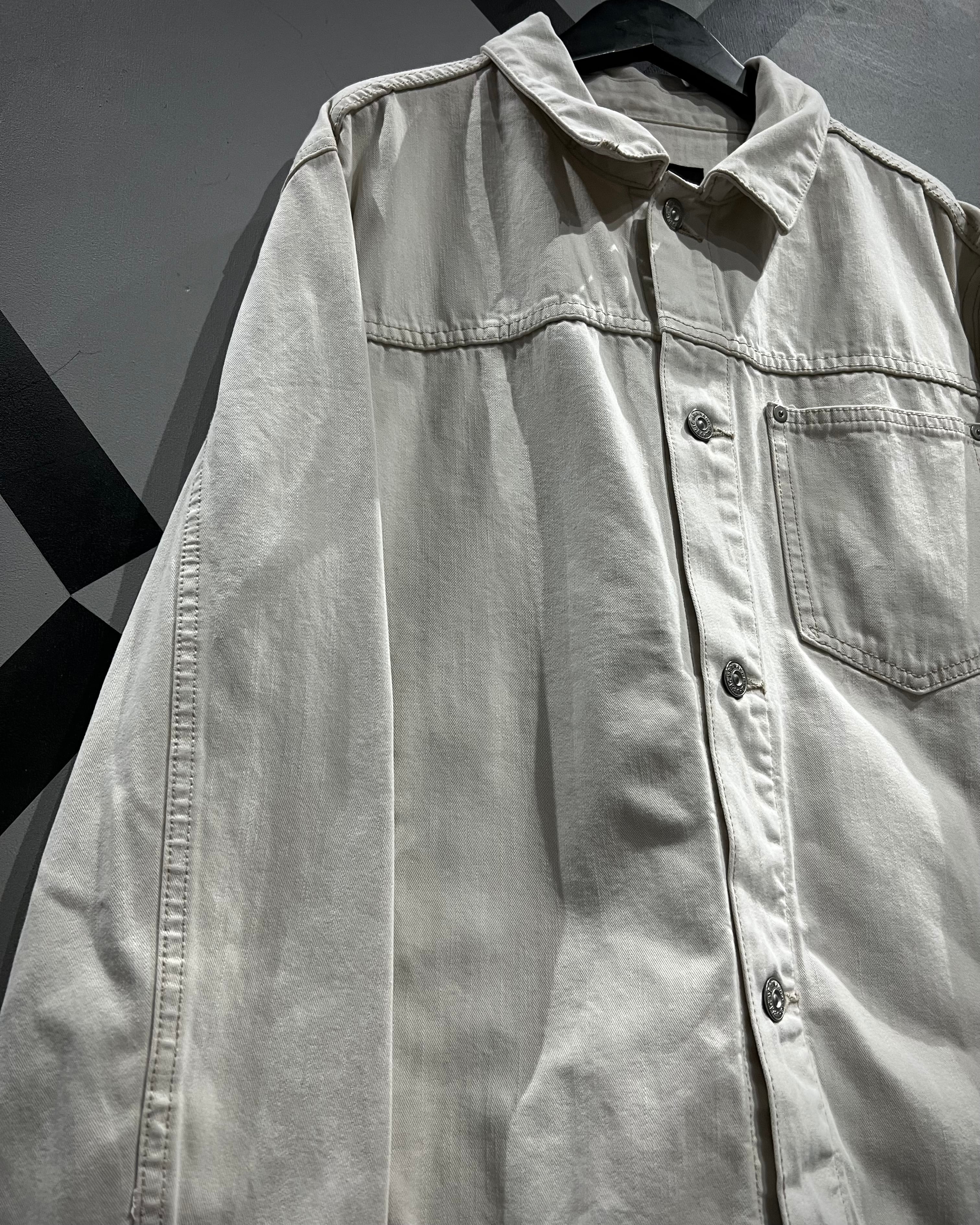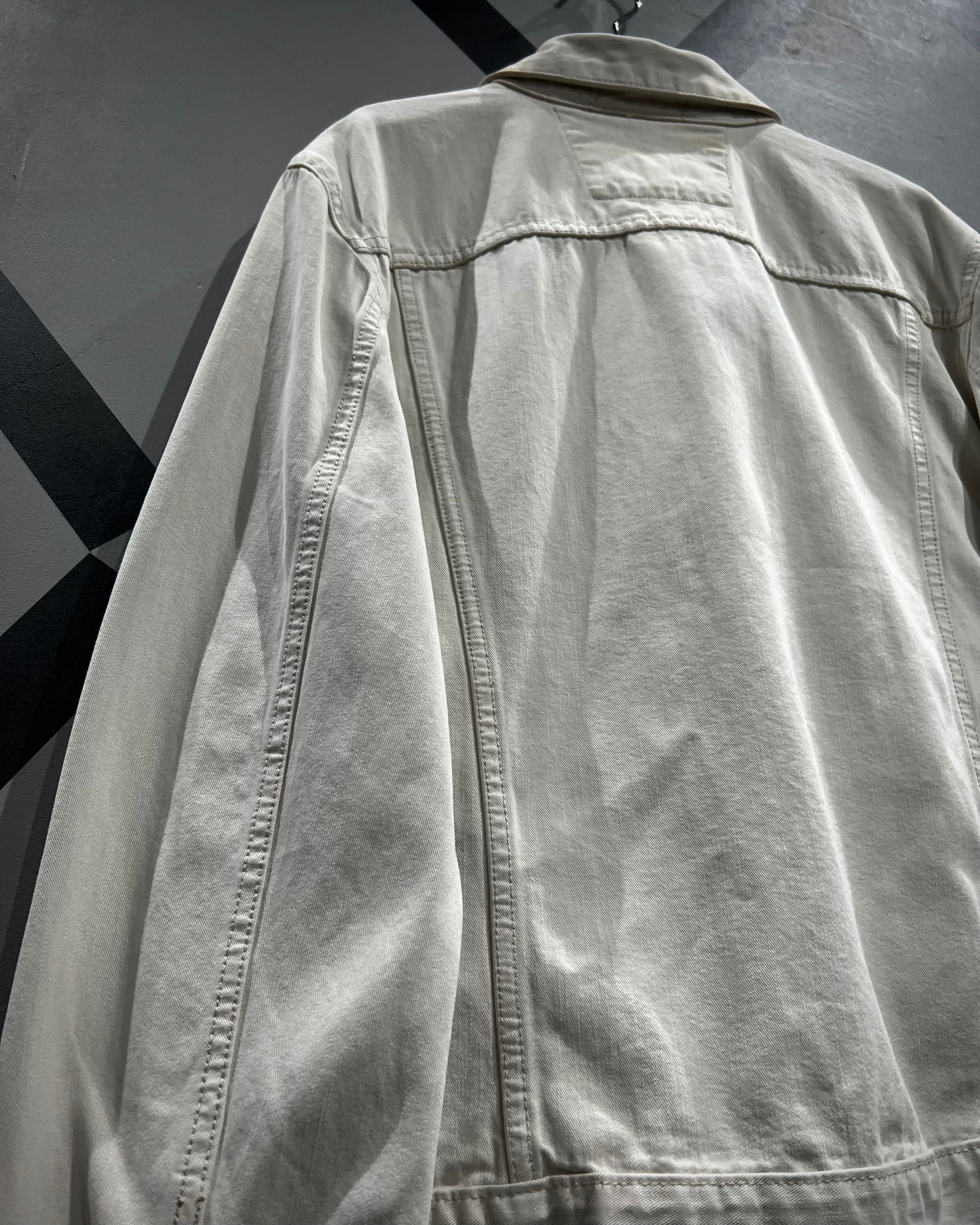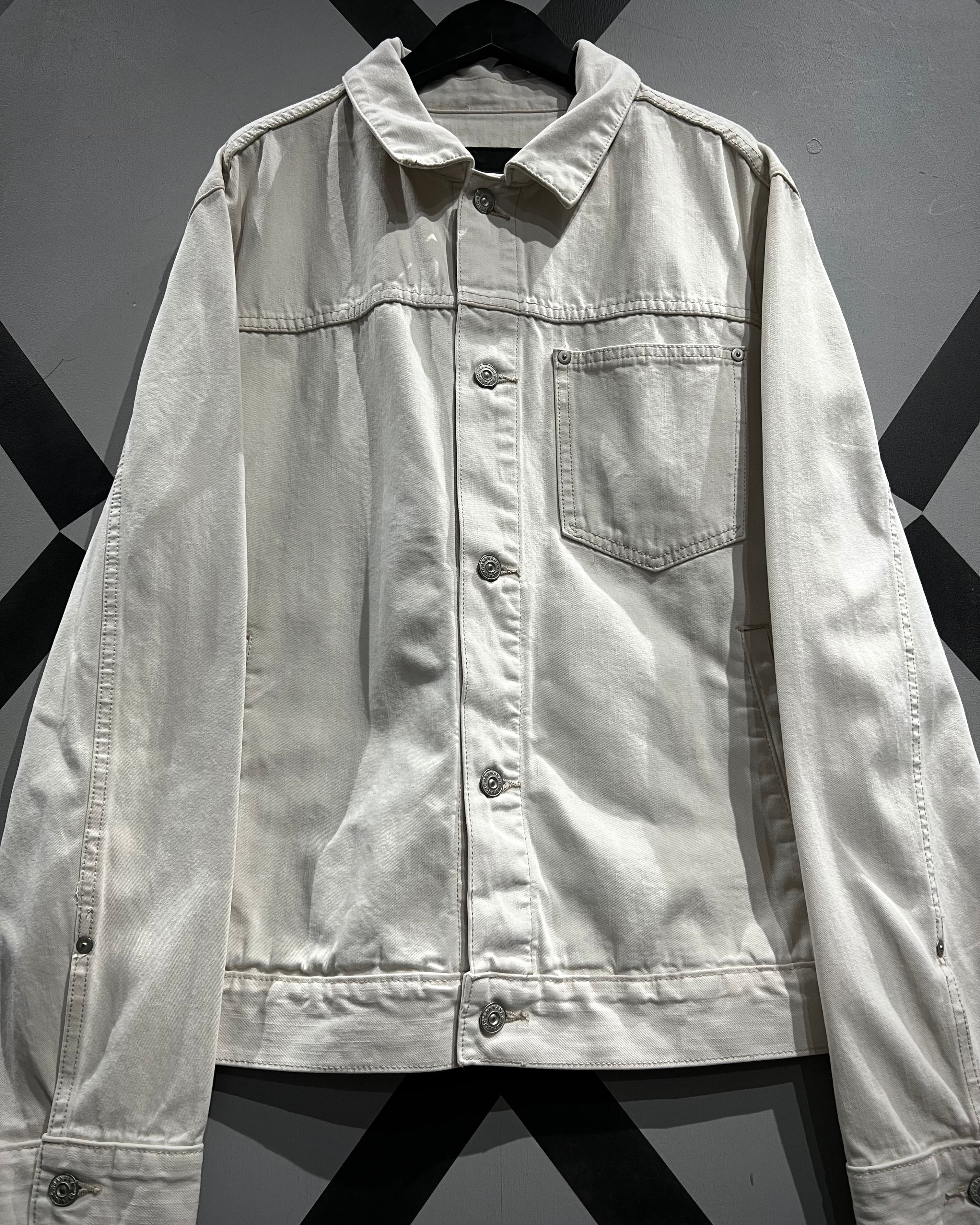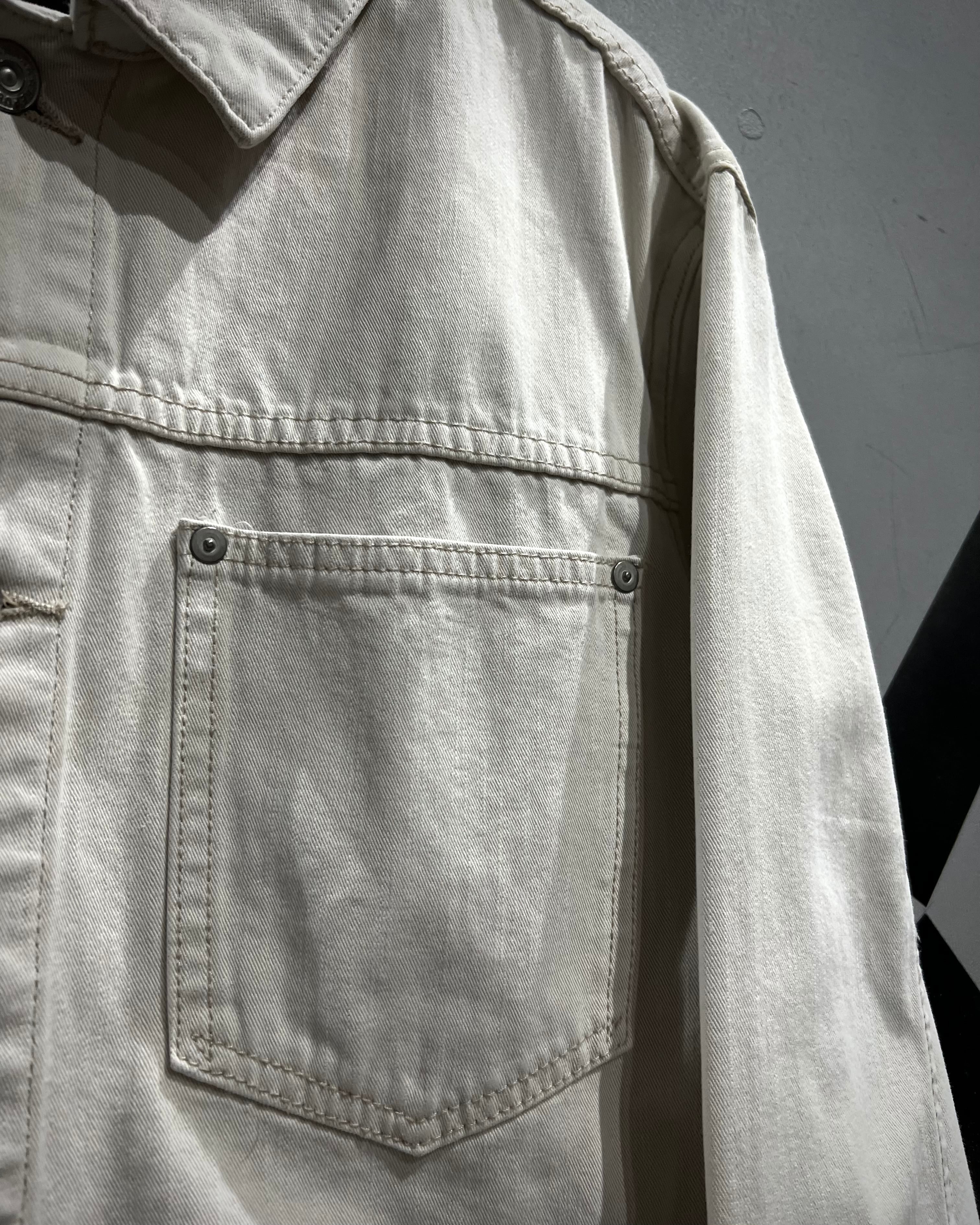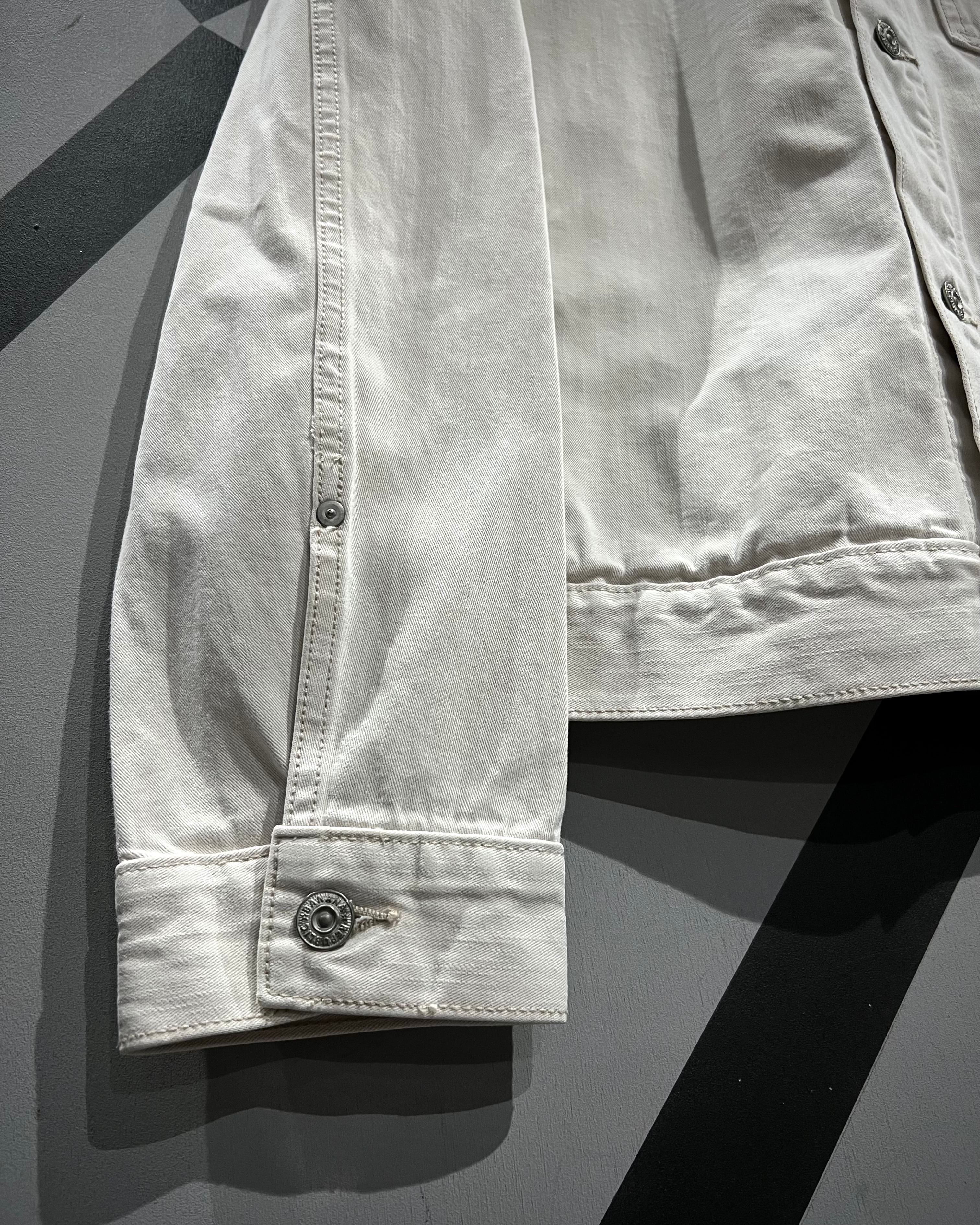 柔らかく上品なホワイトカラーで仕上げられたデニムボディが印象的な1着。ヴィンテージや古着市場において、白物でここまで綺麗なコンディションを保った個体は非常に珍しく、クリーンで都会的なムードを感じさせてくれます。