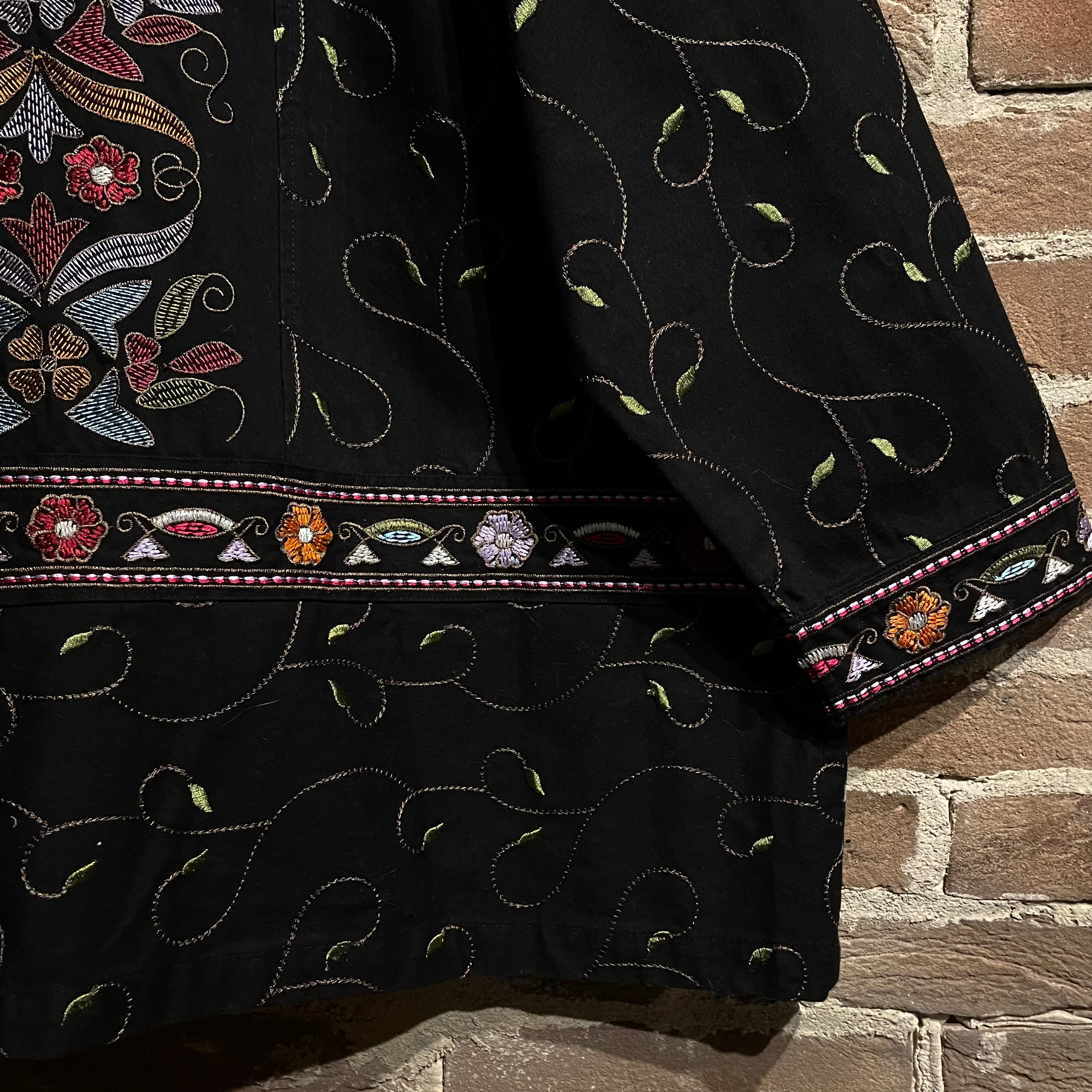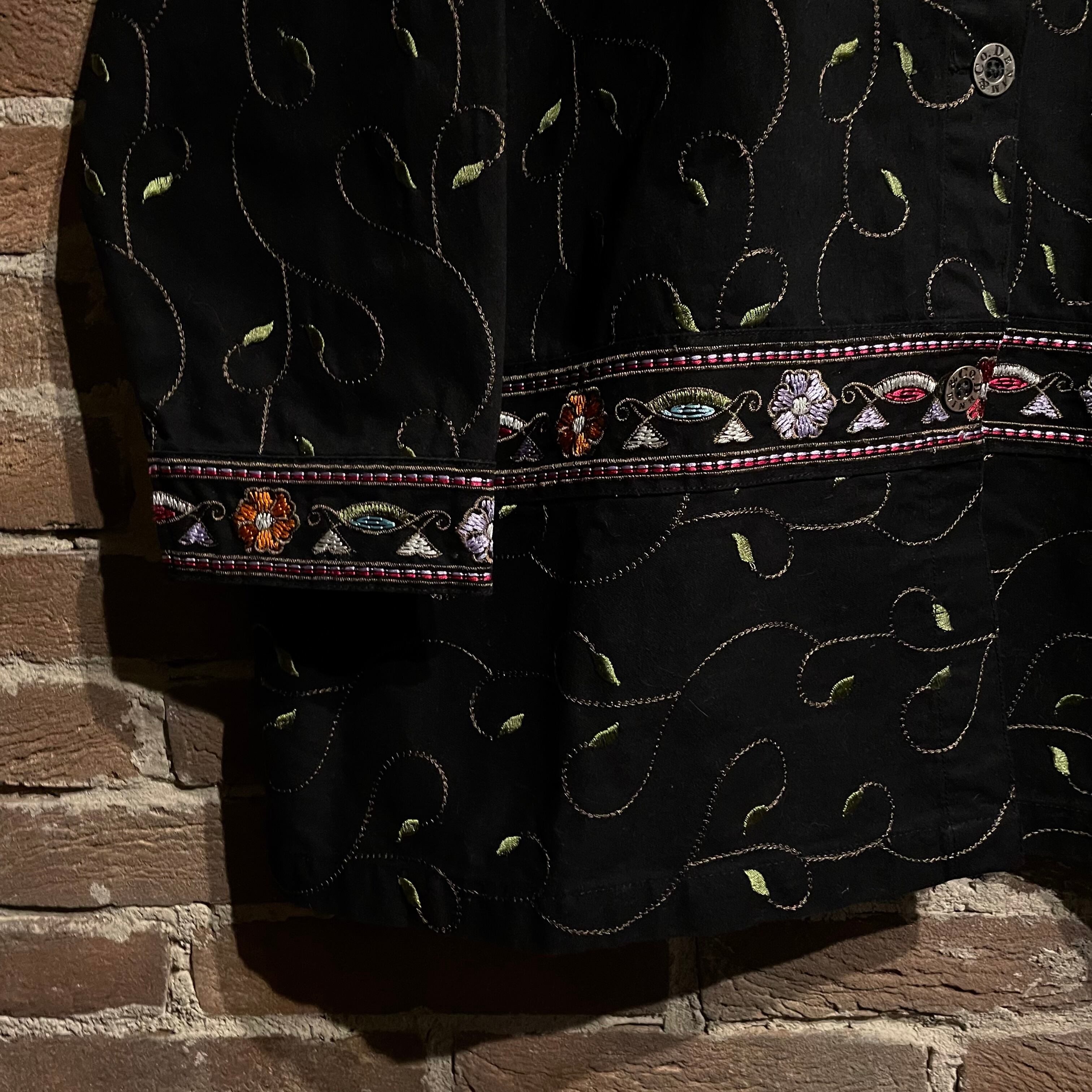 デニムのラフさ、花の上品さが掛け合わさり古着にはもちろん、モードにもハマりの良い1着です〜