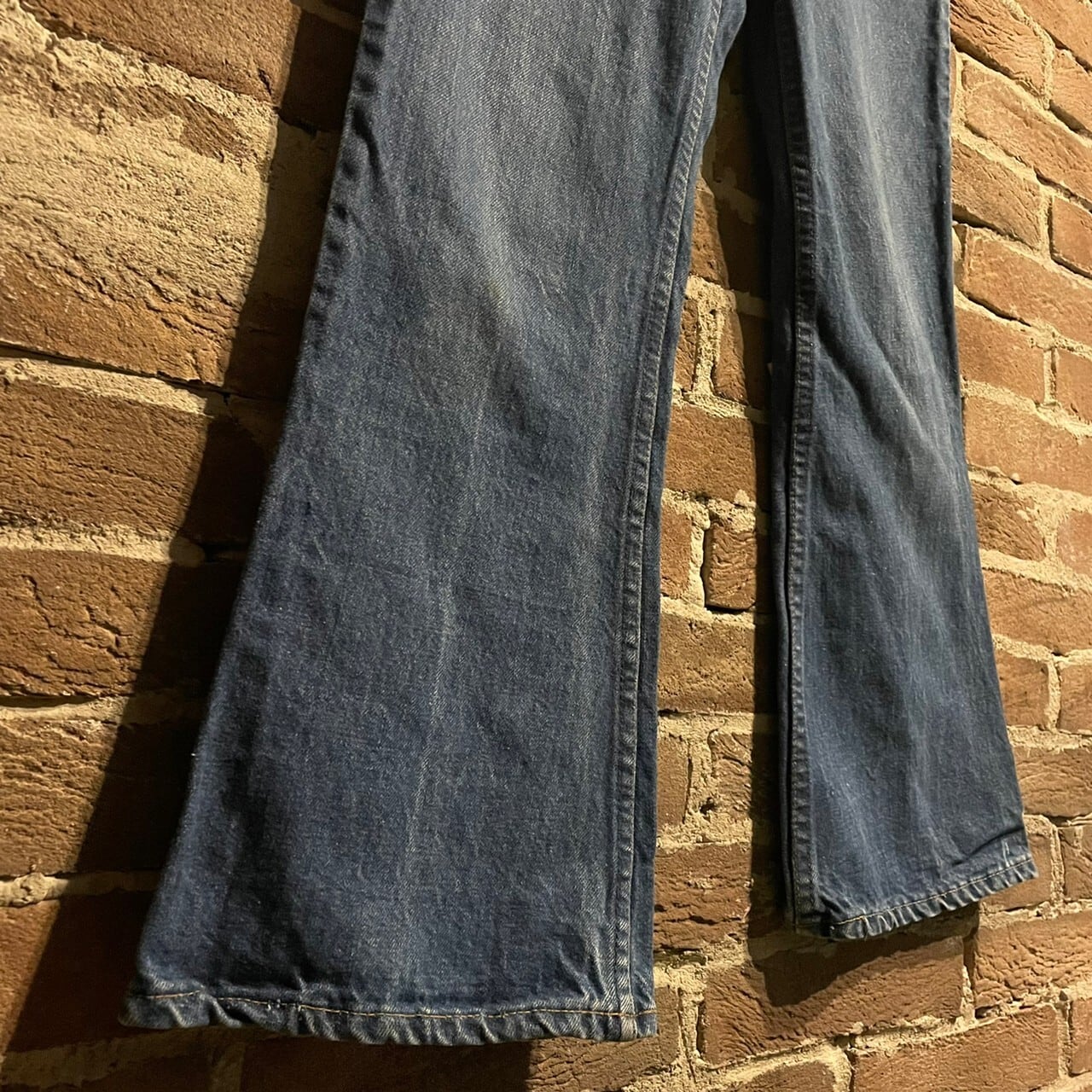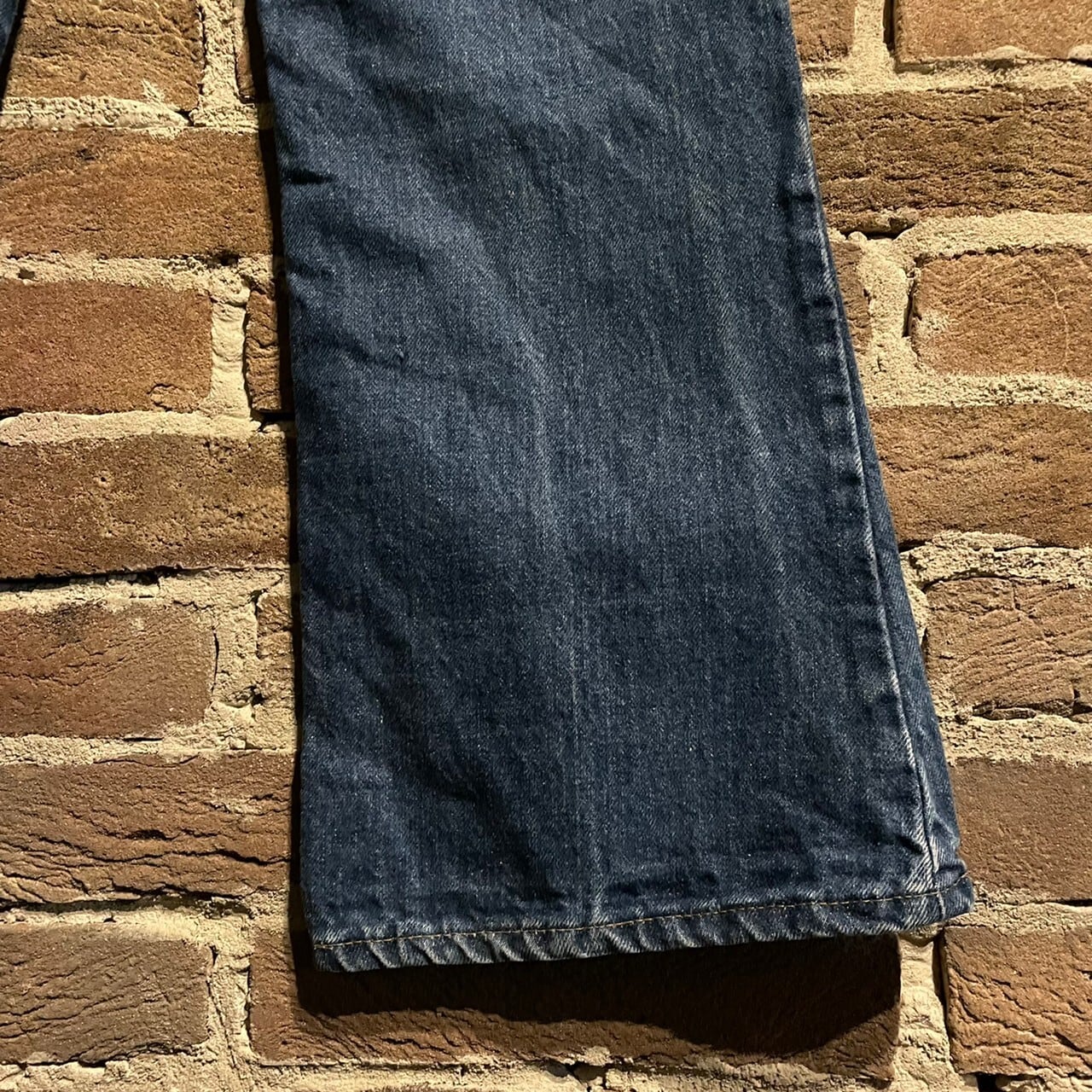 裾に向かって大きく広がる、まるで"ベル"の様なシルエットからベルボトムと名付けられた品番で、70年代のヒッピーカルチャーに親しまれたアイテムの1つ。