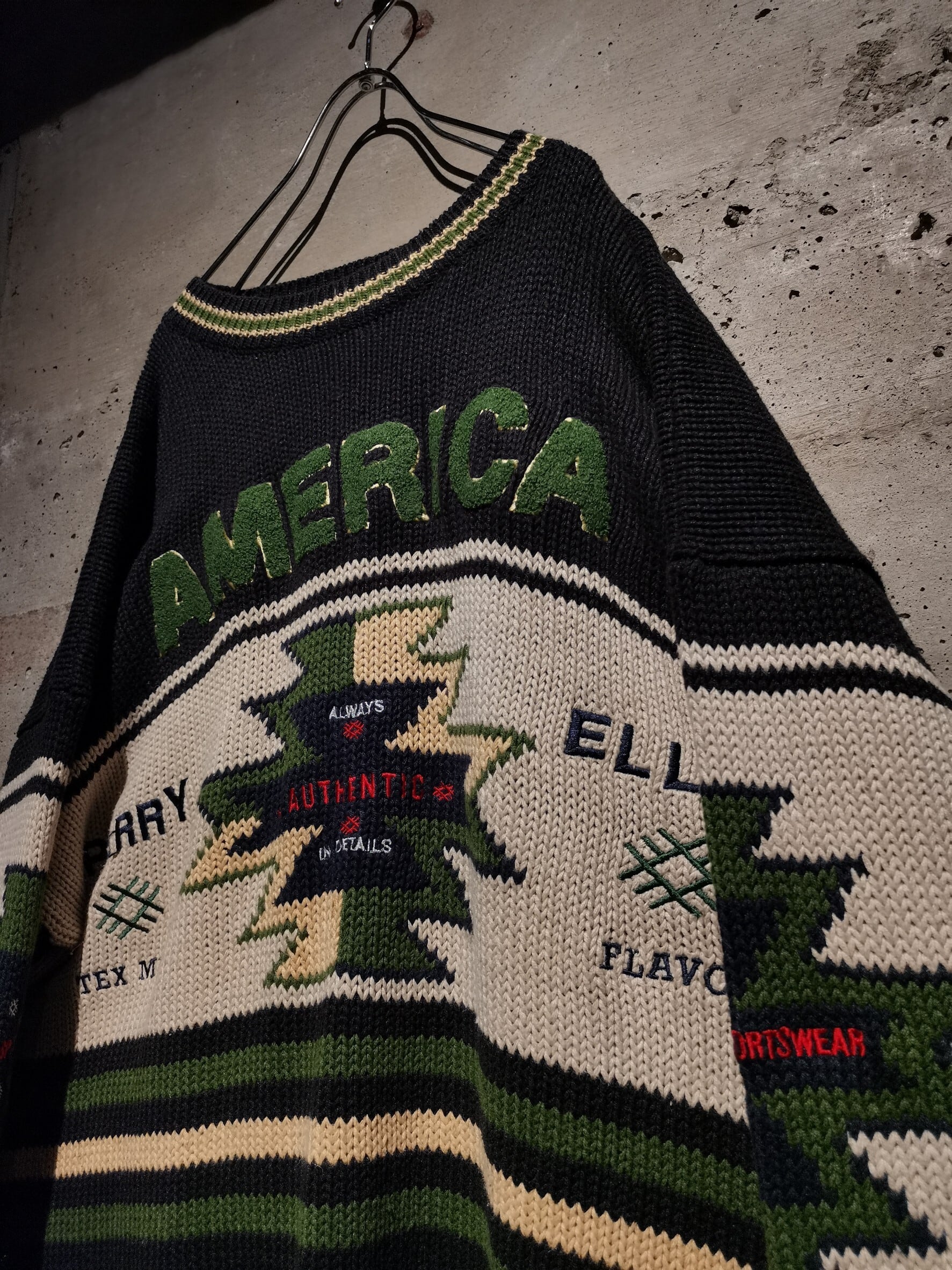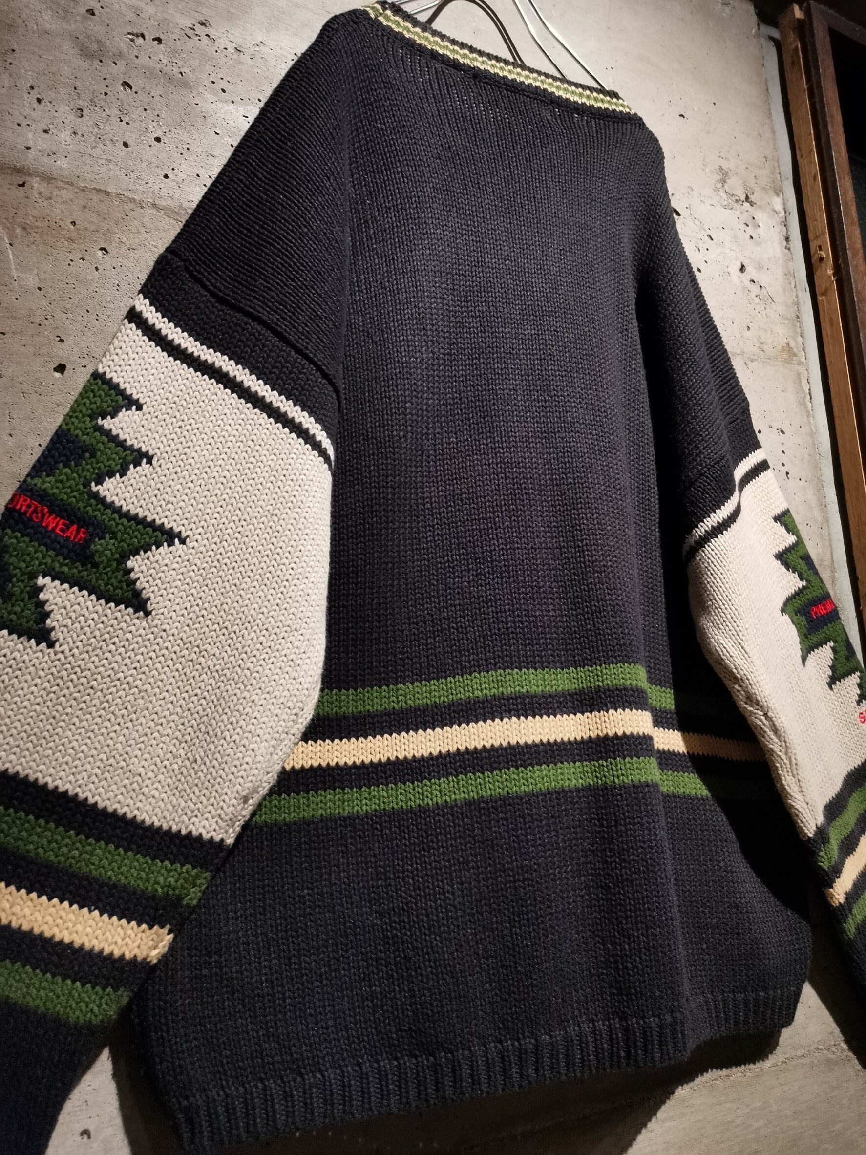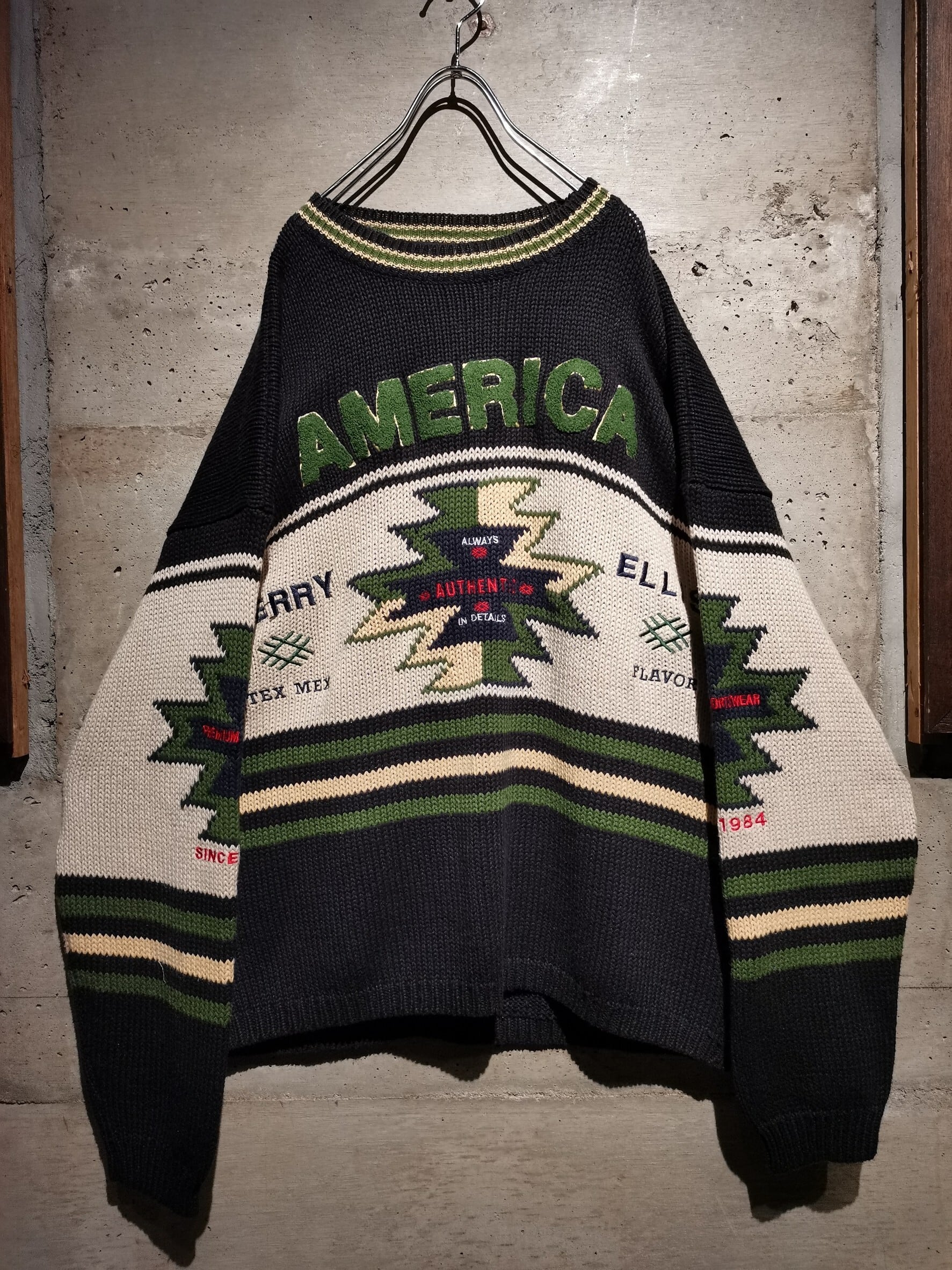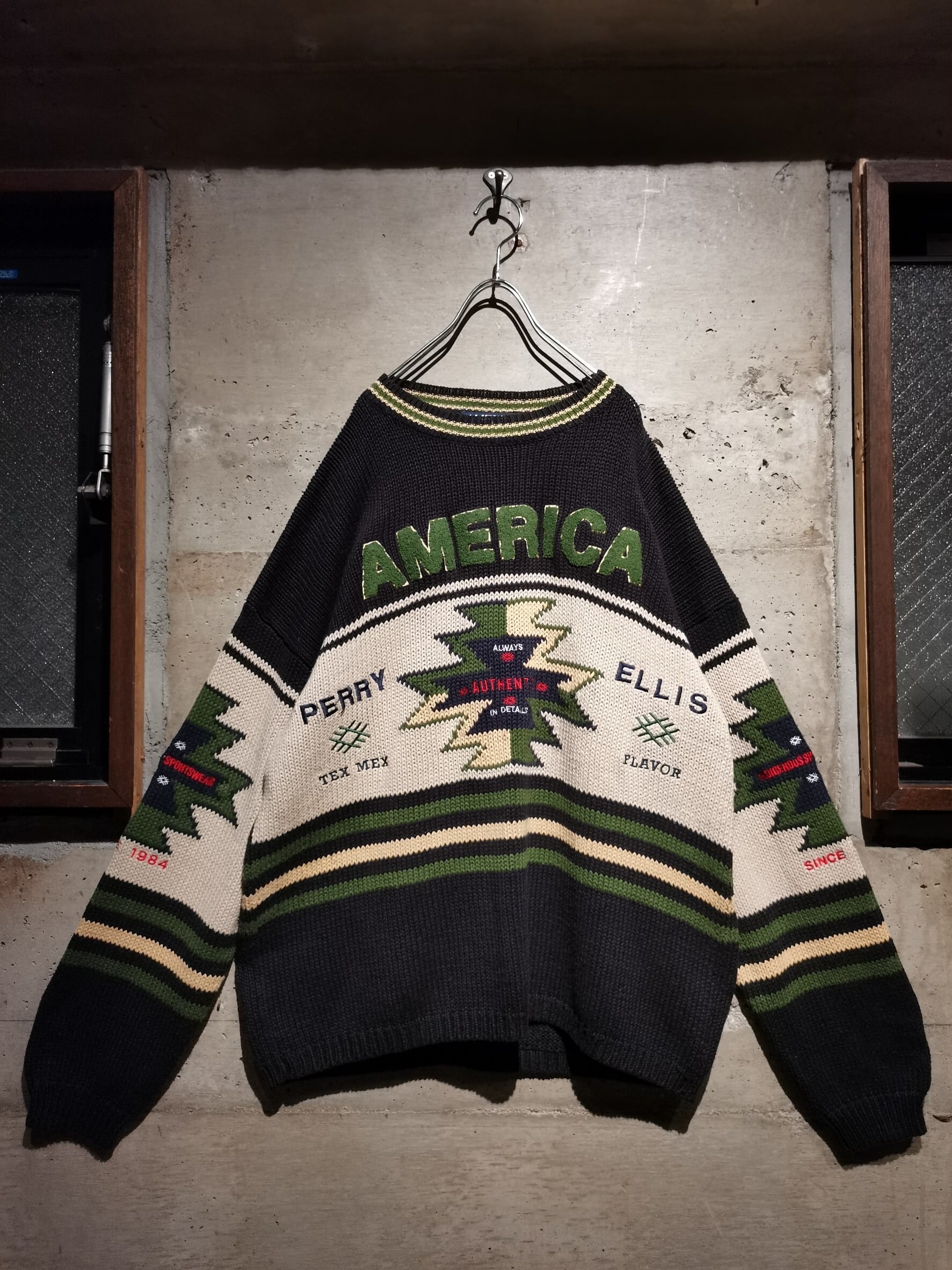 店頭でも展開を始め、毎年非常〜に大好評を頂いているニットより、ファッション業界の最前線で活躍を見せるマークジェイコブスやトムフォードが在籍していたことでも知られるブランド"PERRY ELLIS"の1着をご紹介。