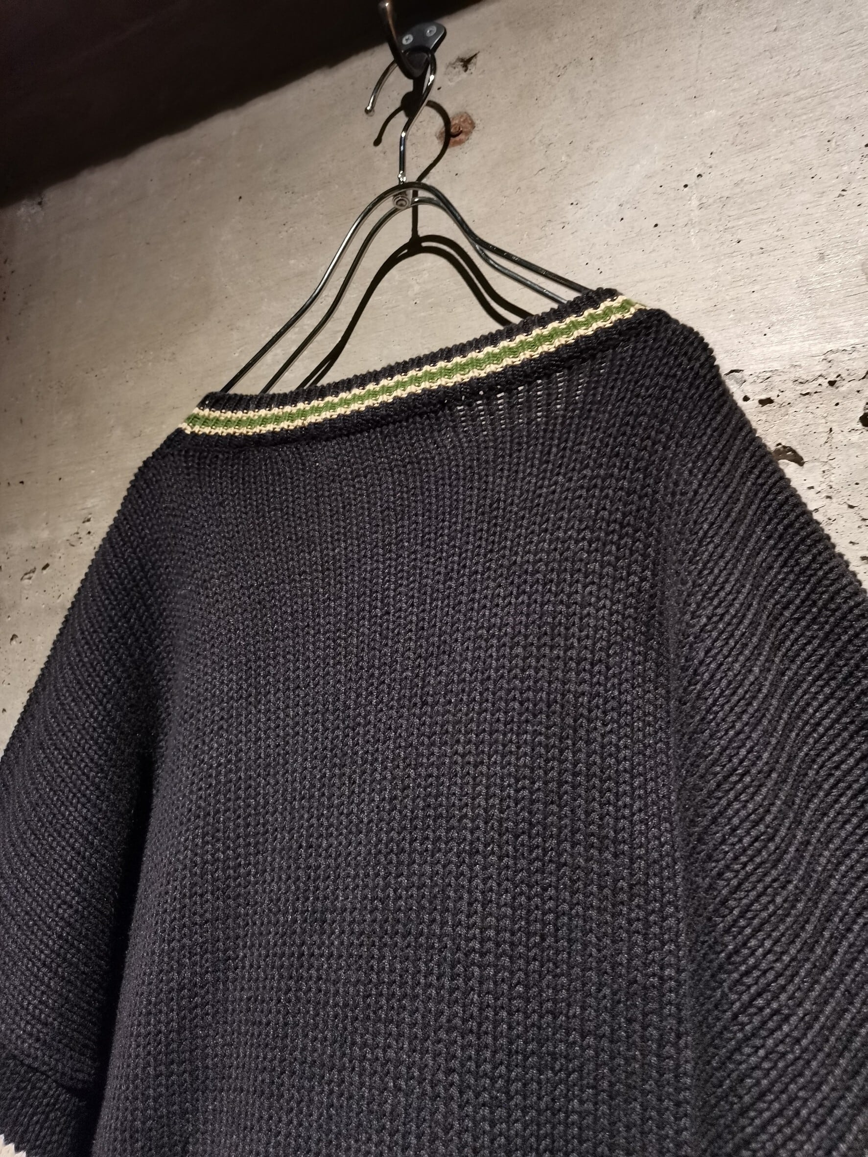 ラミー×コットンの素材で通気性も良く、秋春は一枚で洒落確定。冬口には、コートや他アウターの下から覗かせたアクセント使いも非常に美しいかと。