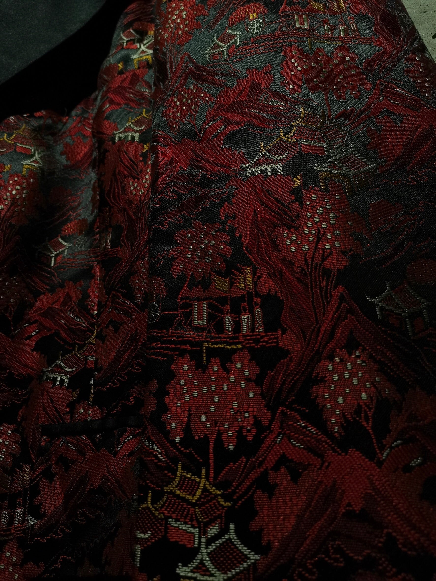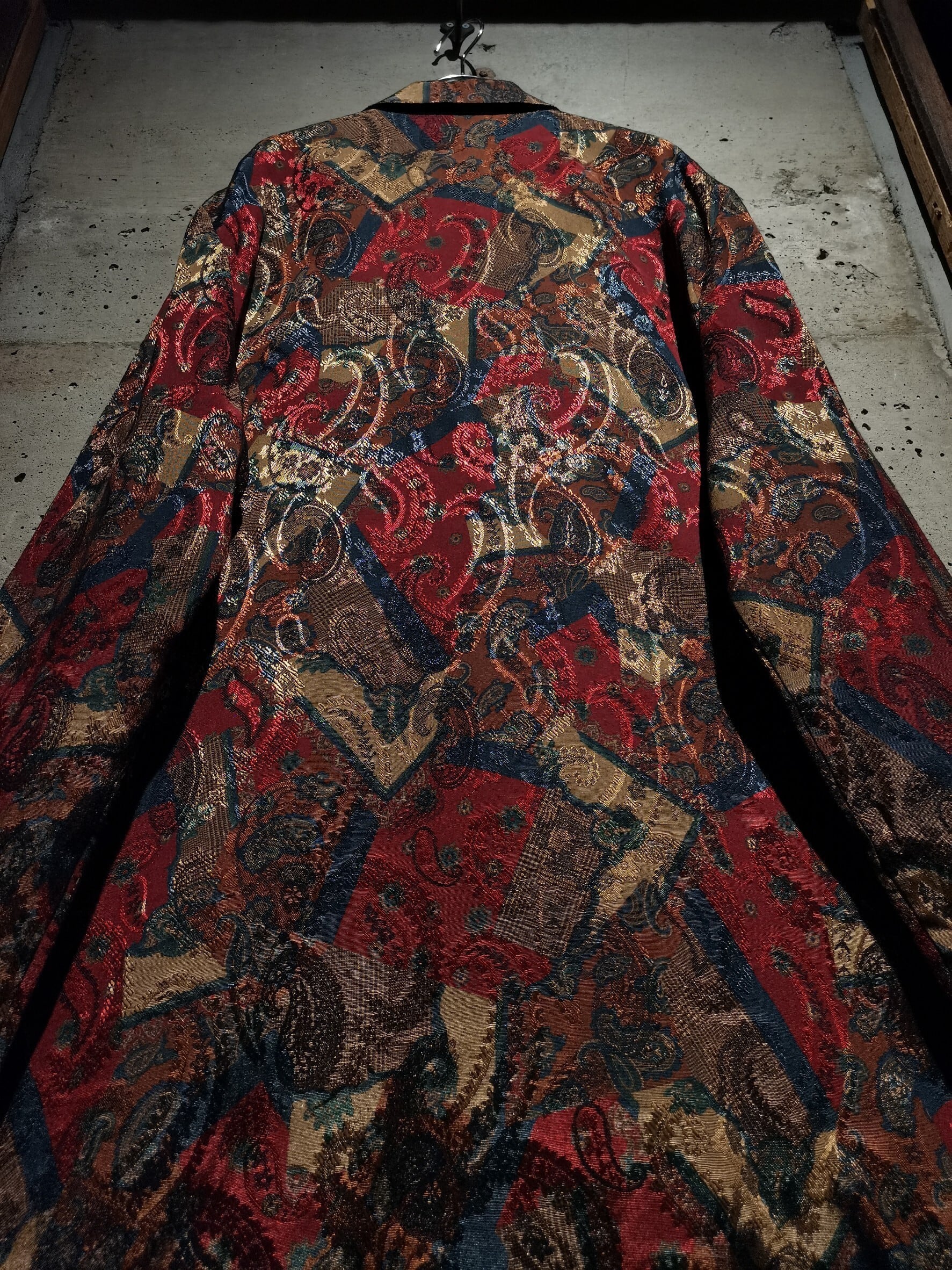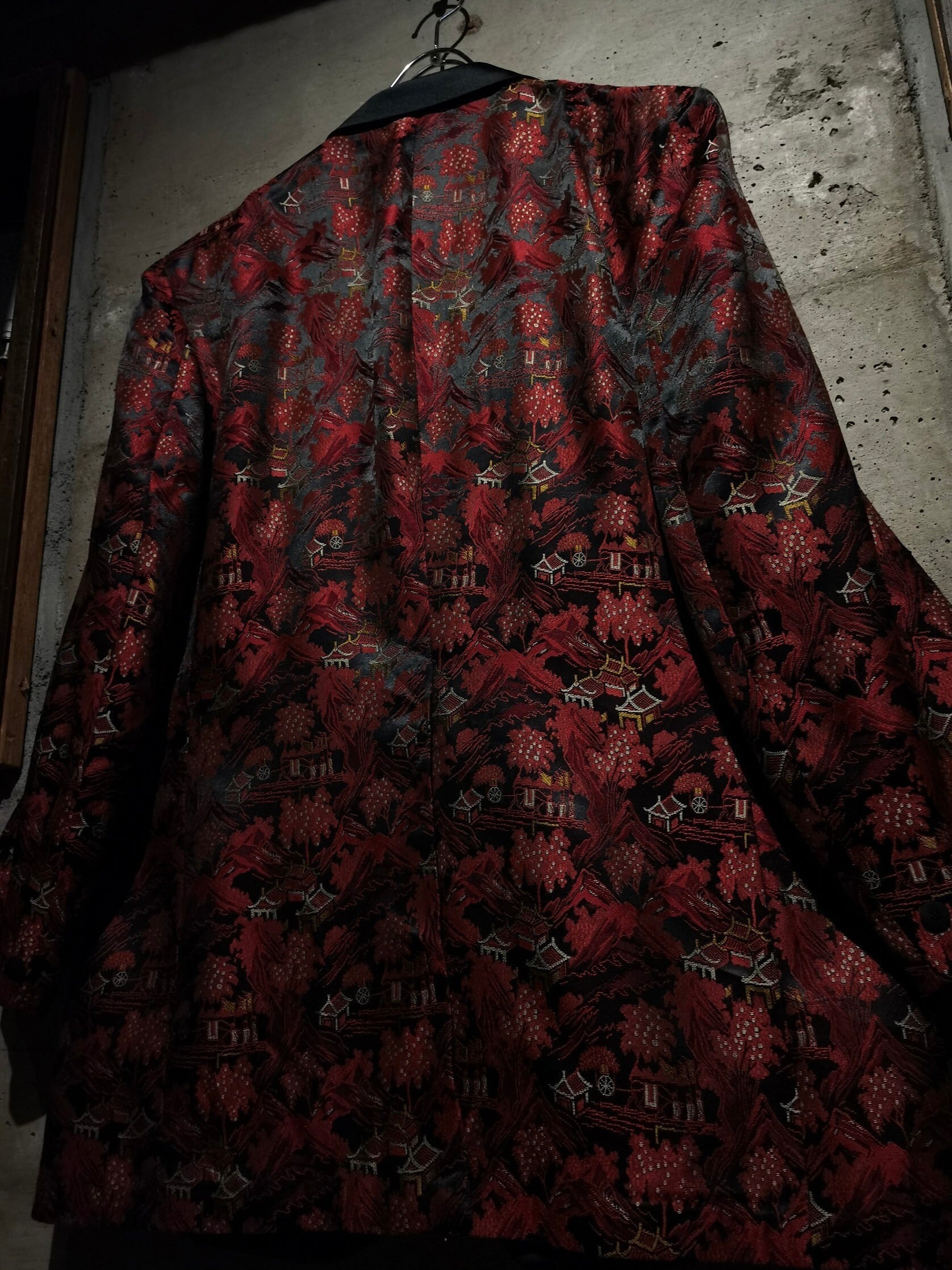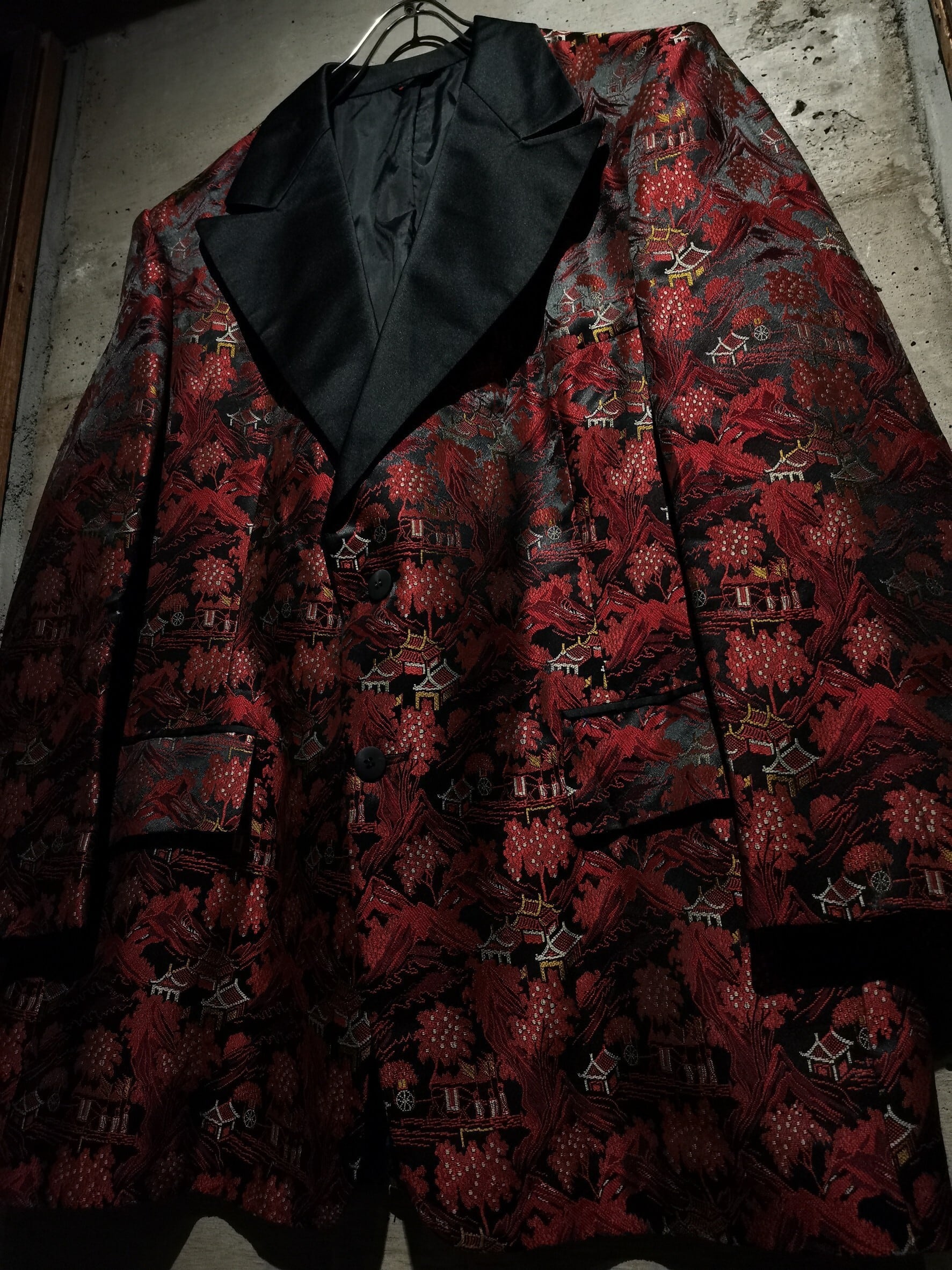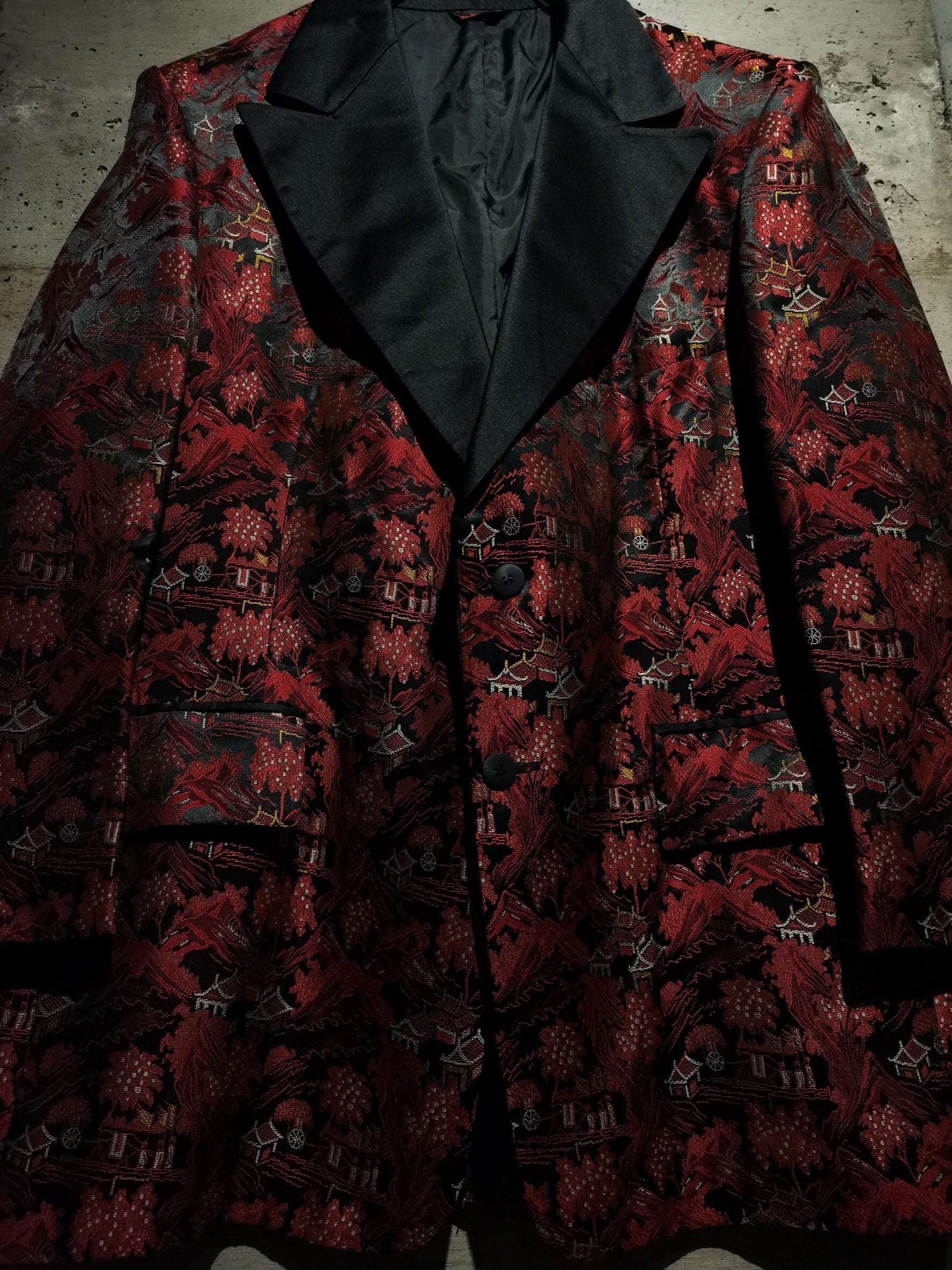 "After Six"といえばフリルシャツというイメージが強いですが、本日ご紹介させて頂くのはタキシードジャケット。繊細な織りによって美しいチャイナ柄を映し出した超〜スペシャルな1着です。