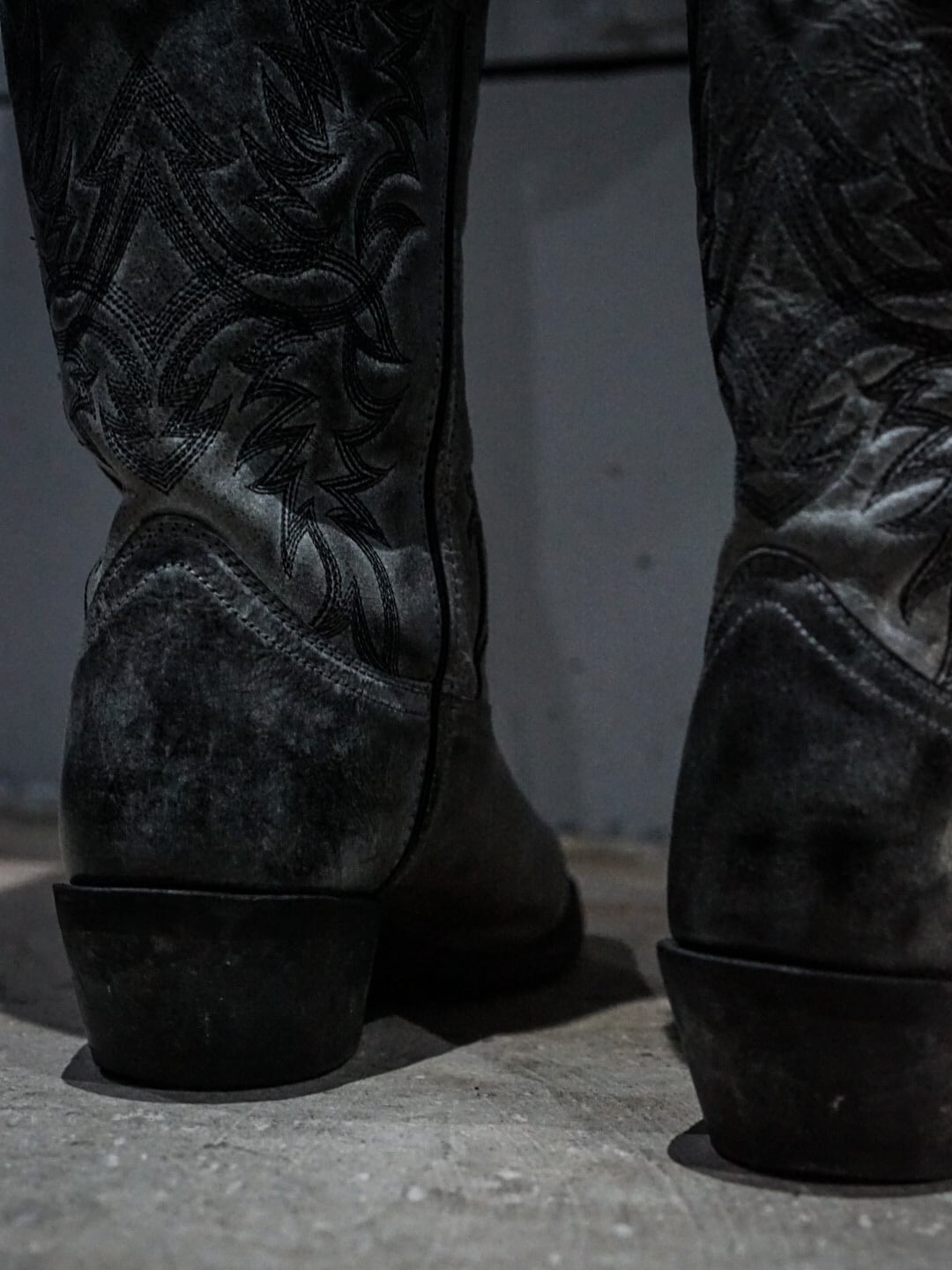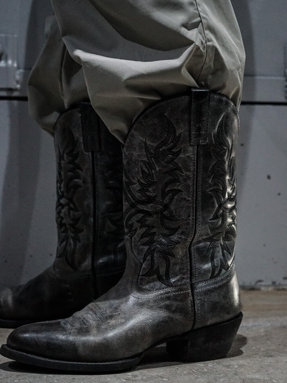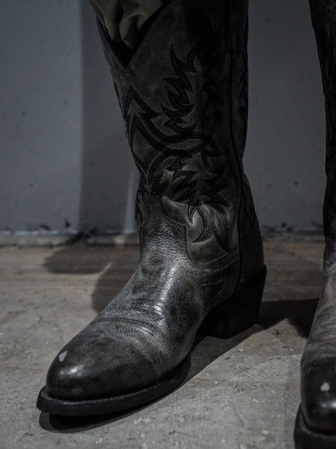 非常に稀有なカラーリング且つ独特の雰囲気を醸し出す深いグレーに、芸術的な刺繍デザインを載せた、至極のウェスタンブーツが入荷。