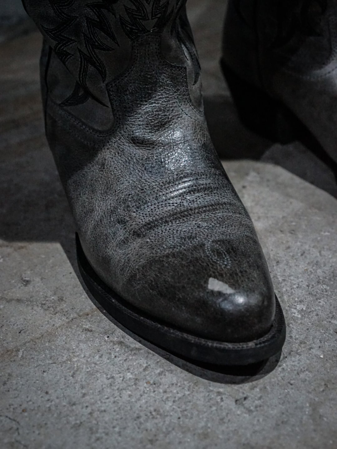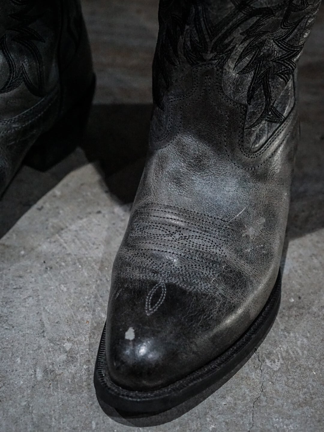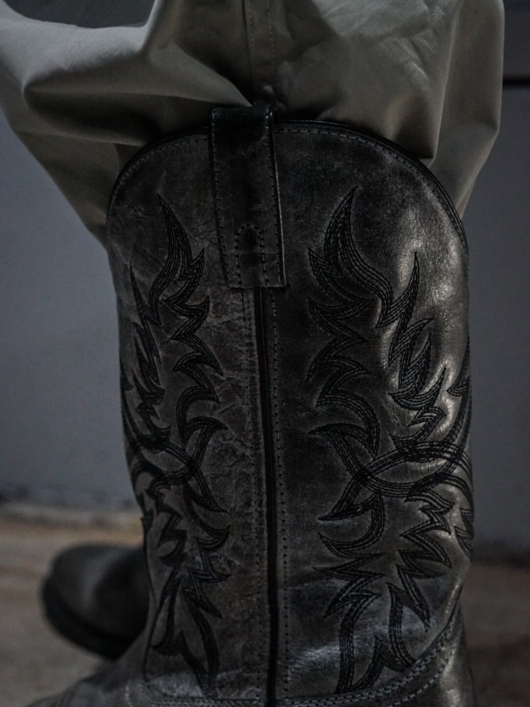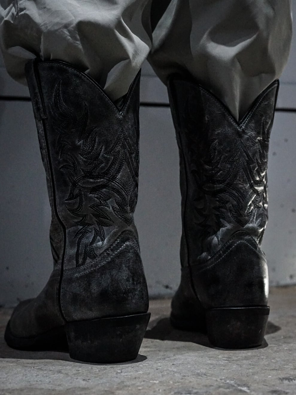 非常に稀有なカラーリング且つ独特の雰囲気を醸し出す深いグレーに、芸術的な刺繍デザインを載せた、至極のウェスタンブーツが入荷。