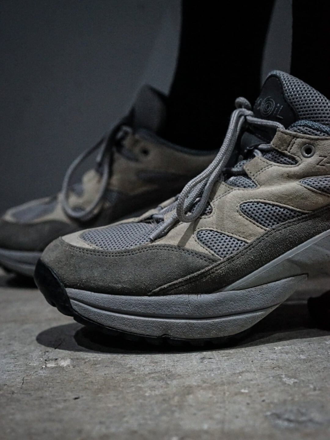 合わせるボトムスを選ばず、いつものスニーカーの延長線で、スラックスやフレア、バギー、レザー、ミリタリーと幅広いジャンルのスタイリングに取り入れられます。