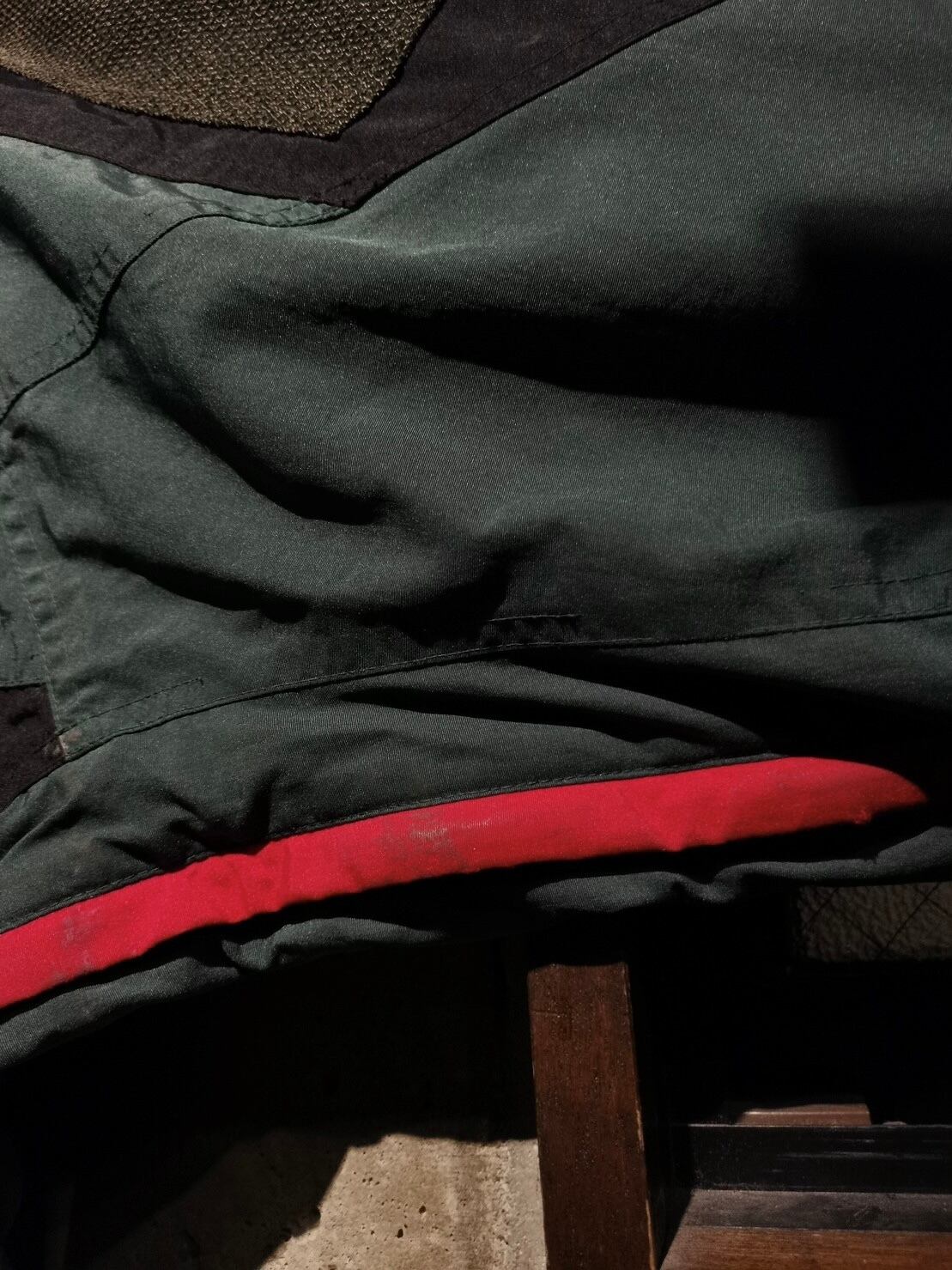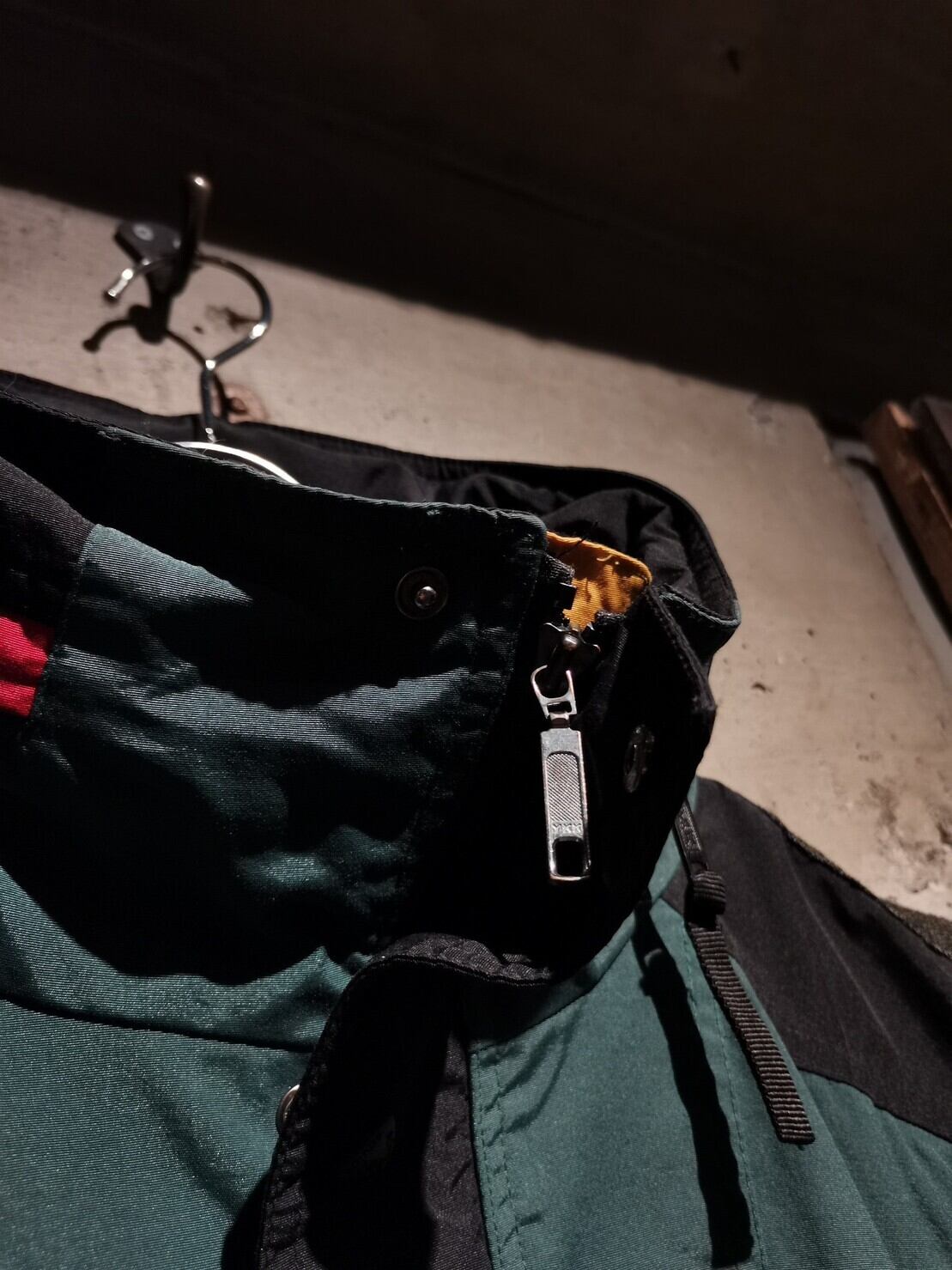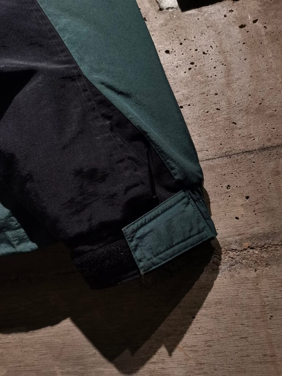 スモーキーグリーンをベースにブラックを切り替え、赤色の差し色が◎ボディにはジップポケット、ウエストと裾にはドローコードのギミックをON。ギュッと絞ればシルエットに変化をつけることも可能です。