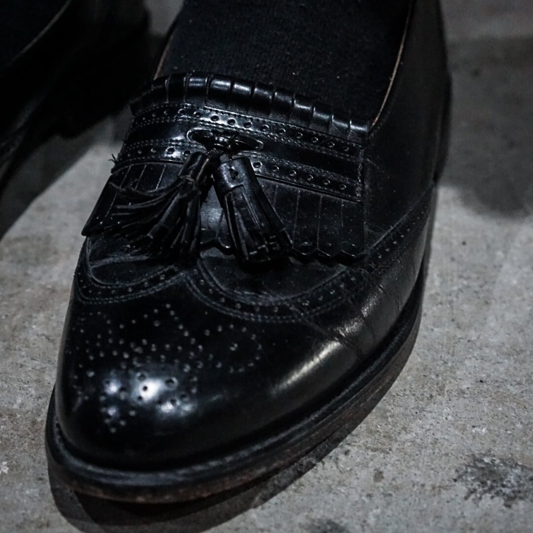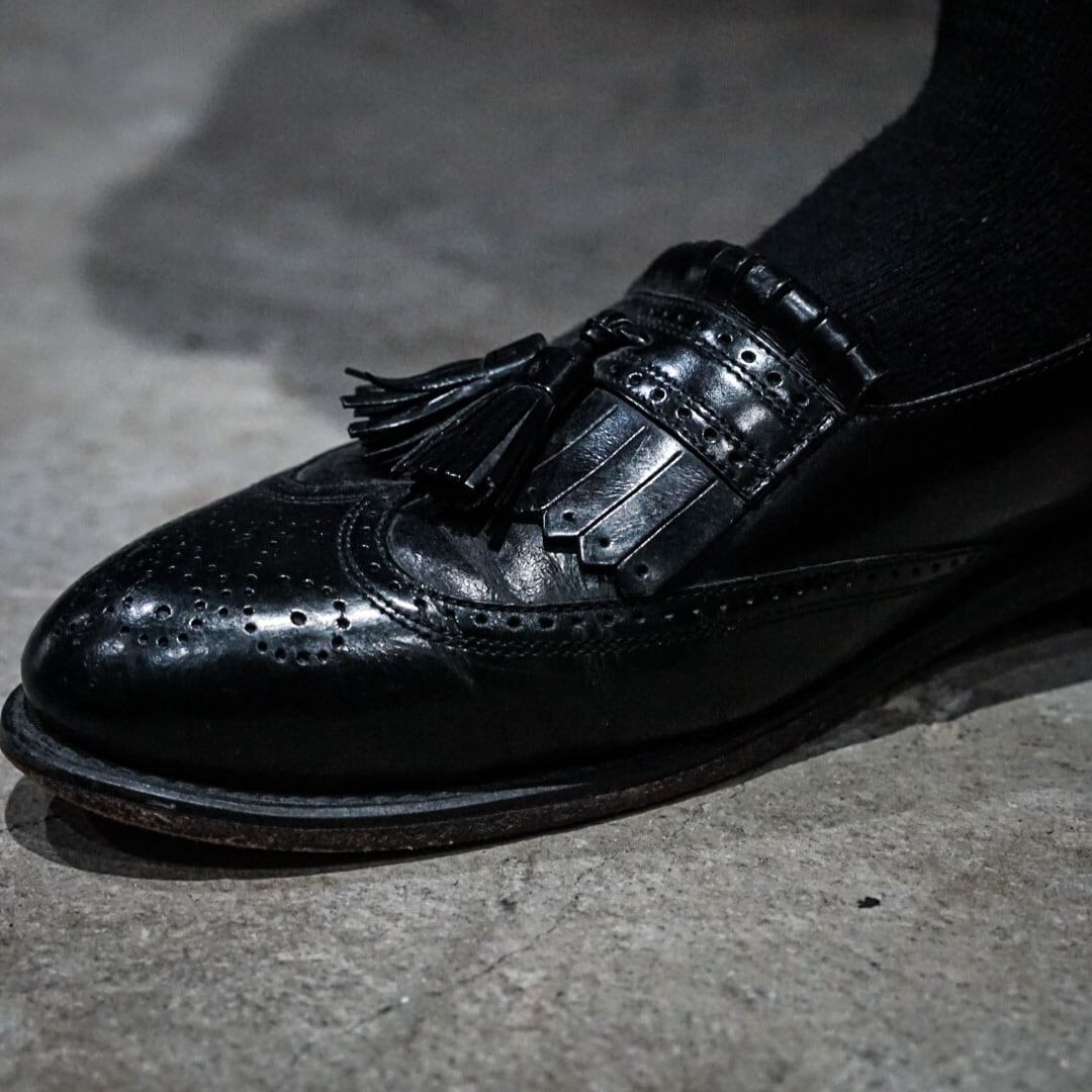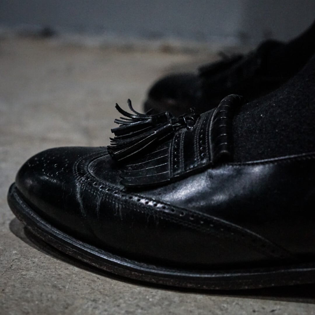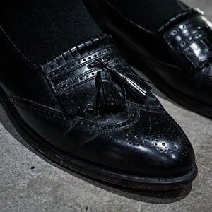 落ち着いたブラックに覆われたカラーリング、タッセルやウイングチップ、素材等のいい塩梅で施されたデザイン性、非常に汎用性も高く、一生履いて頂ける逸品となっております。