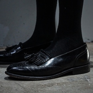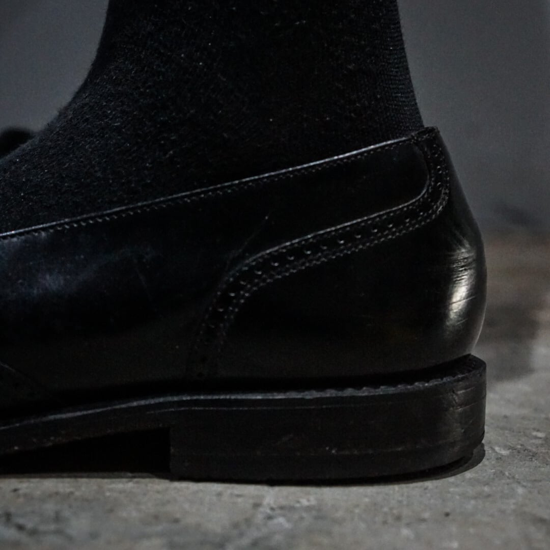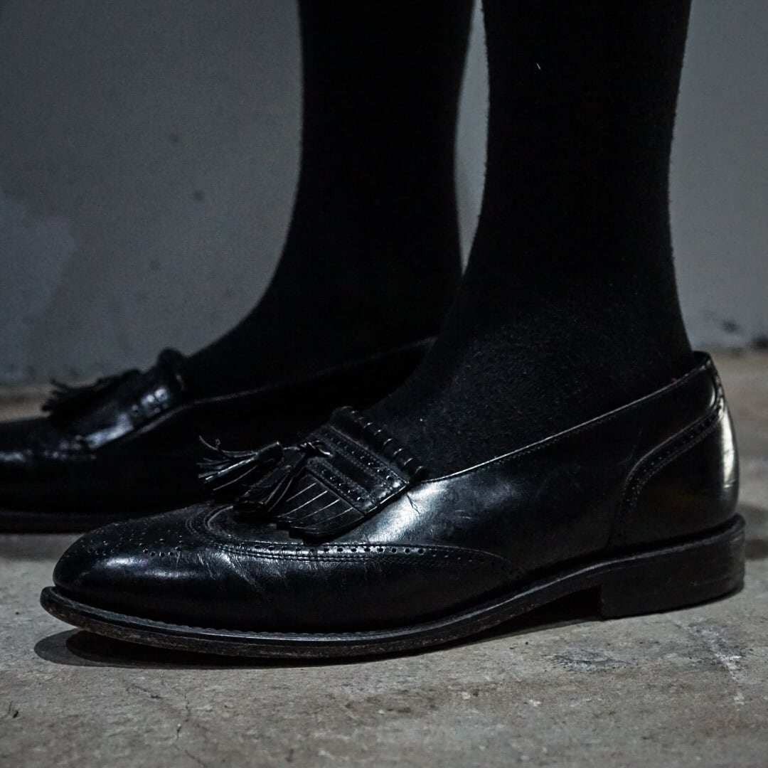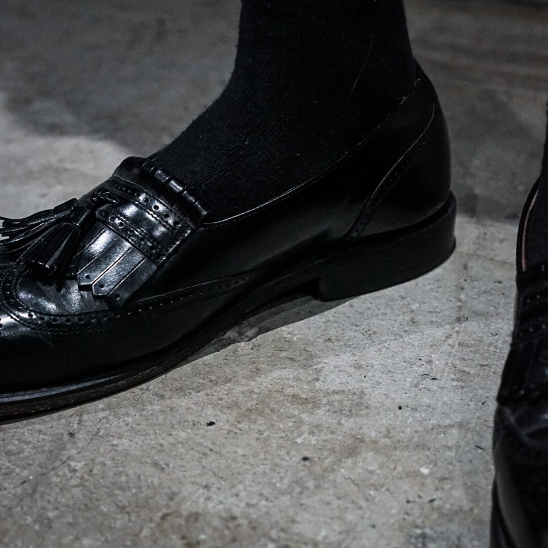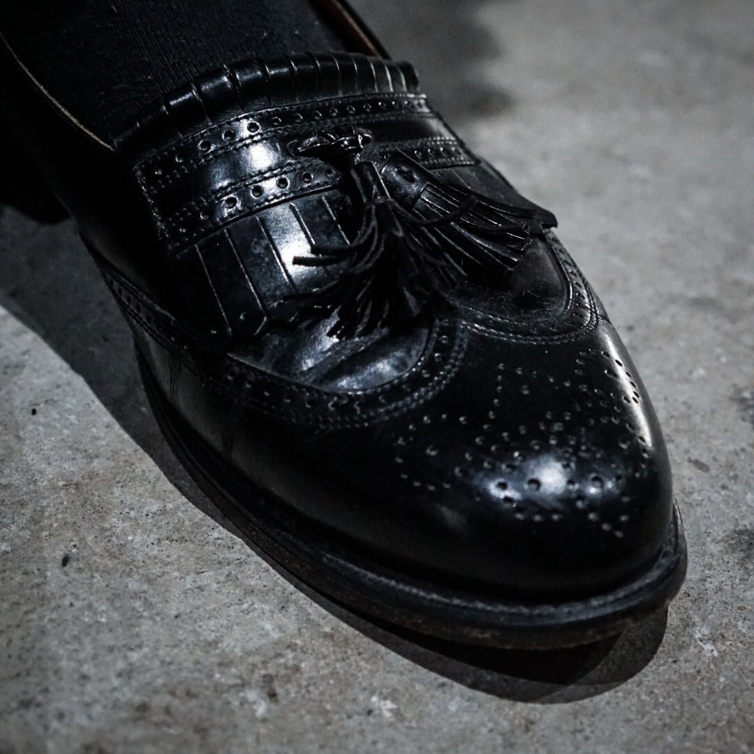 落ち着いたブラックに覆われたカラーリング、タッセルやウイングチップ、素材等のいい塩梅で施されたデザイン性、非常に汎用性も高く、一生履いて頂ける逸品となっております。