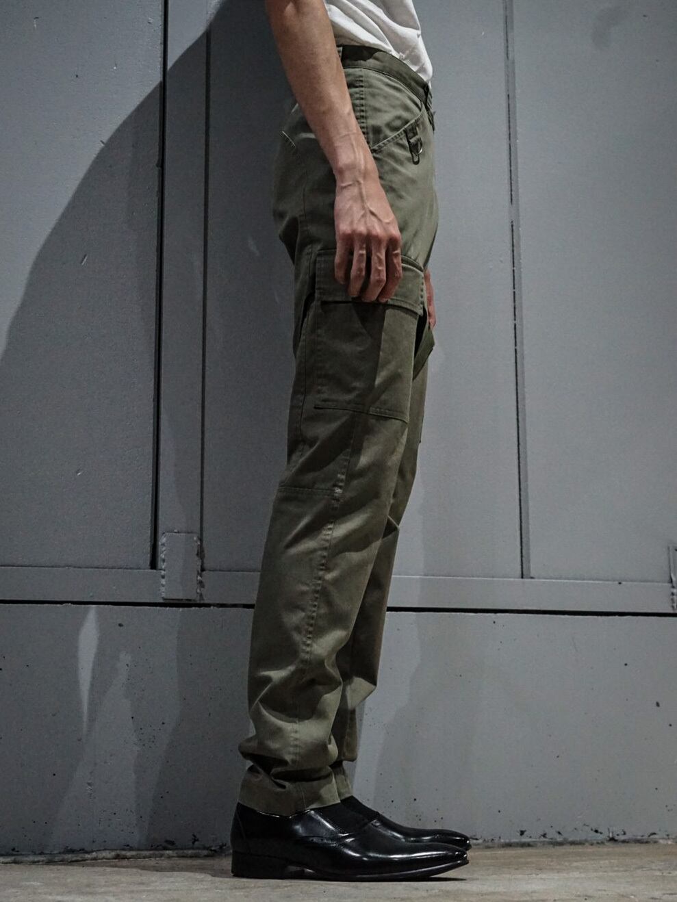 太めのものが多いカーゴパンツですが、細すぎず太すぎずのスタイルを選ばないサイジングに加え、ストンとした落ち感の美しいストレートシルエットによりスタイルアップや脚長効果も期待できる1本になっています。