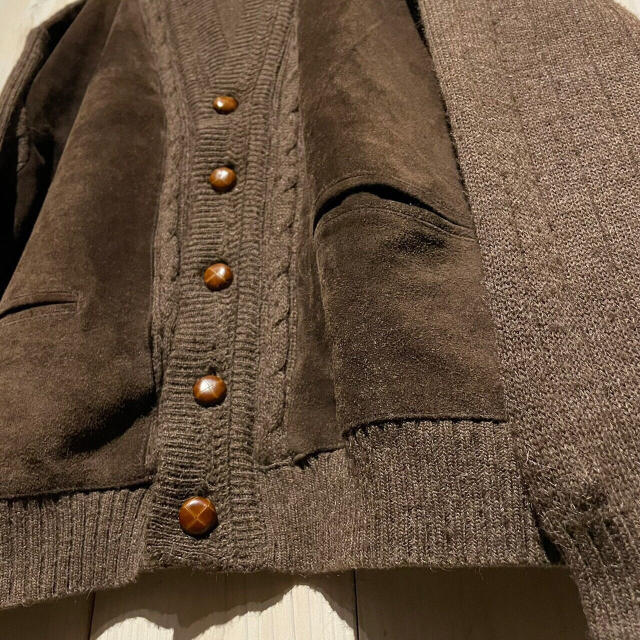 ニットカーディガンに大胆にレザーを切り替えた稀有な1着。高級素材であるアルパカを混ぜ込んだニット×レザーの異素材を巧みに組み合わせ1枚に纏め上げた、高級感をムンムンに漂わせるカーディガンのスペシャルな逸品です。