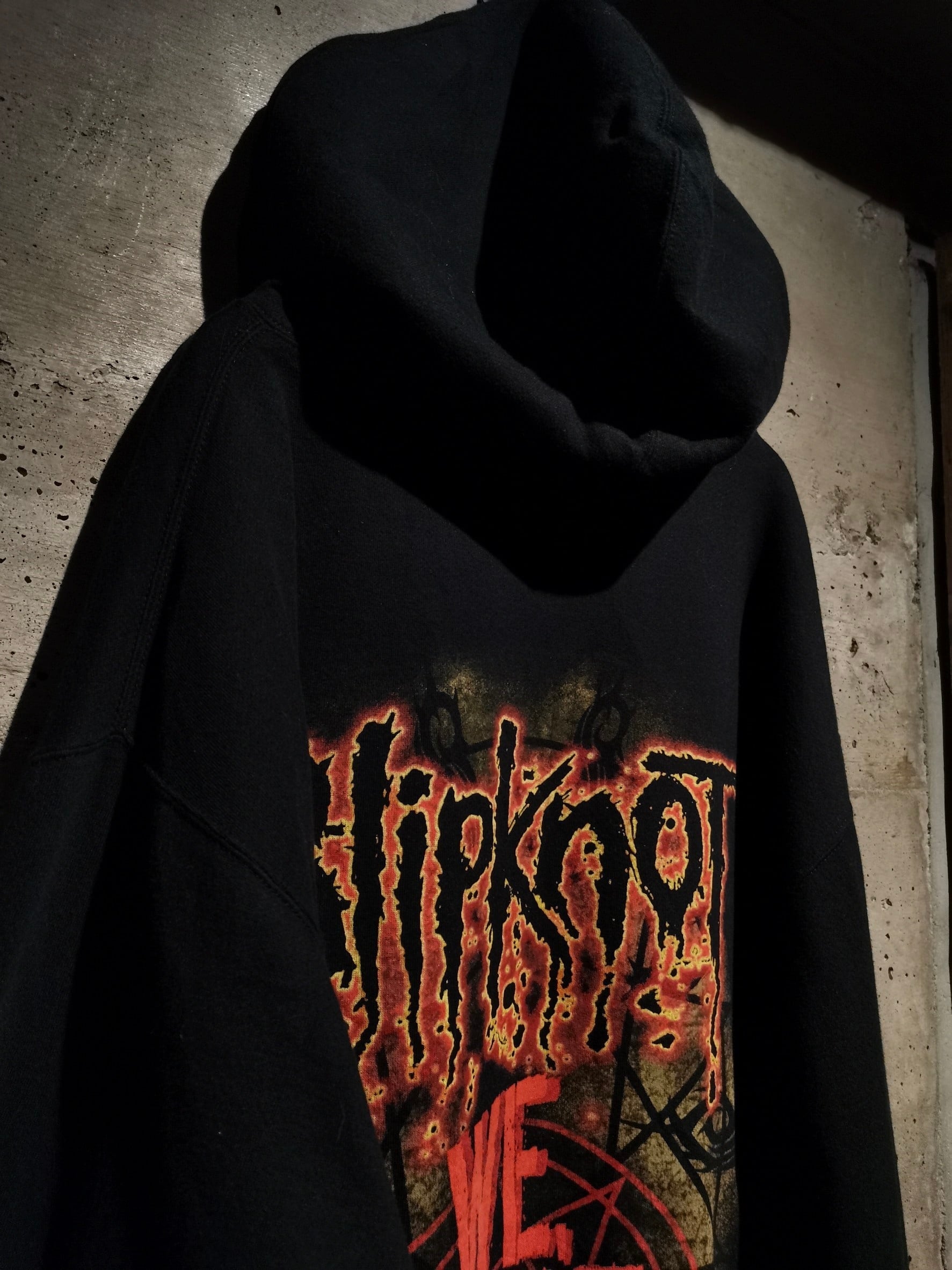 更には冒頭でも述べた通り、コピーライト入りのオフィシャルモノ。バンTなどでも高い人気を誇り、近年高騰が見られるスリップノットですが、フーディーとなると更に希少です。