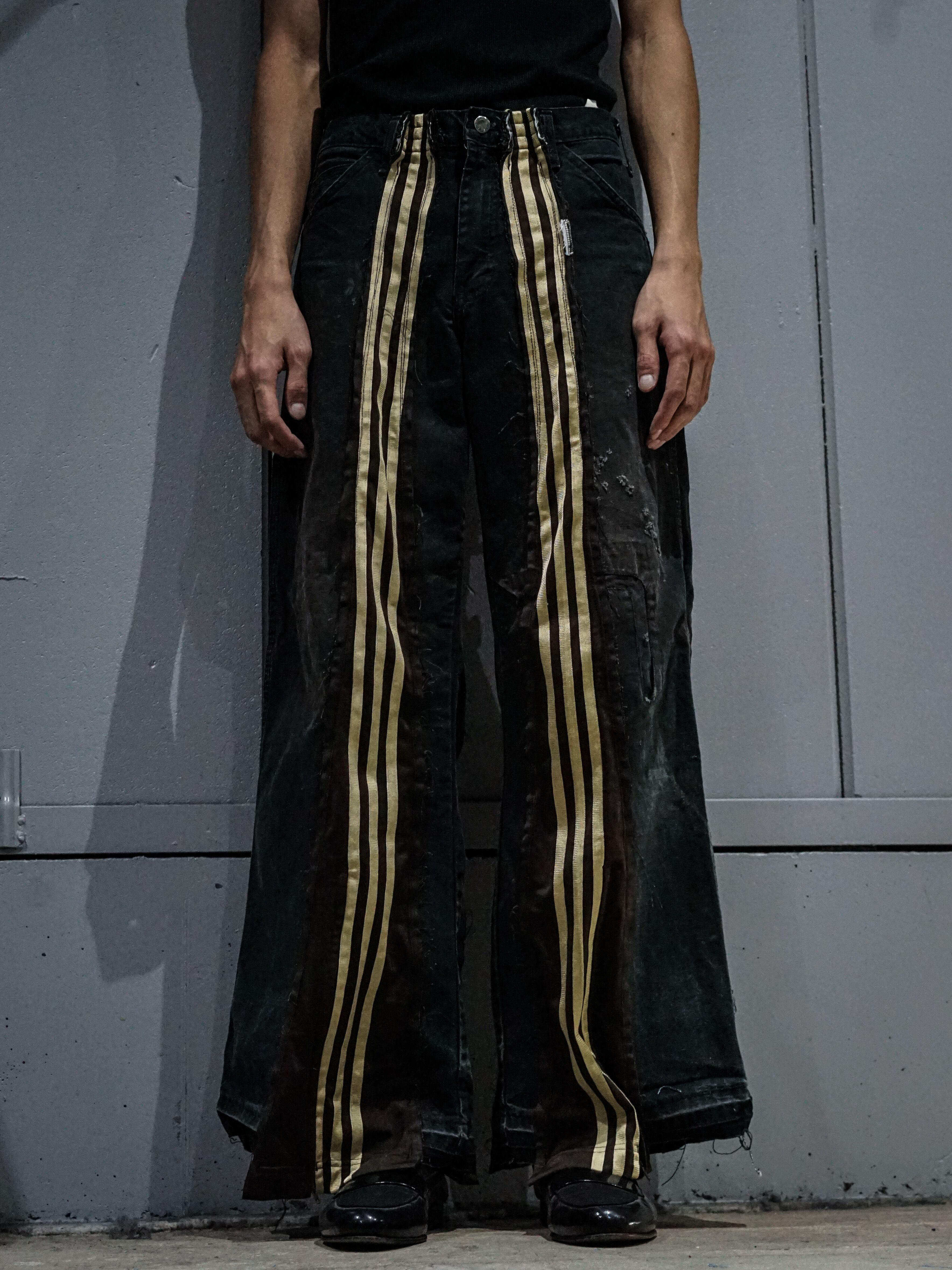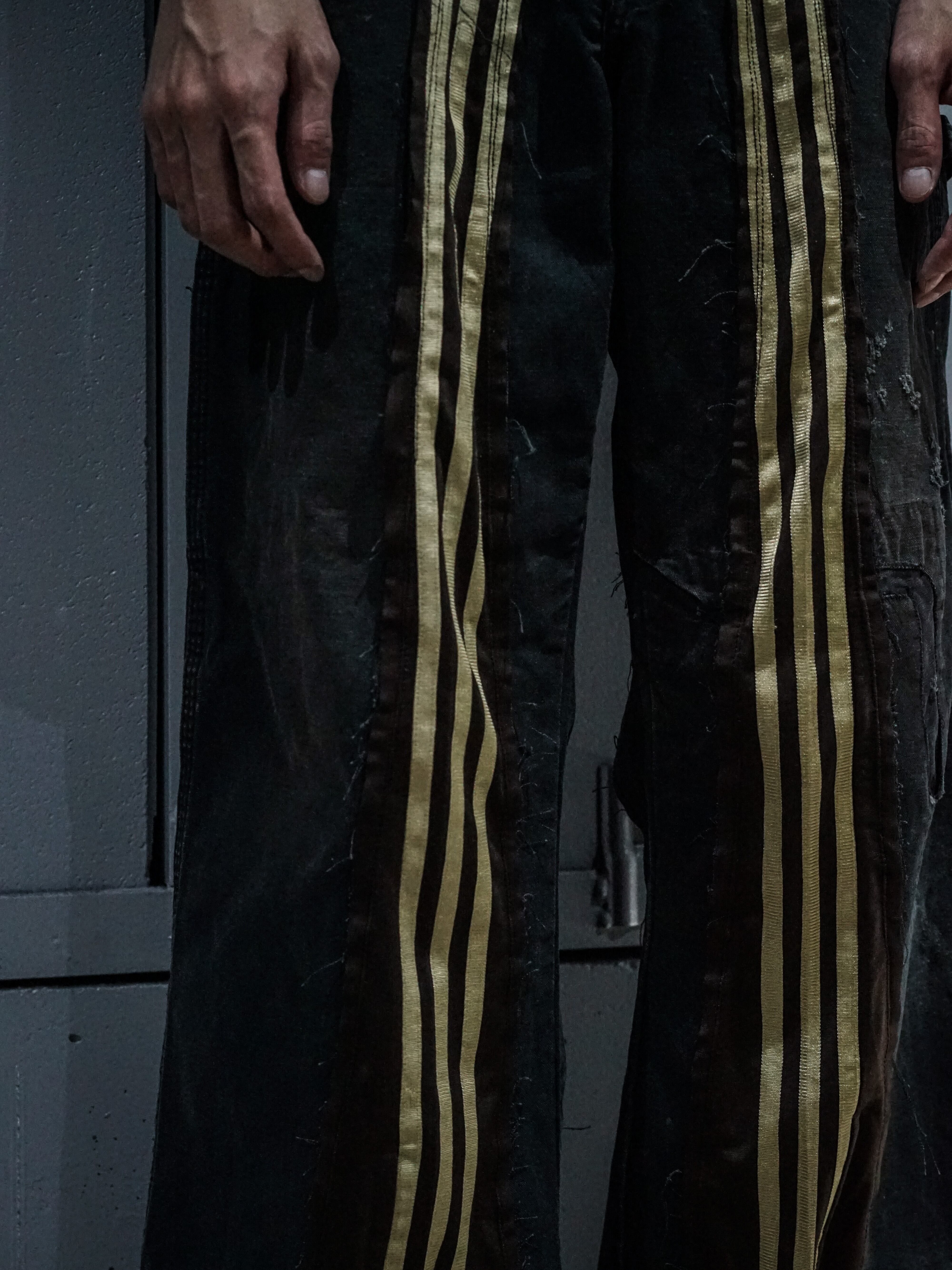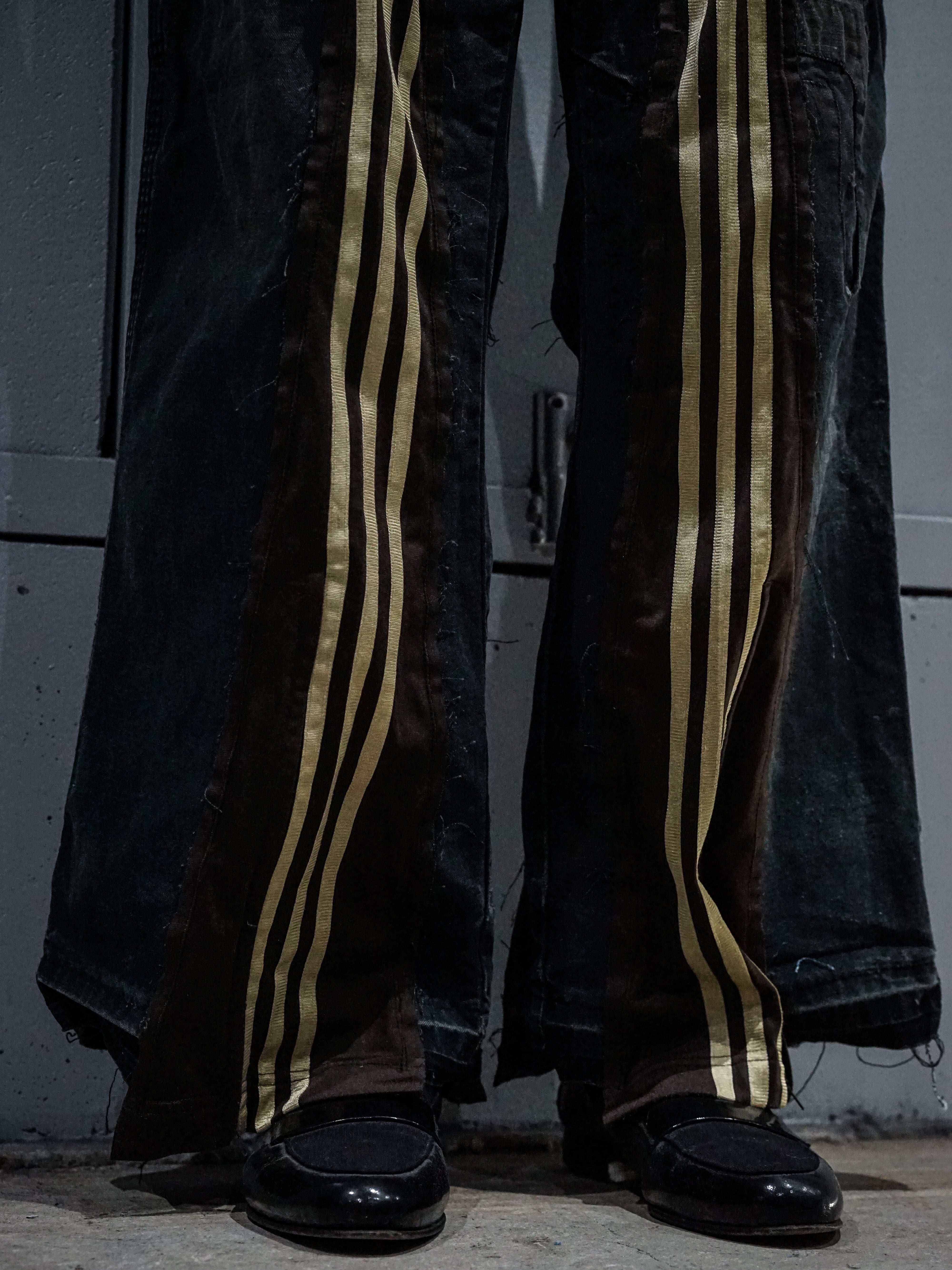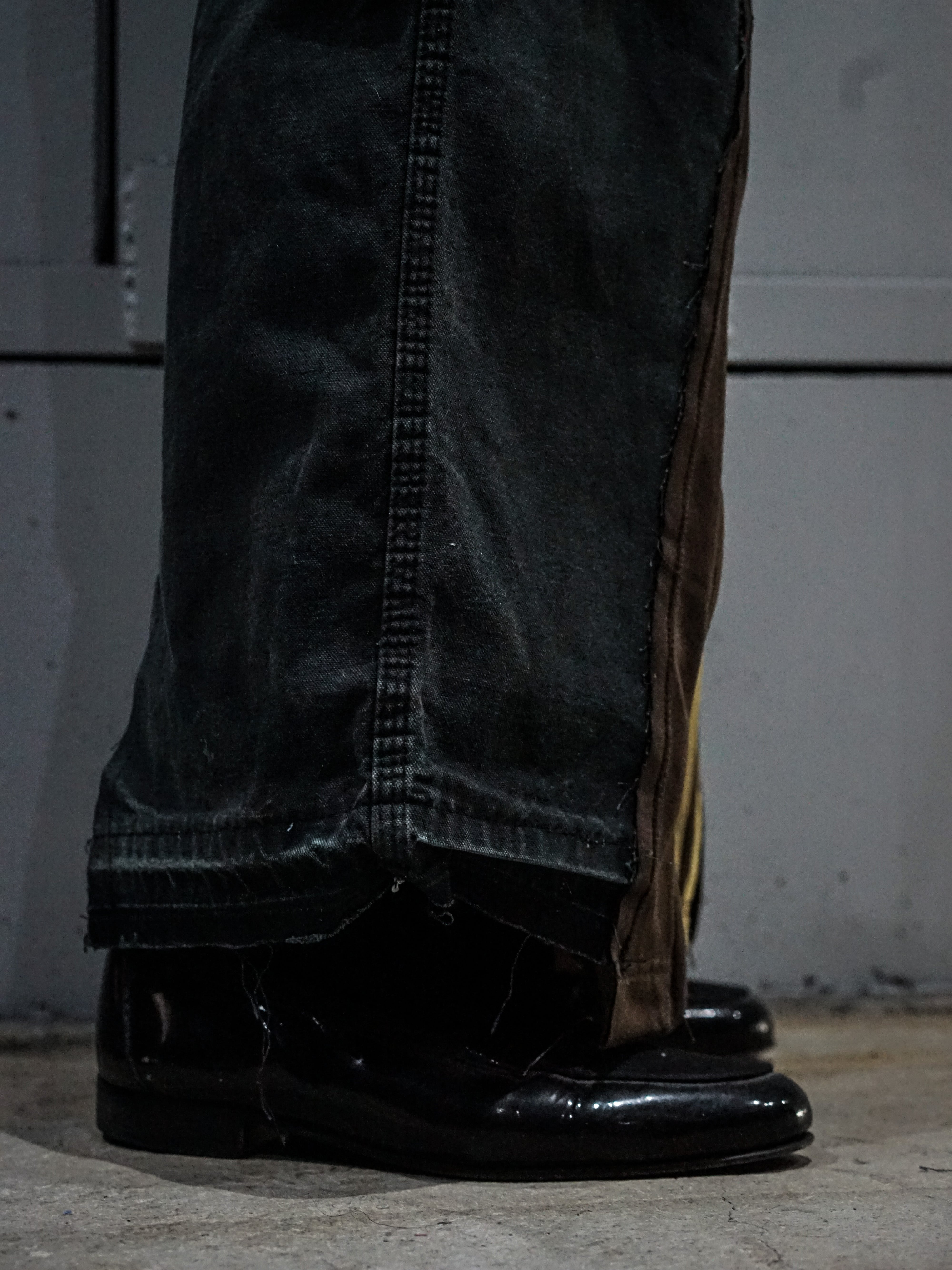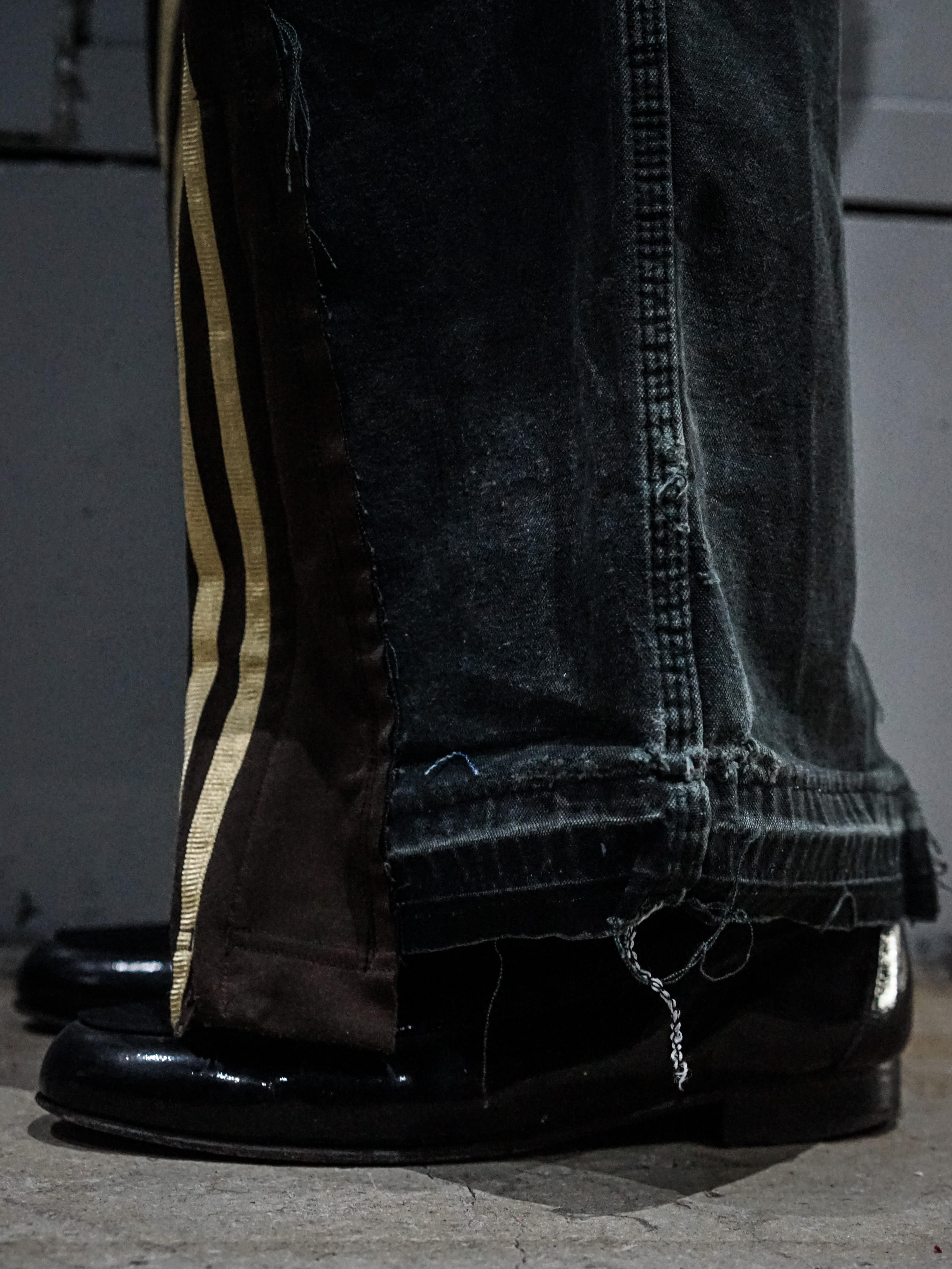 ジーンズを解体、そこに解体したヴィンテージのトラックパンツをドッキングし、再構築した至極の一本。