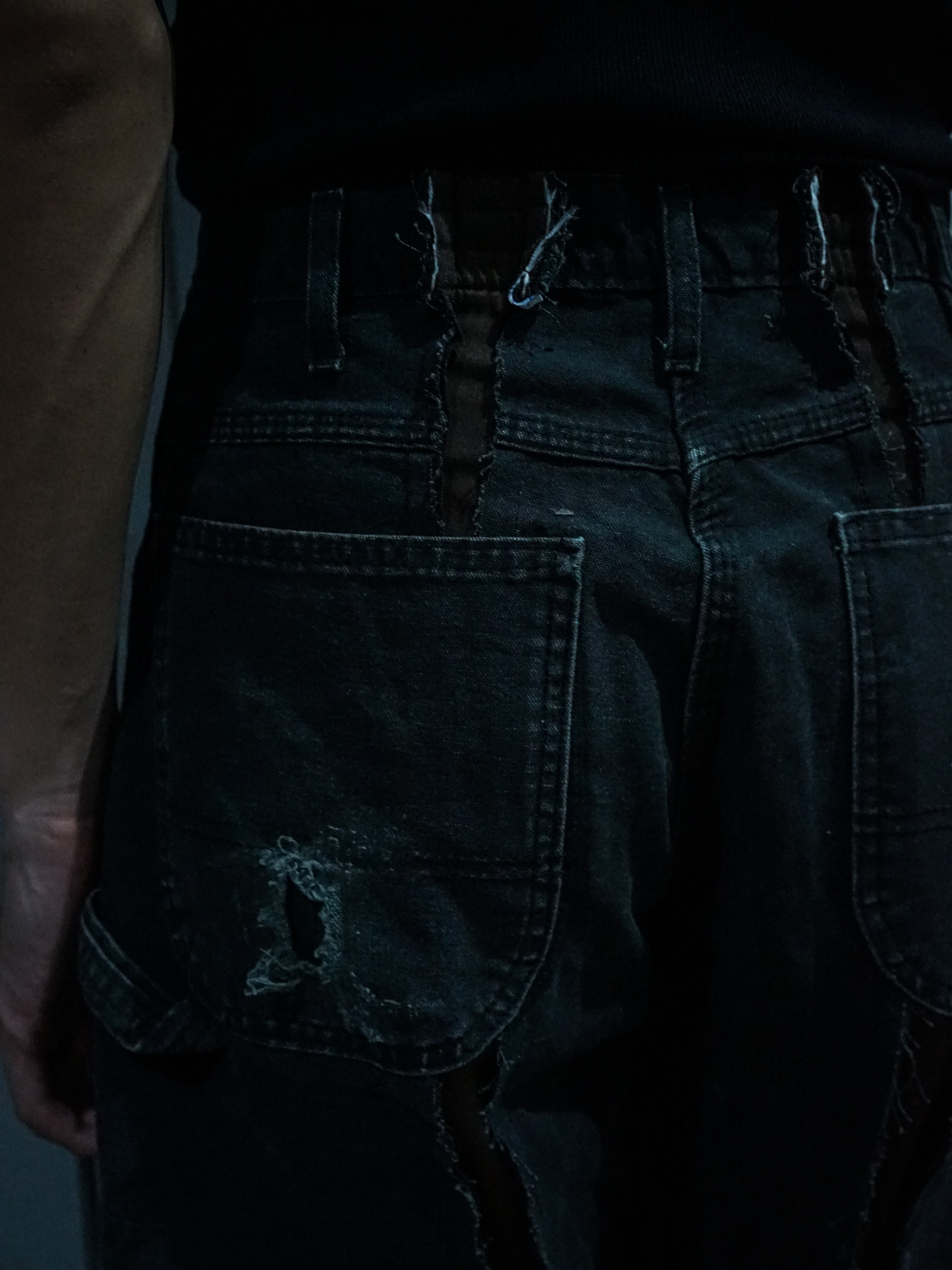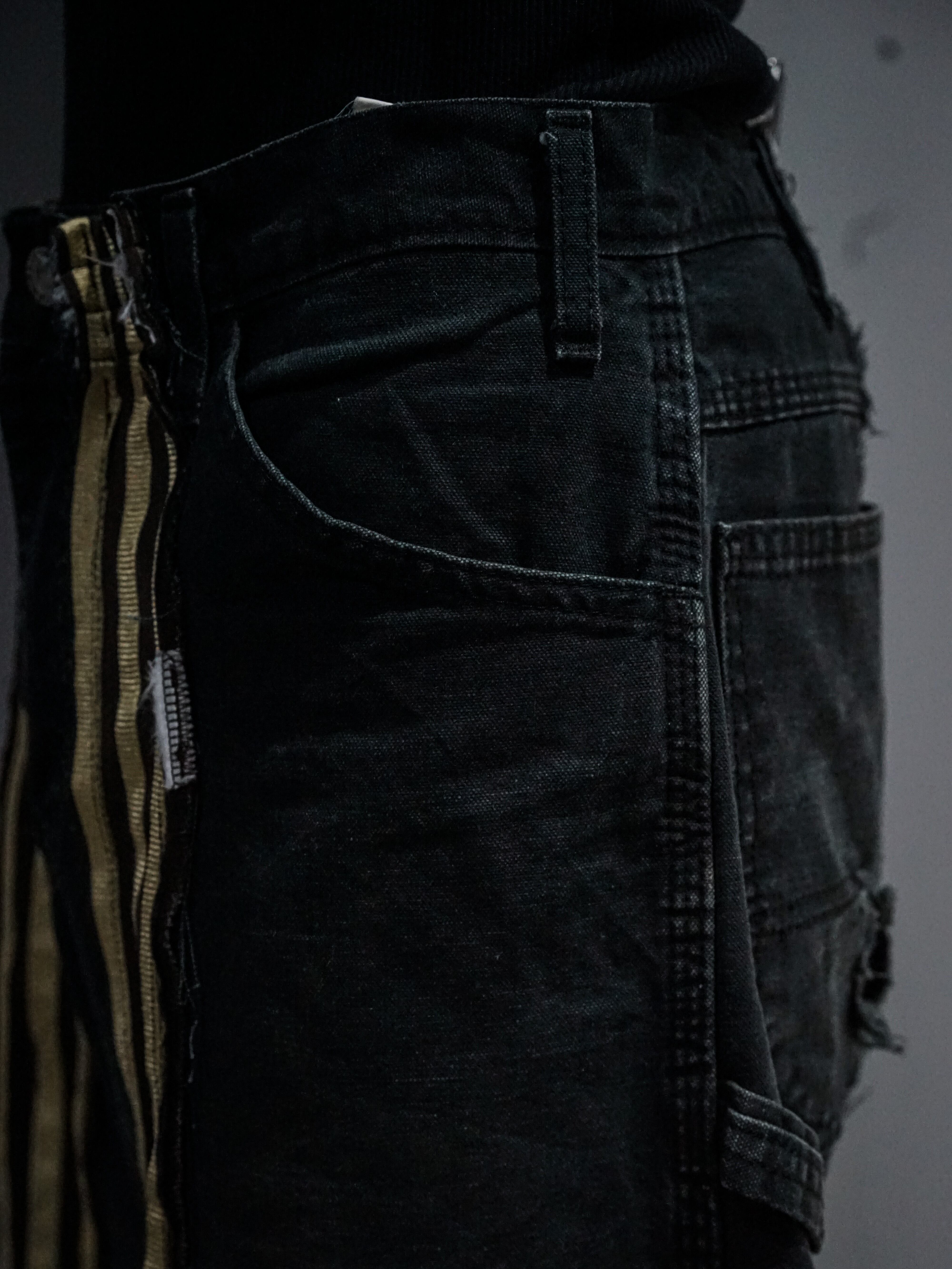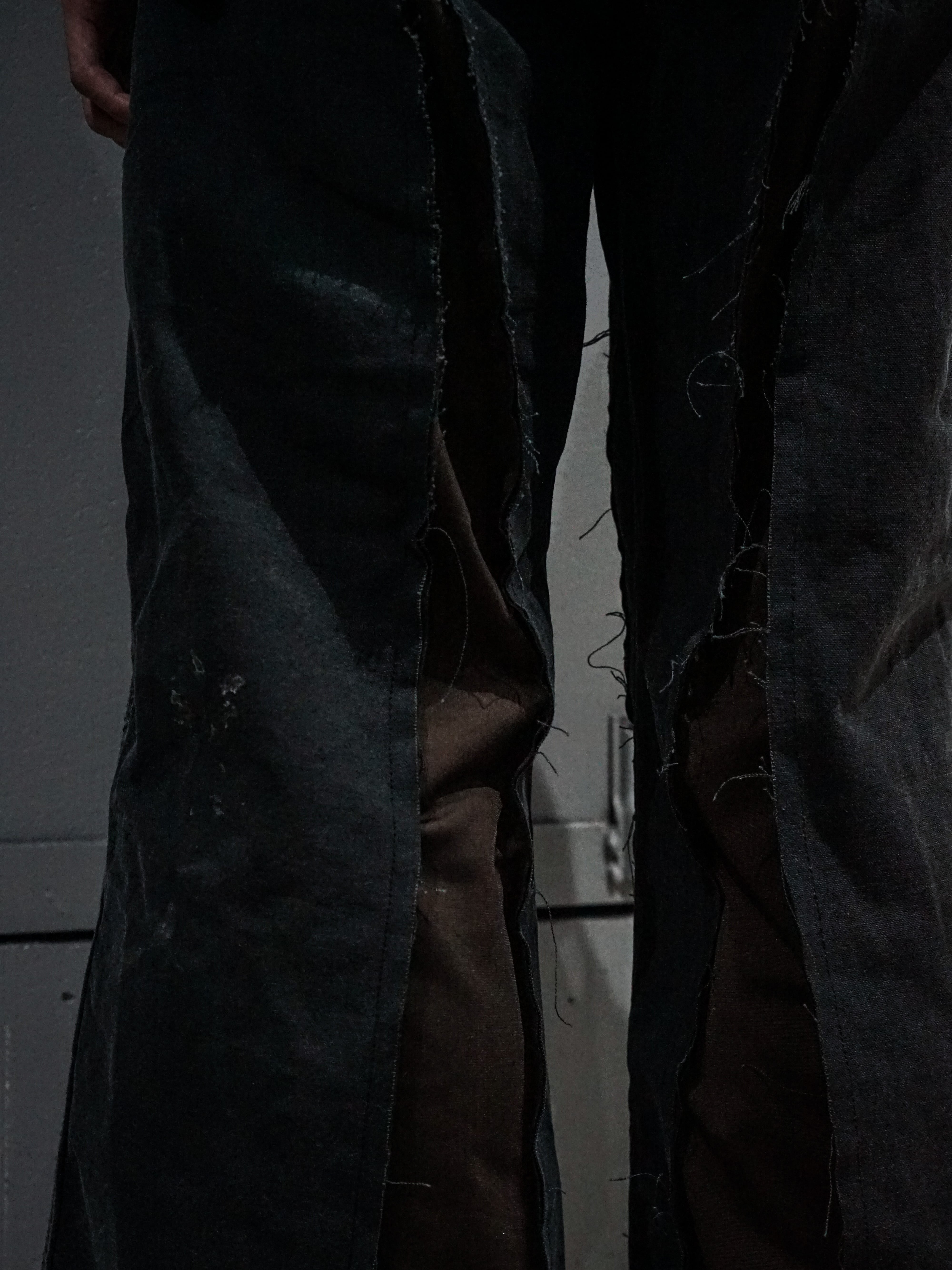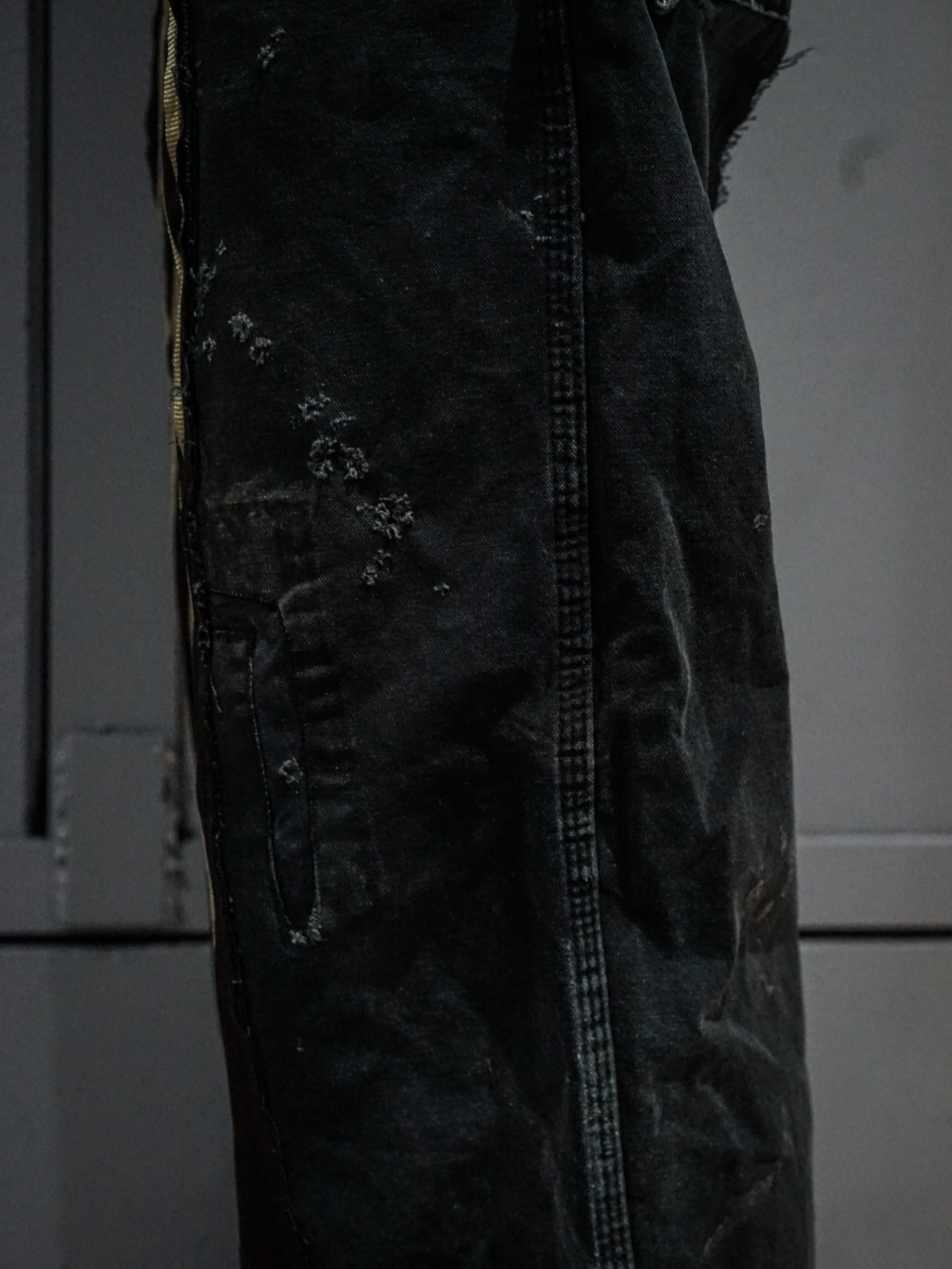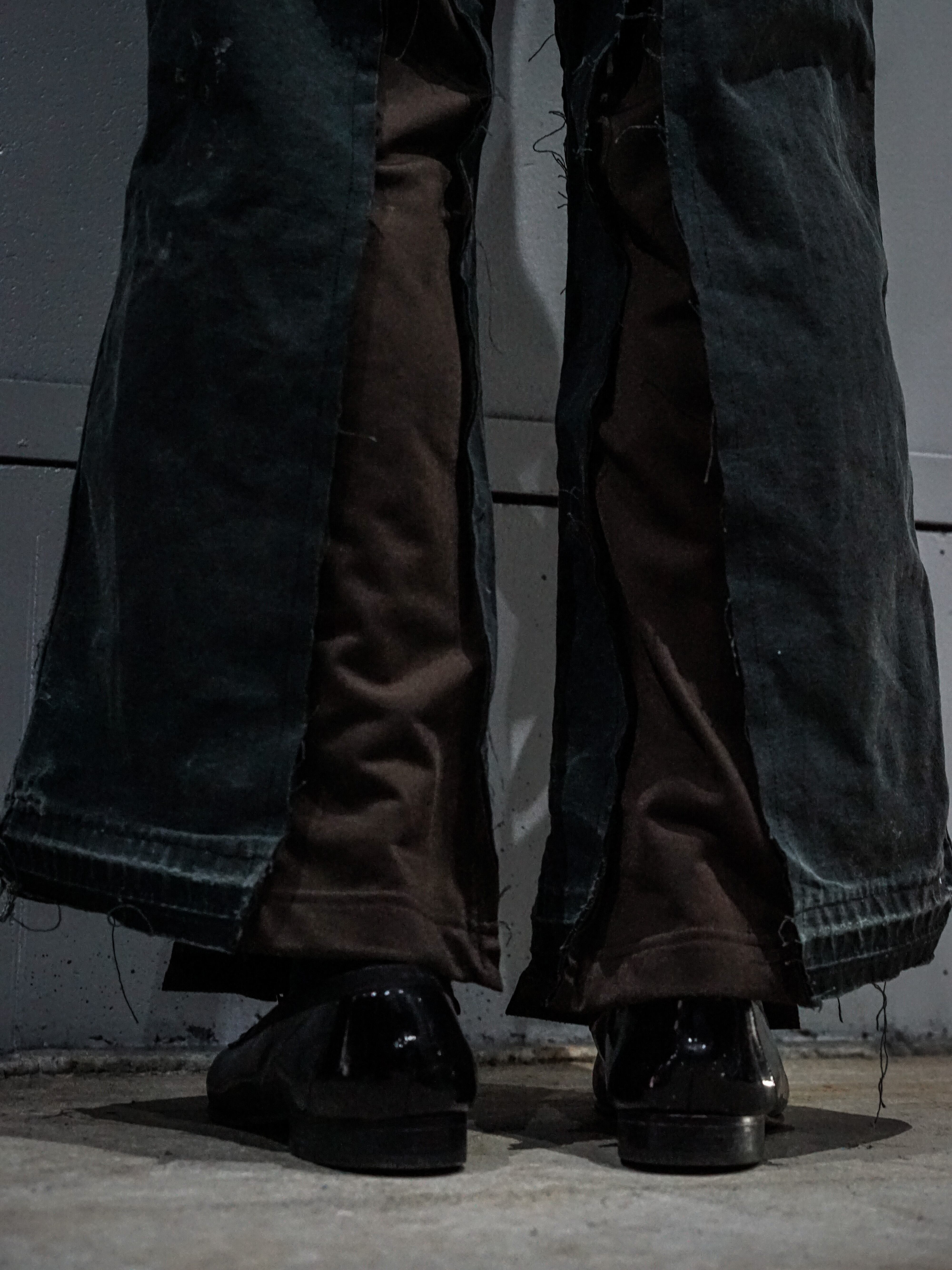 ジーンズを解体、そこに解体したヴィンテージのトラックパンツをドッキングし、再構築した至極の一本。