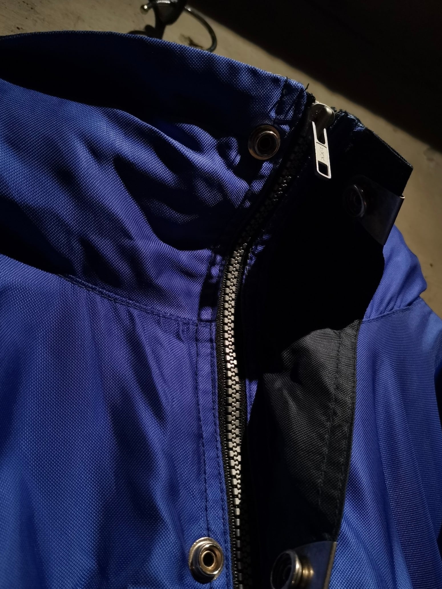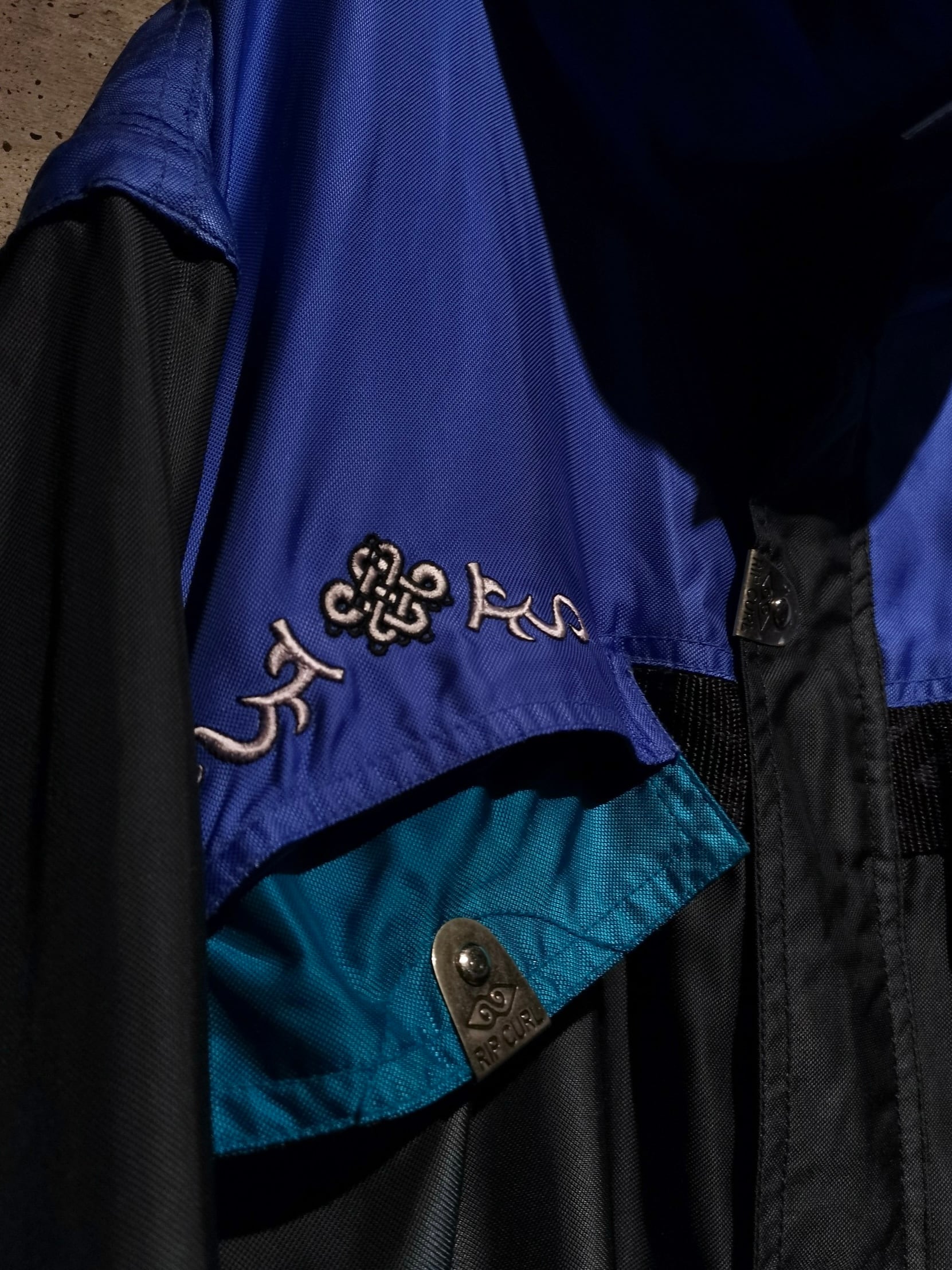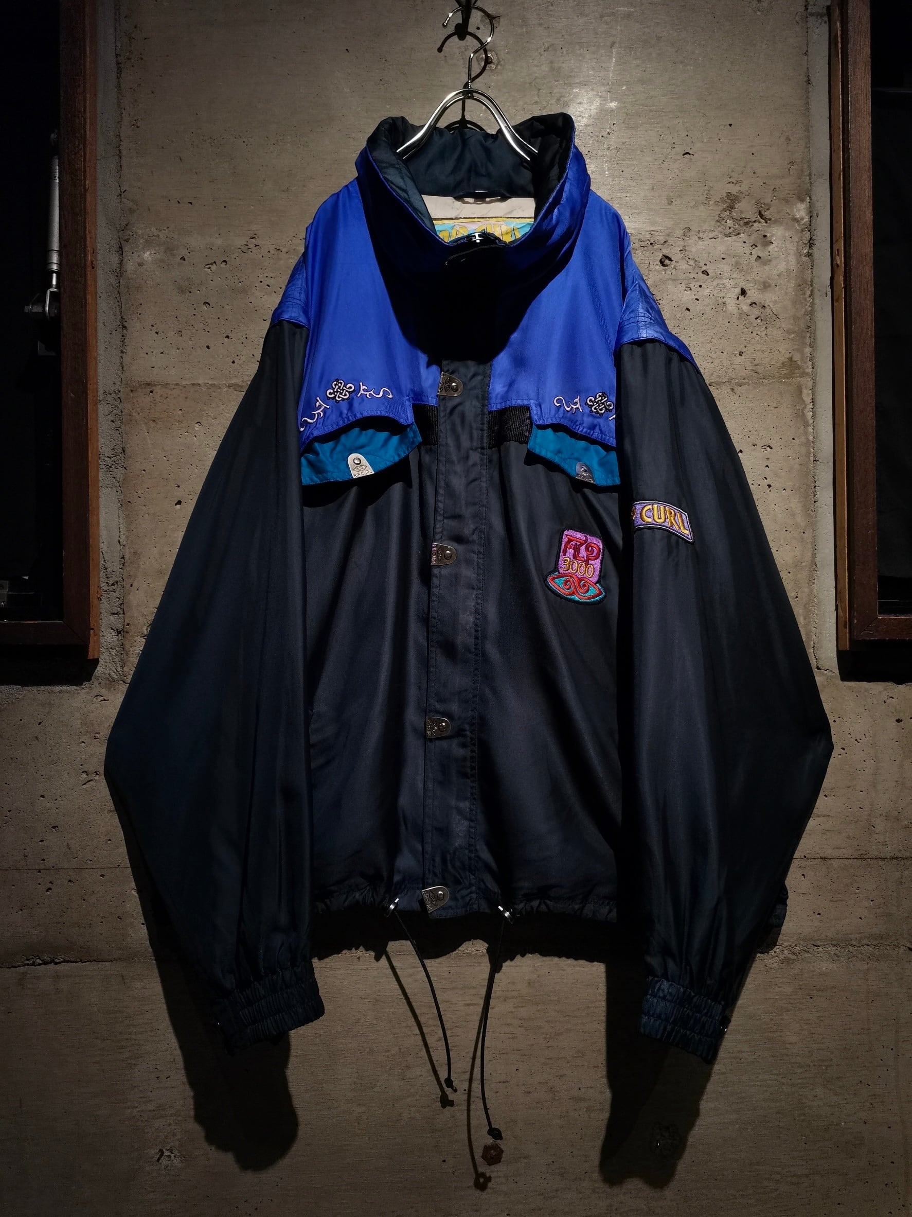 ツルッと滑らかな光沢を帯びたナイロン素材をボディに使用。この手のアイテムならではのテクニカルなギミックを散りばめたユーロヴィンテージのナイロンギアジャケット。