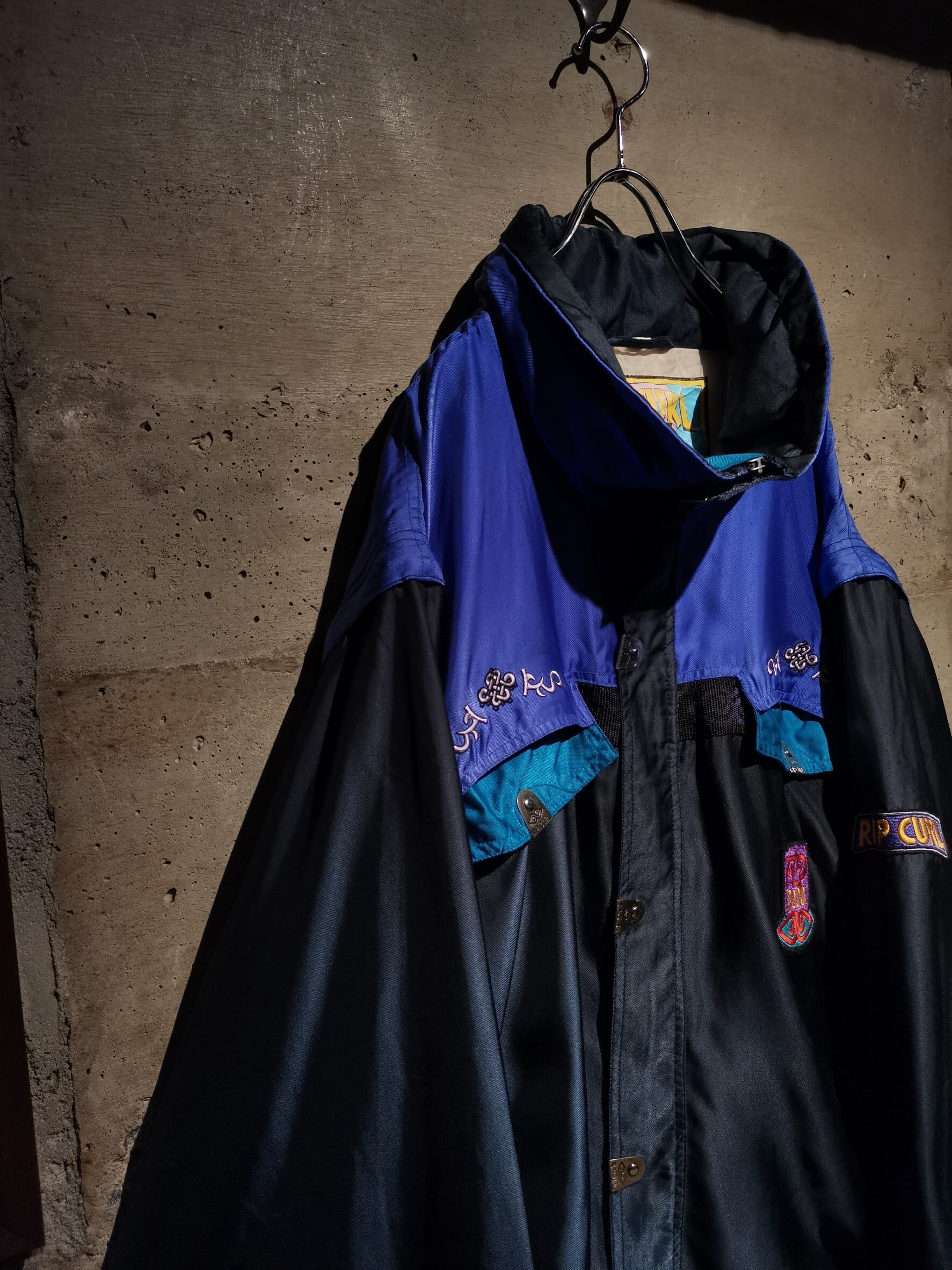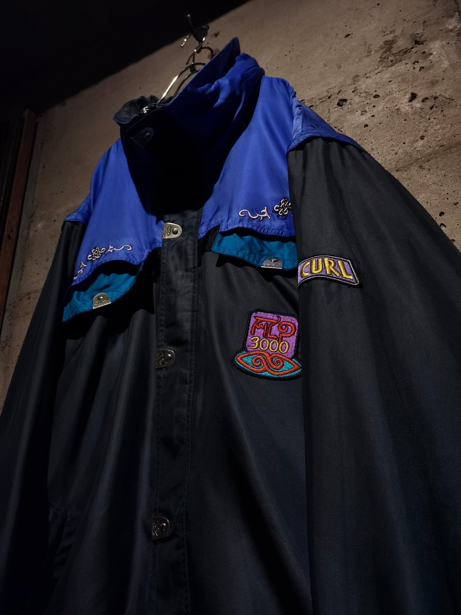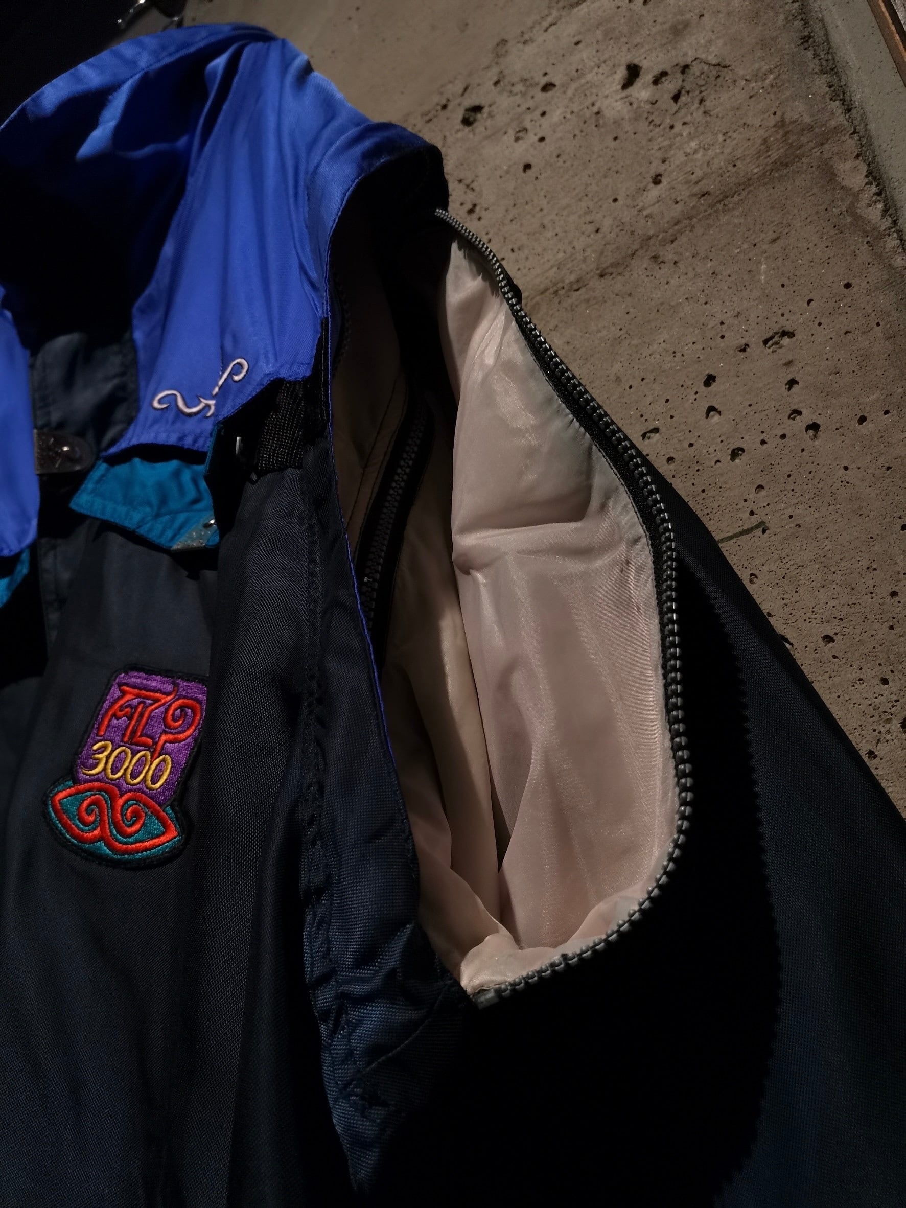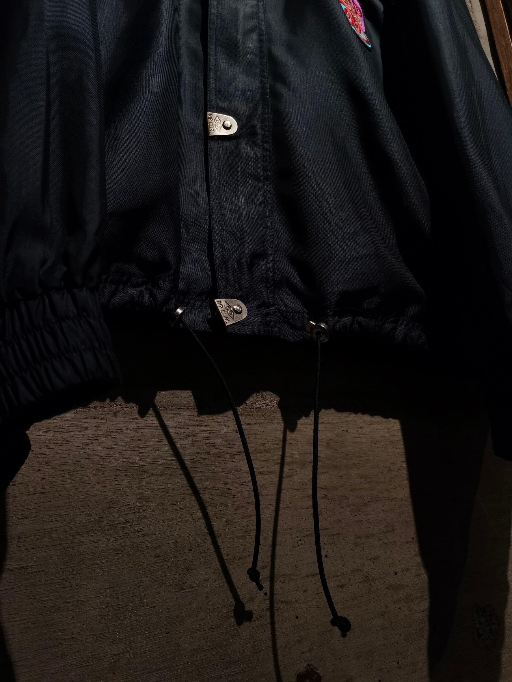 ツルッと滑らかな光沢を帯びたナイロン素材をボディに使用。この手のアイテムならではのテクニカルなギミックを散りばめたユーロヴィンテージのナイロンギアジャケット。