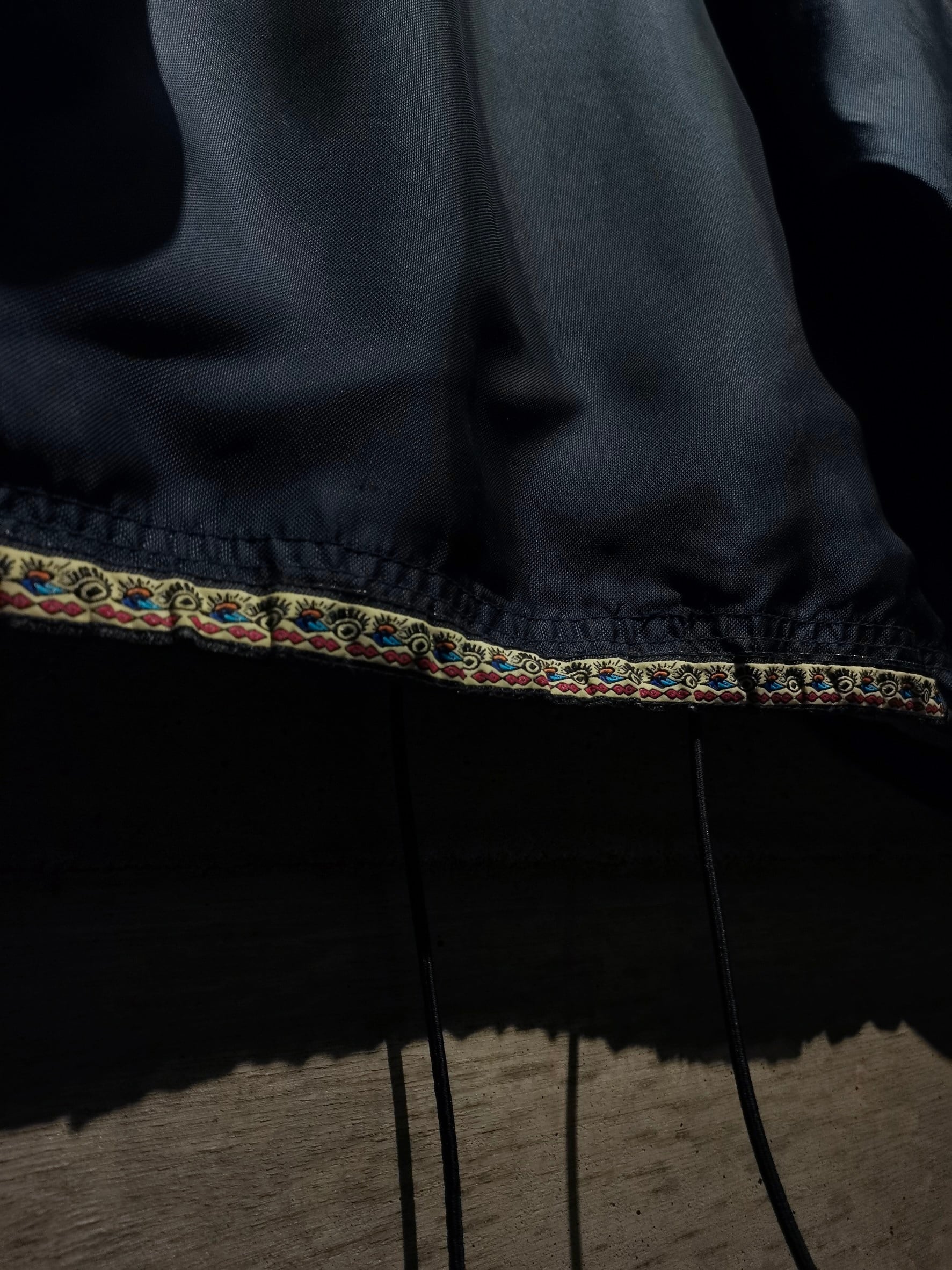 機能的なギミックのみならず、ネイビー×ブルーをベースとした配色に、年代感を漂わせるレトロな刺繍やパッチのカラーリングやデザインバランスも最高に良い。