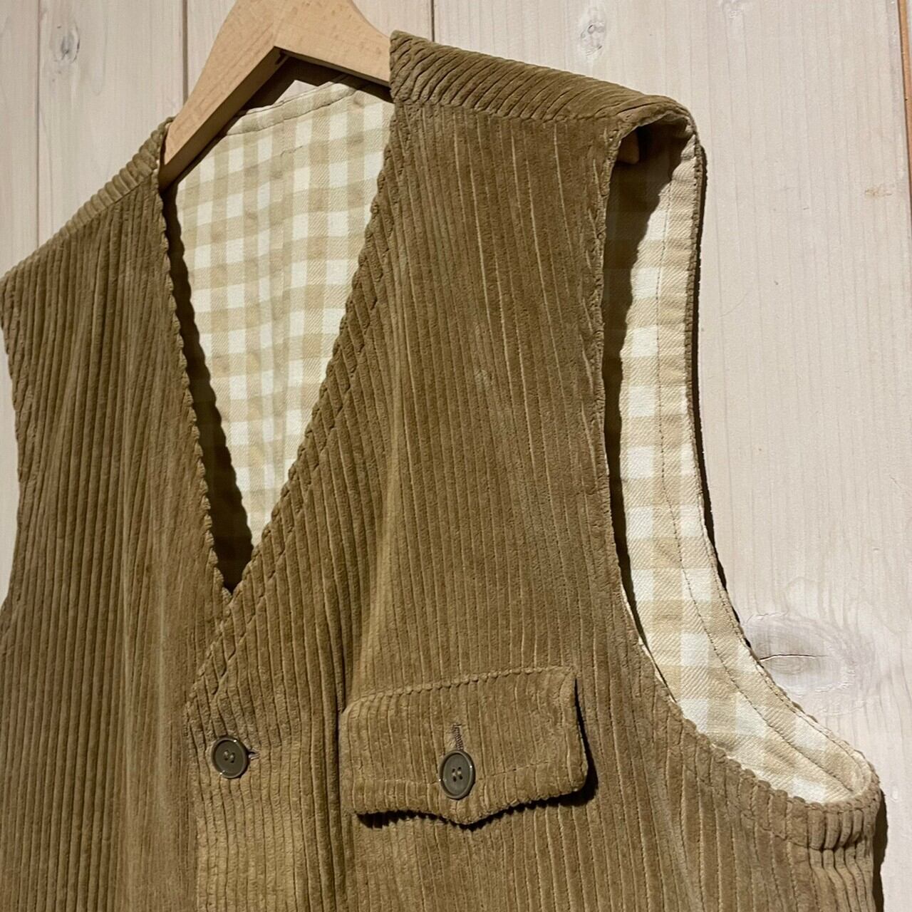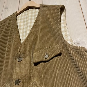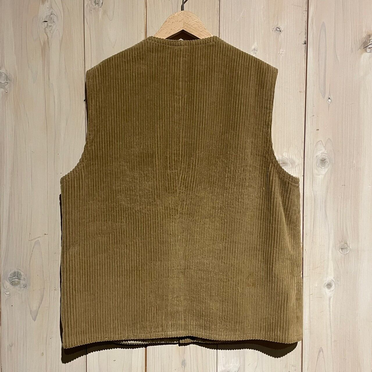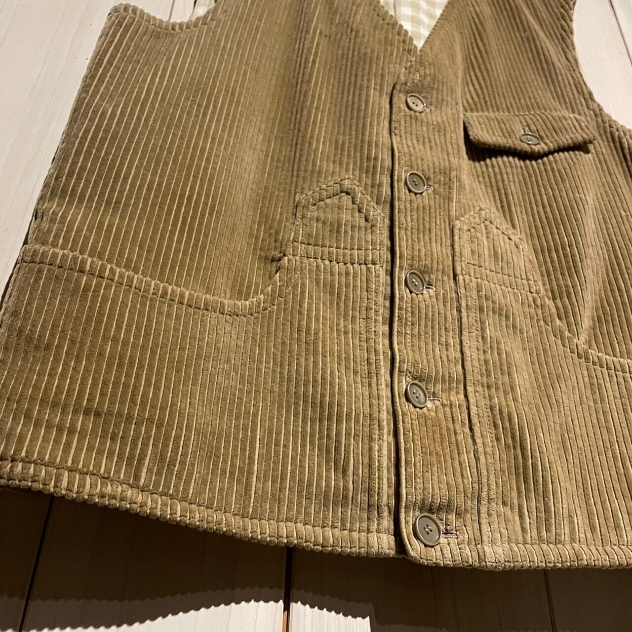 柔らかなベージュカラーの太畝コーデュロイをボディに使用したベスト。