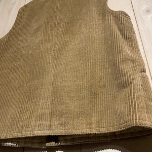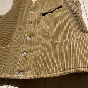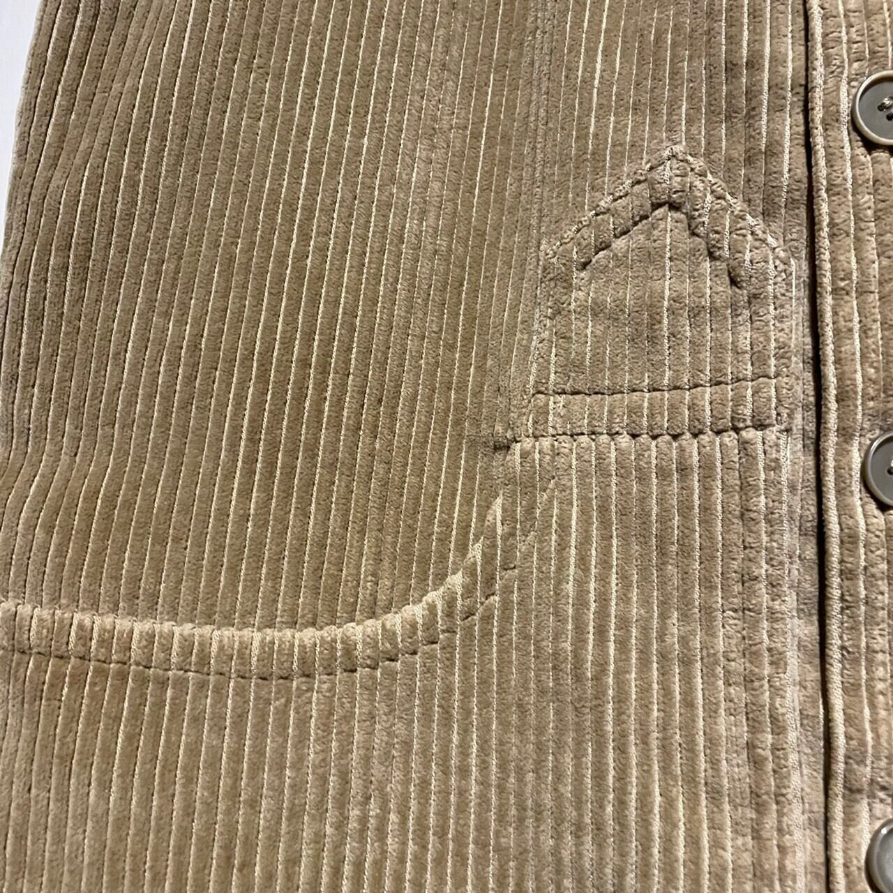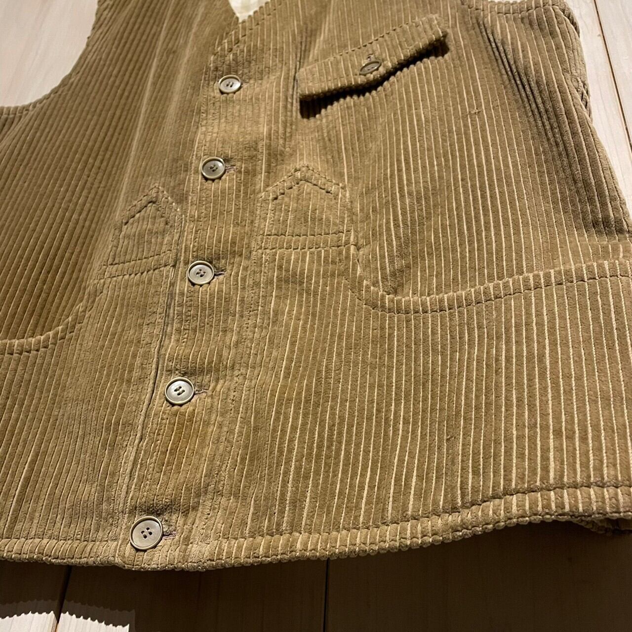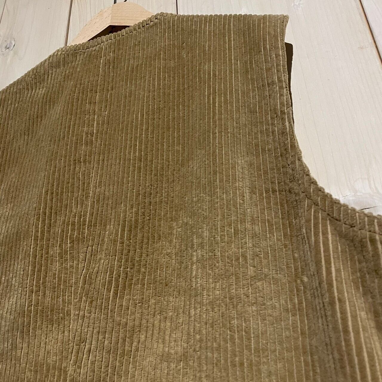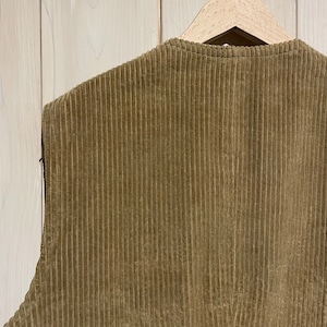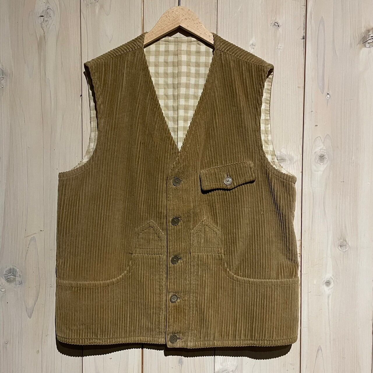 柔らかなベージュカラーの太畝コーデュロイをボディに使用したベスト。