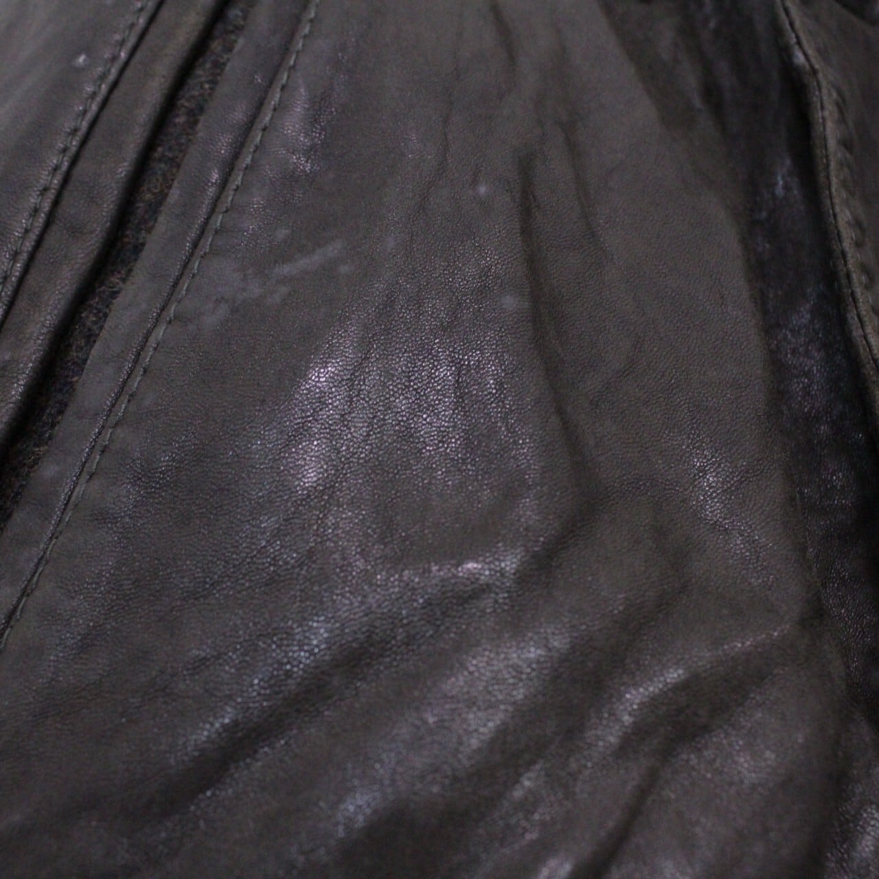 フロント両サイドにはスラッシュポケットに加え、両胸にはフラップポケットを配置。この手のアイテムでは稀少なダブルブレストの仕様となっており、洗練されたデザインながらも、レザーの風合いとも相まって風格漂う存在感を見せる仕上がりに。