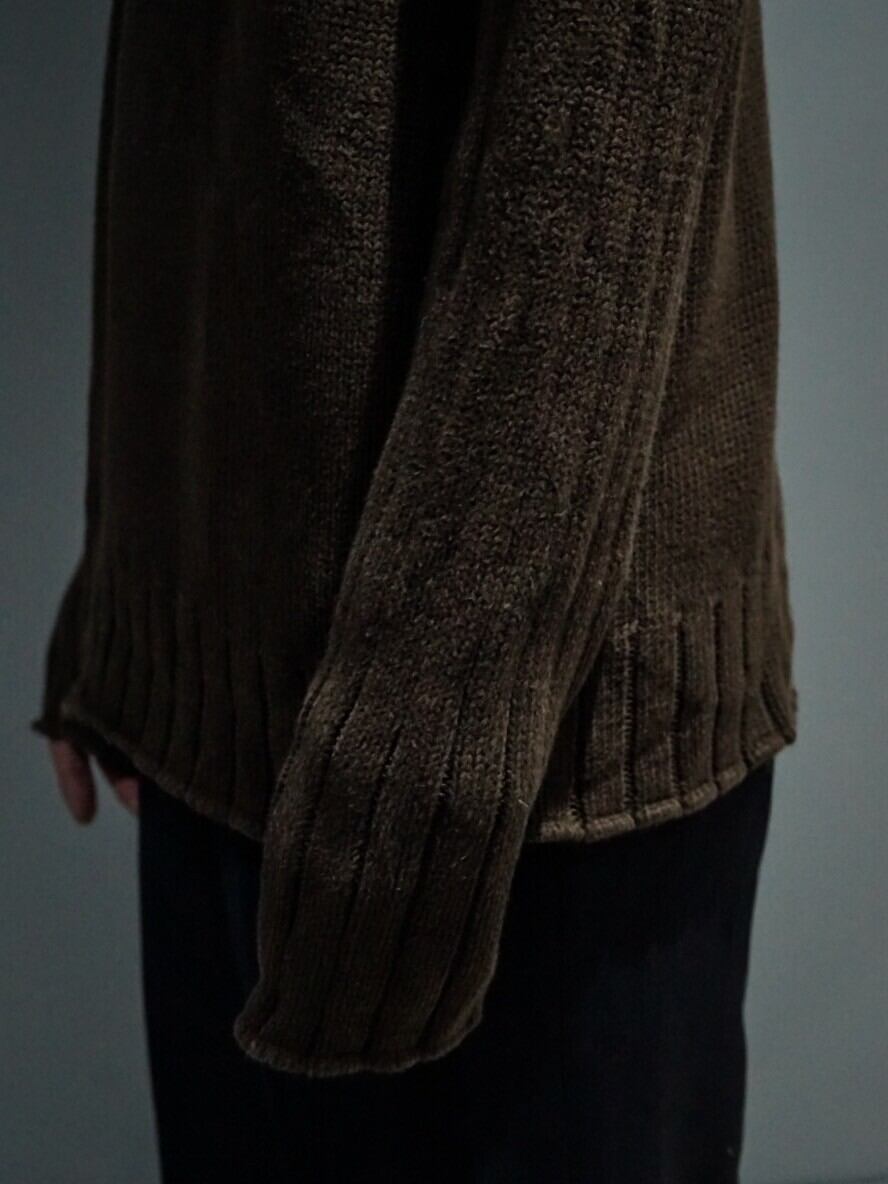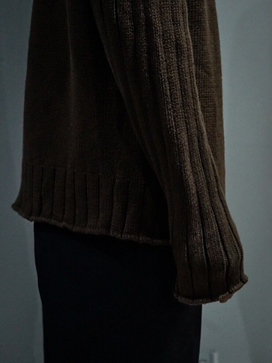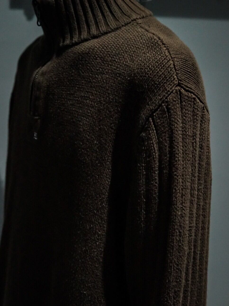 ガシッとハリがありながらも柔らかな厚手のコットンを用いたハーフジップニット。深みのあるブラウンカラーが正に今気分です。