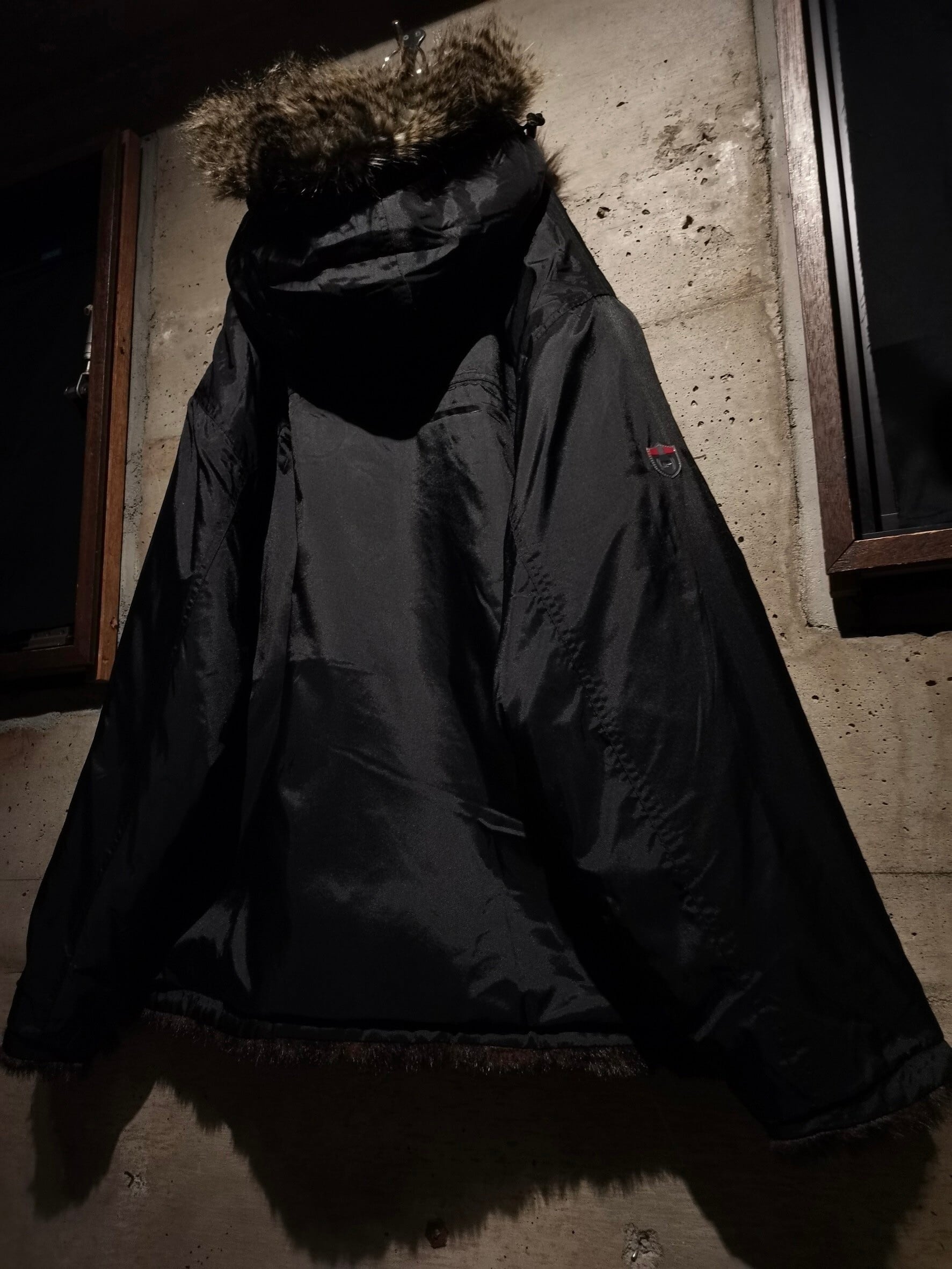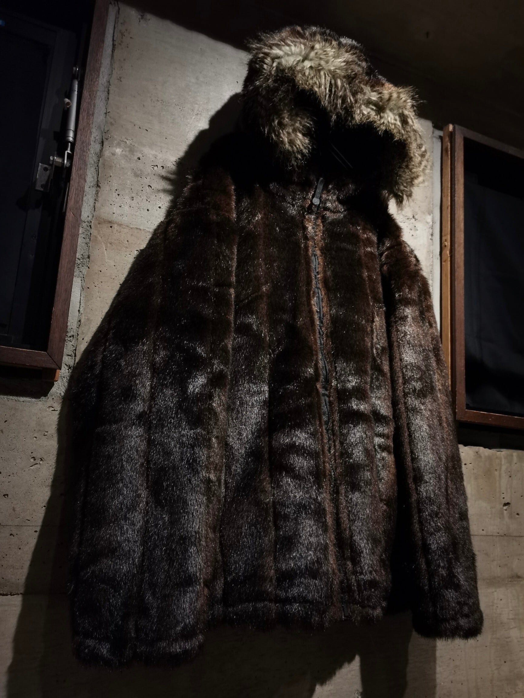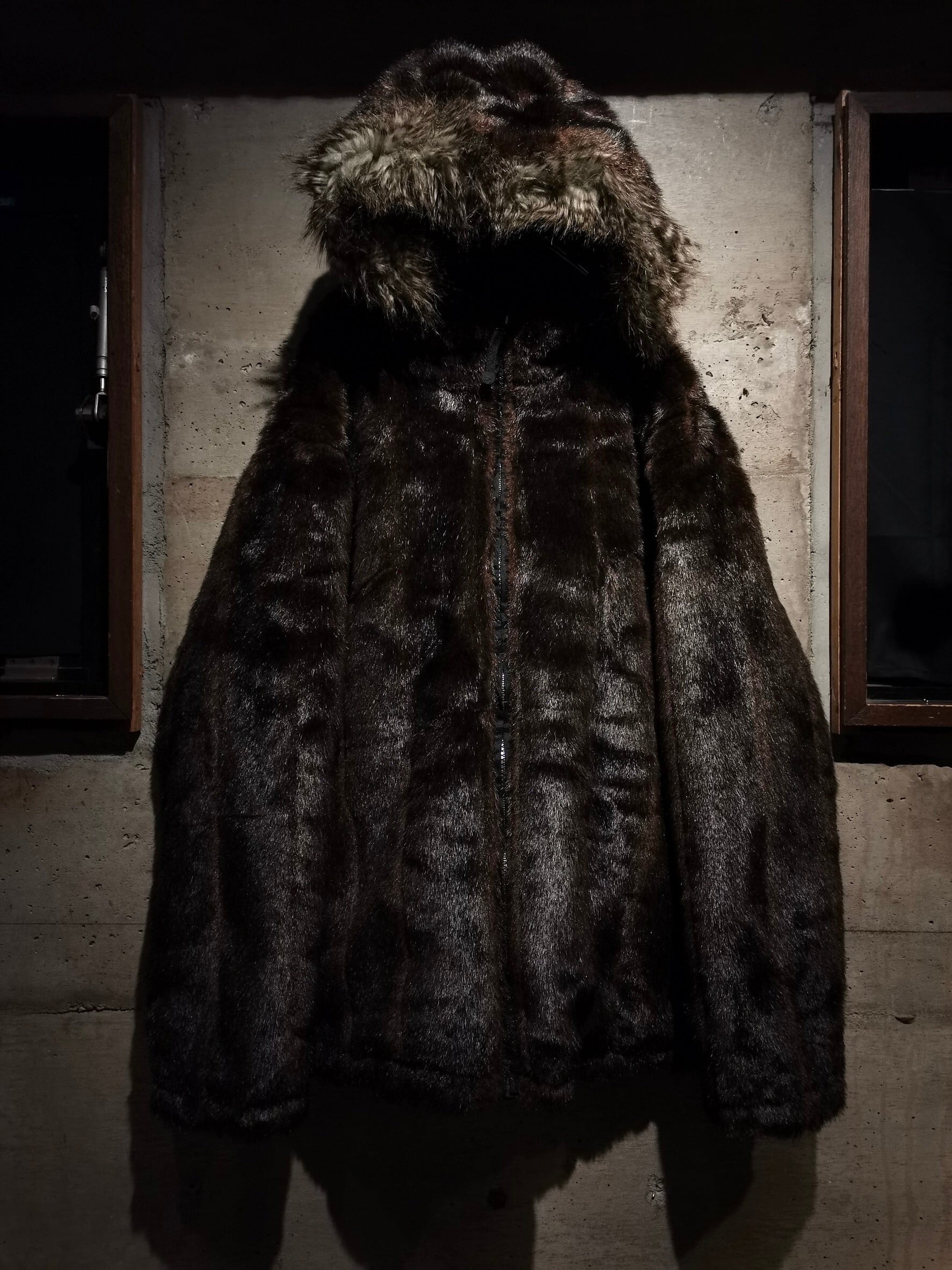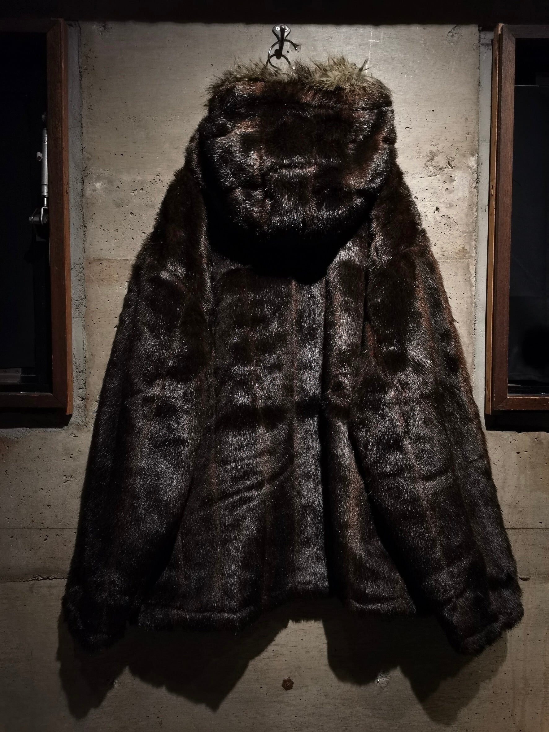 表面は鋭い光沢を放つブラックのナイロンのボディに、左胸にはロゴ刺繍、右袖にロゴのシリコンパッチをON。ガバッと裏返すとモッフモフ、高級感の漂うブラウンのフェイクファーへと早変わりするリバーシブル仕様のスペシャルなジャケット。
