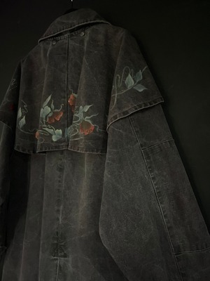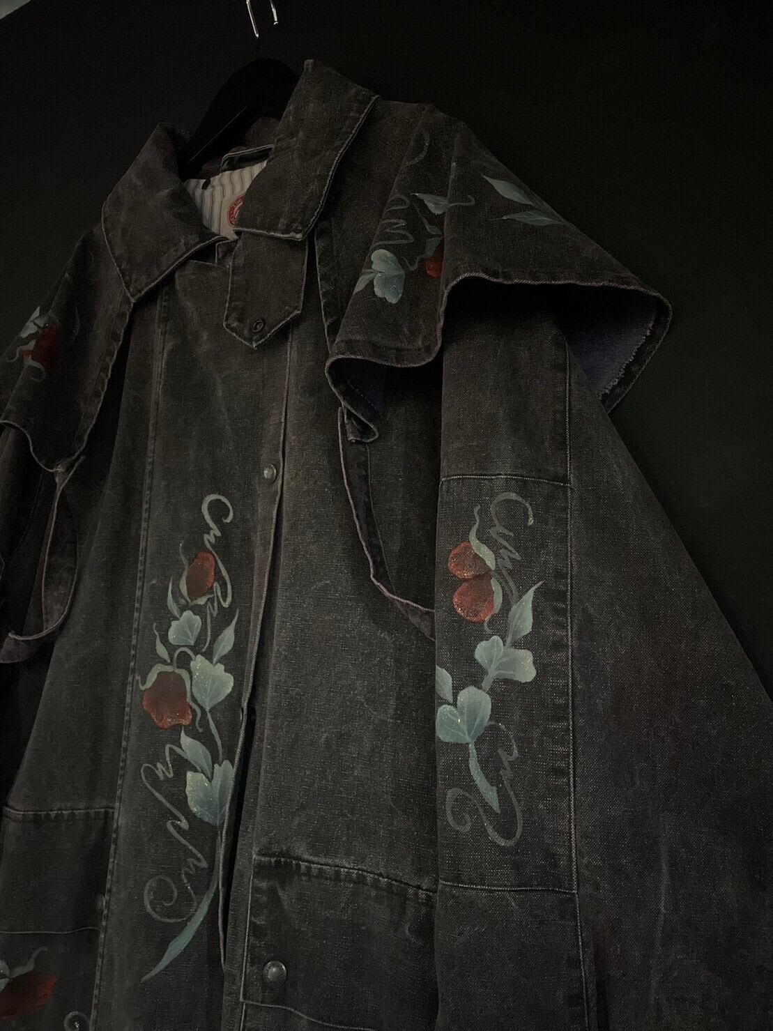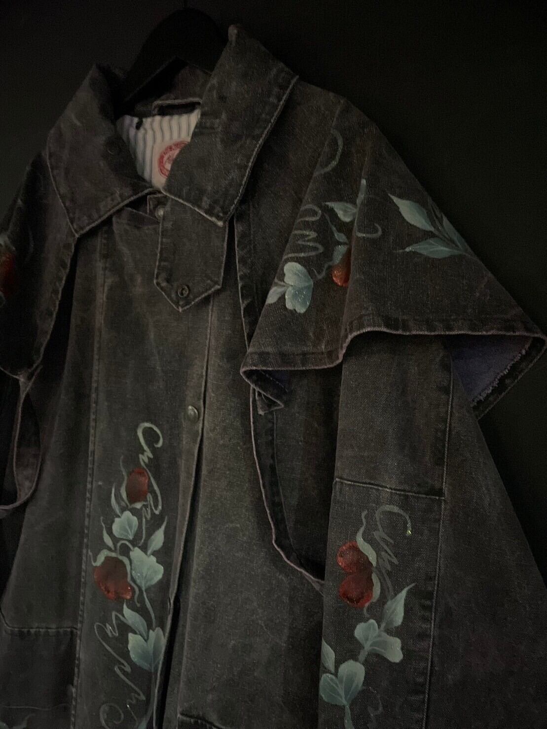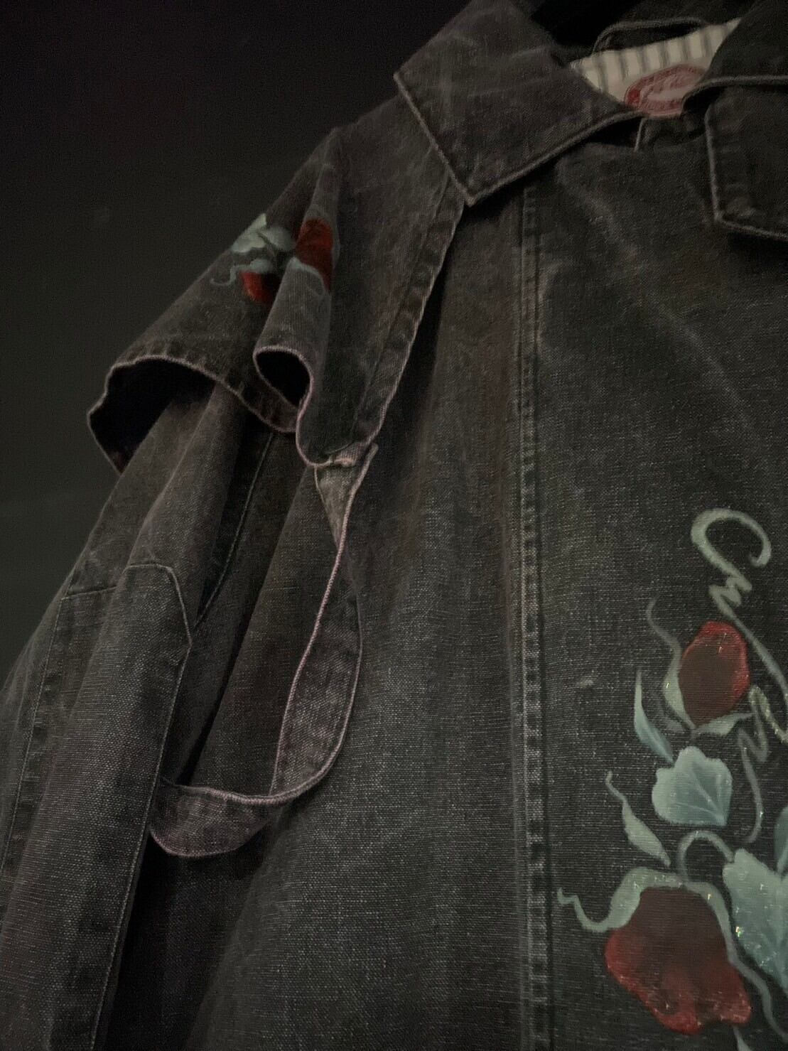 胸元や肩部分には美しく咲き誇る赤の薔薇ペイントカスタムをON。このデニム特有の無骨さと、ペイントデザインならではのアーティスティックな美学の調和には言葉が出ません、、堪らん。