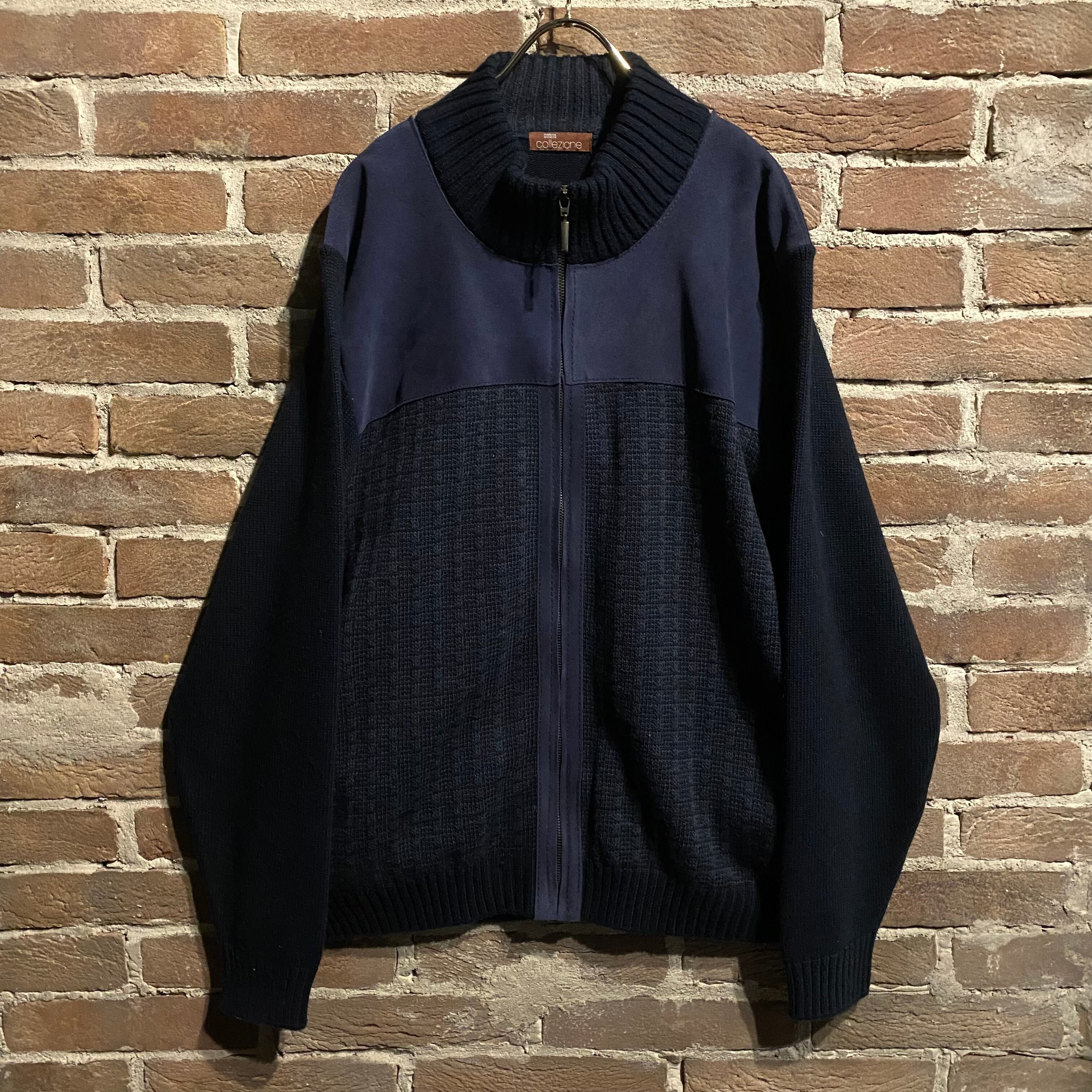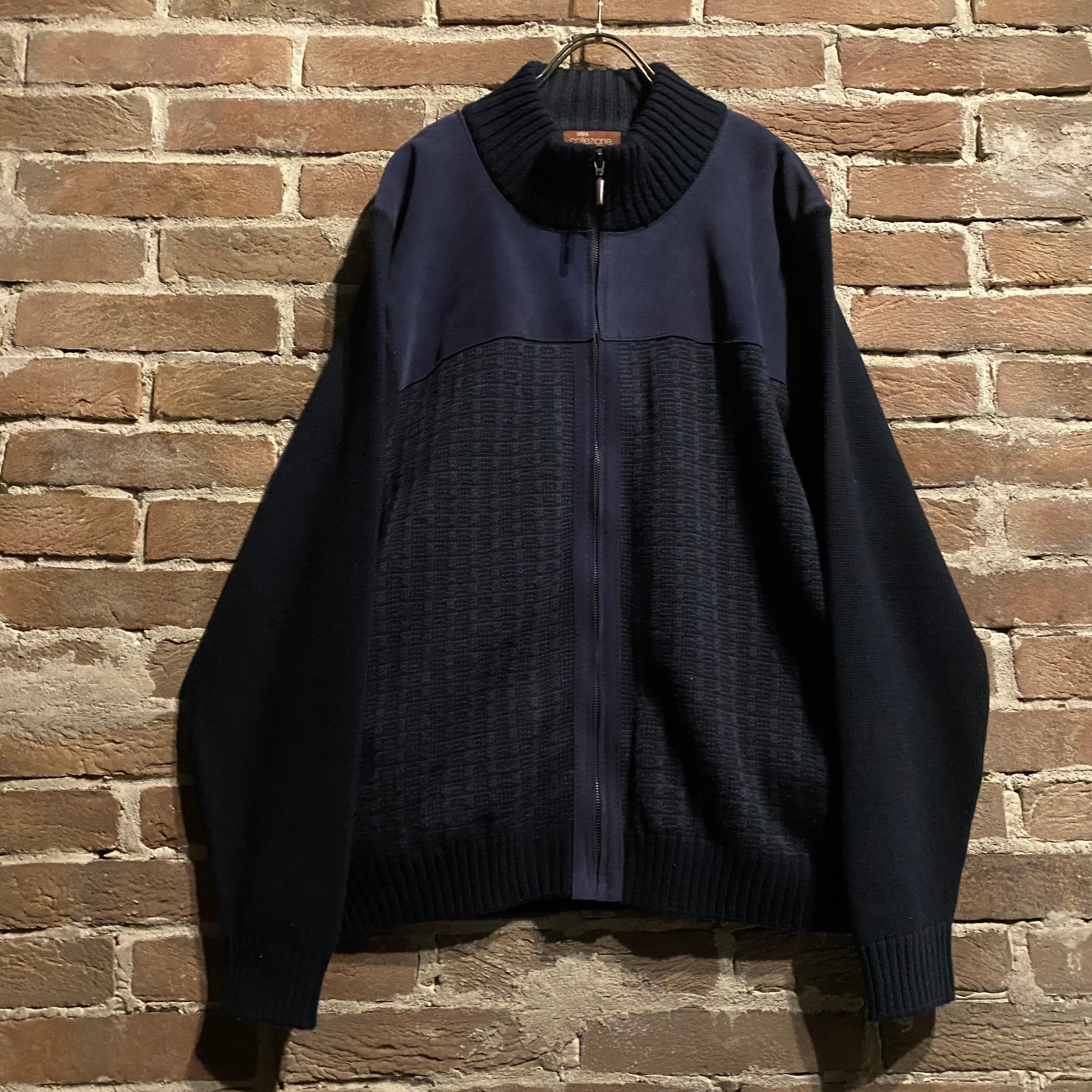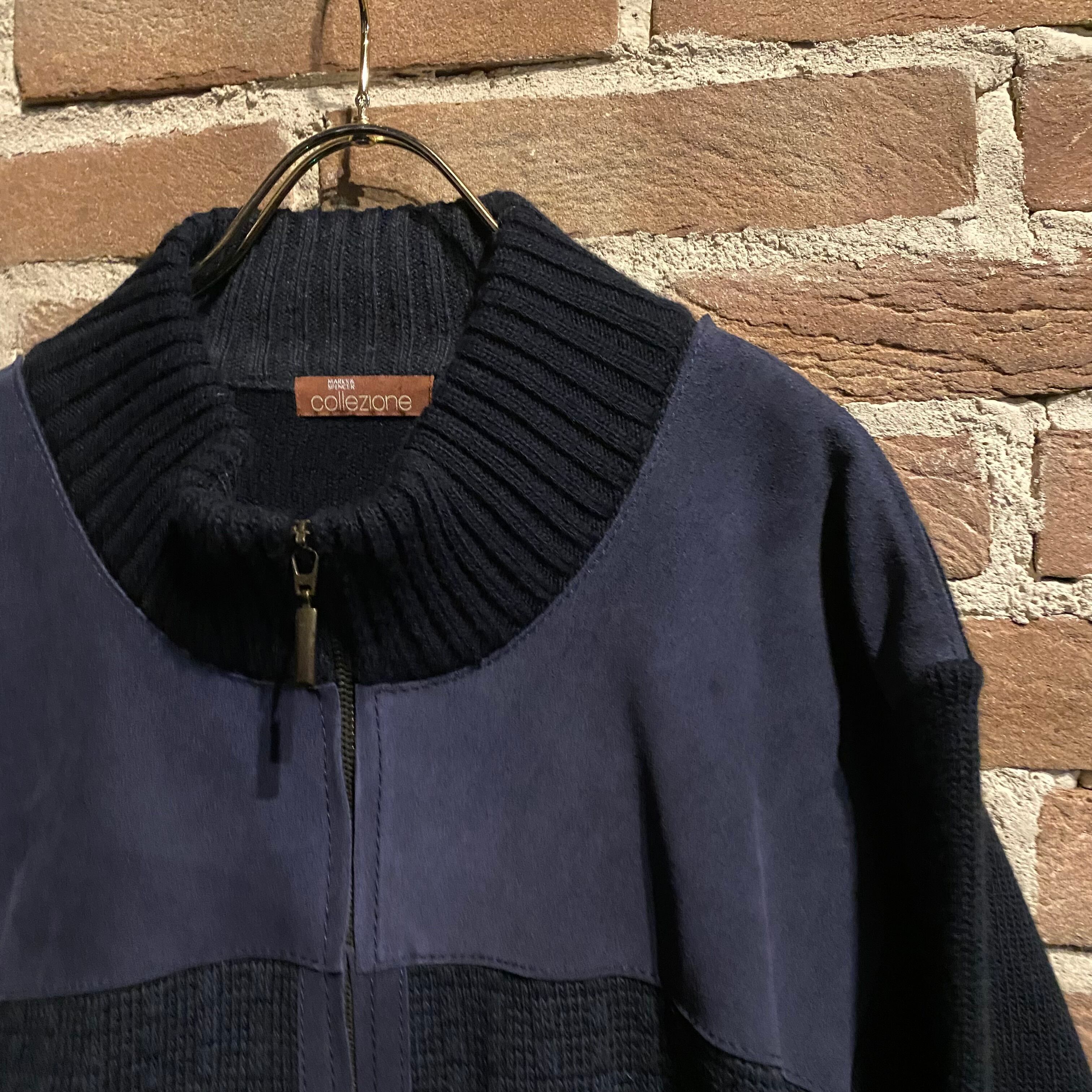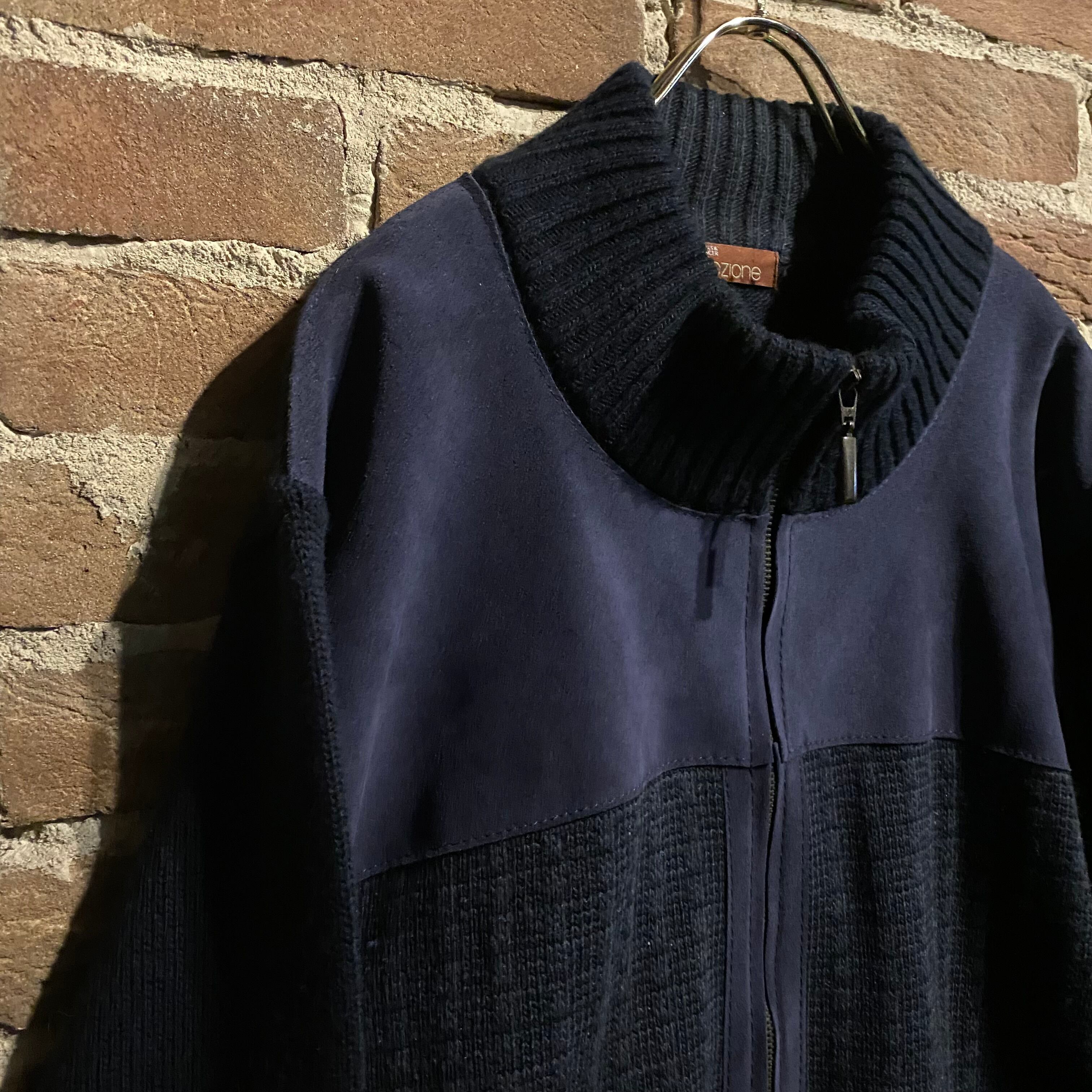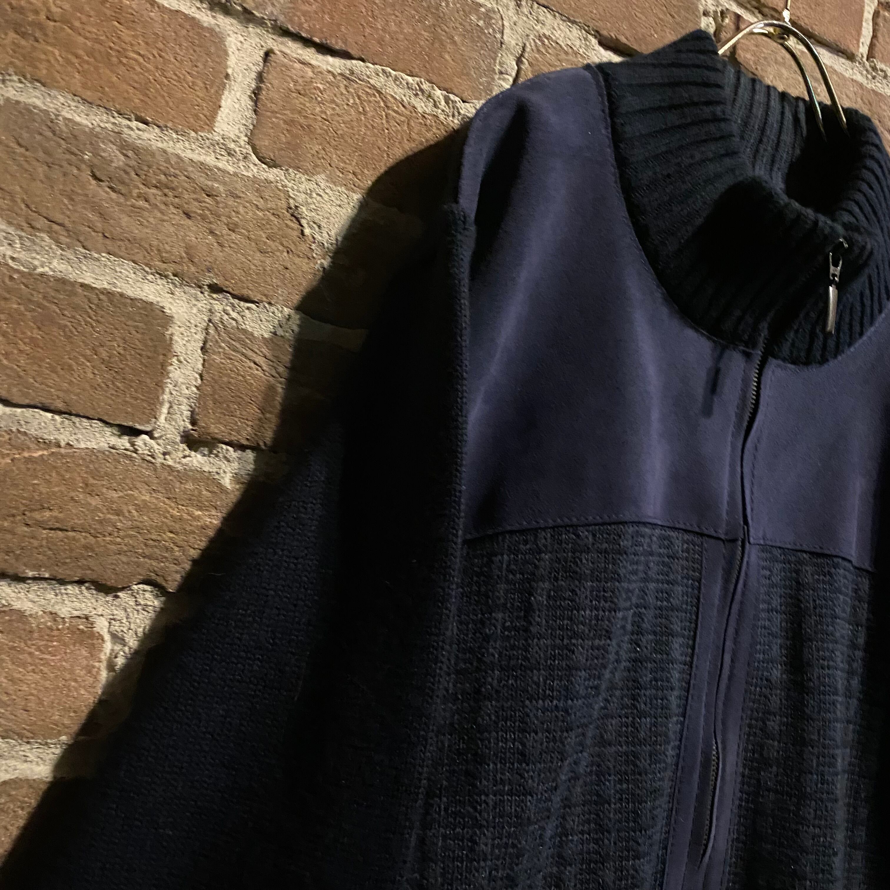 こちらの1着は、緻密に編み込まれたネイビーのニット地のボディに、同色のフェイクスエードを切り替え、モード感溢れる逸品。