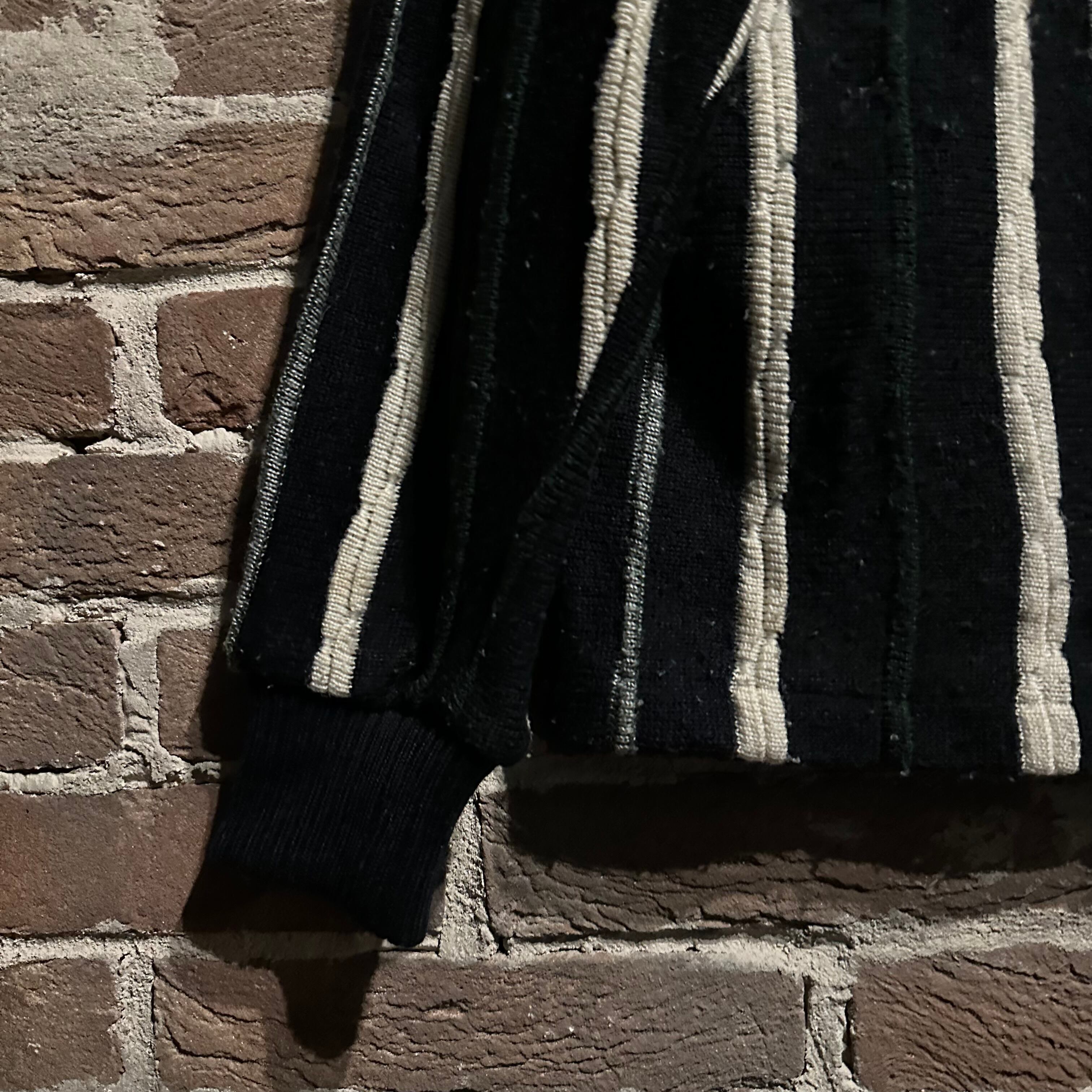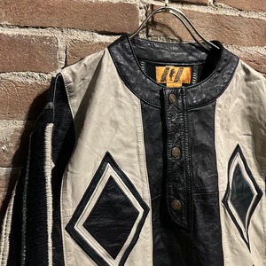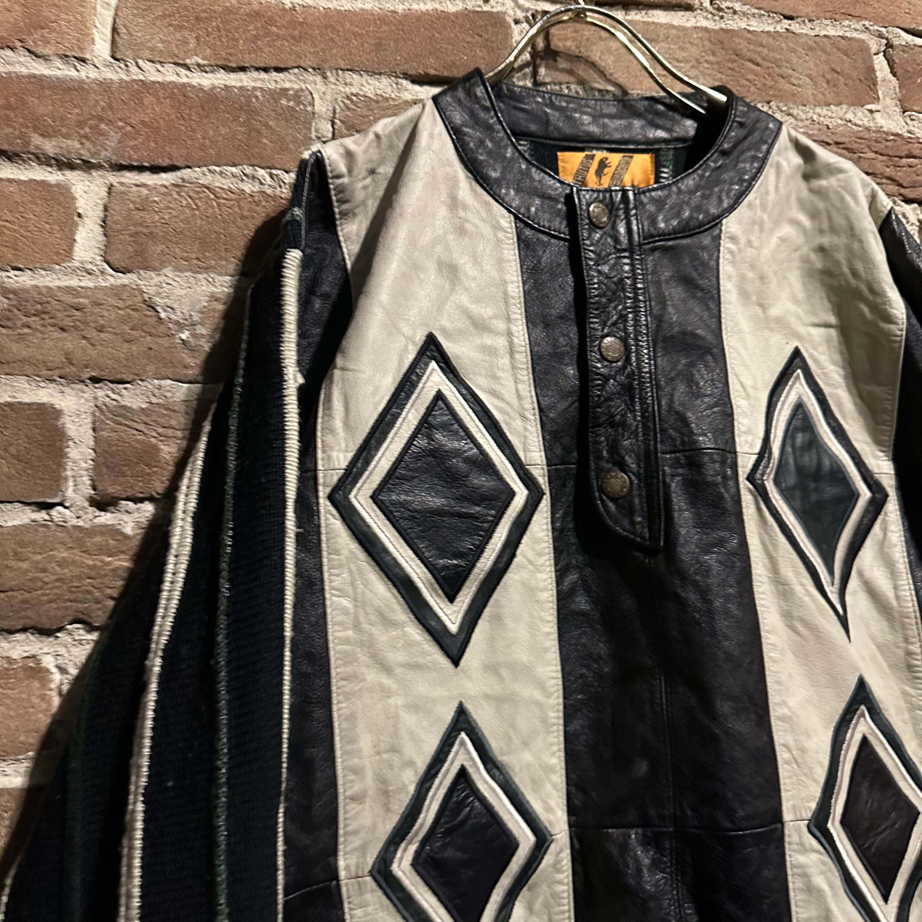 ブラック×ホワイトの立体的なニット生地をベースとし、モノトーンのレザー素材を切り替えした3Dニットセーター。
